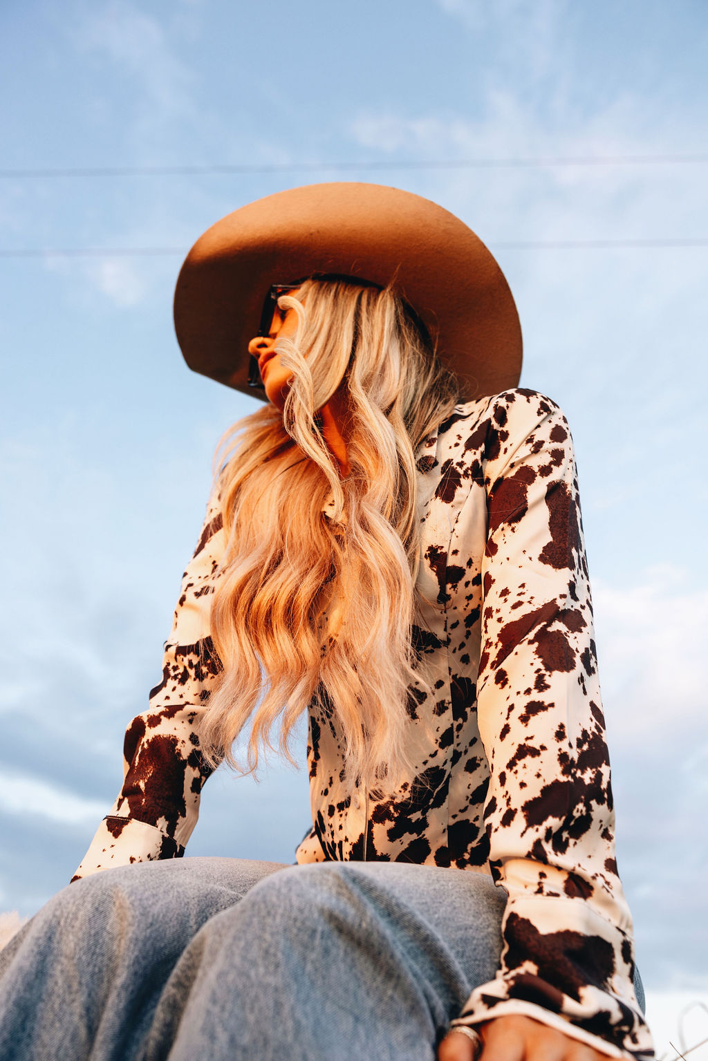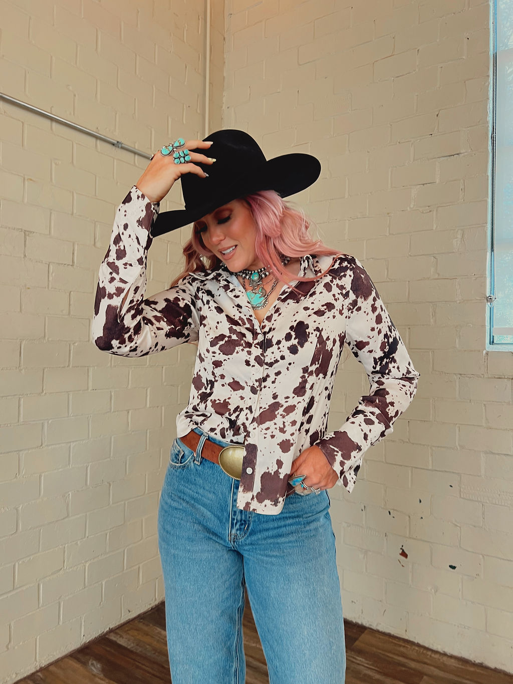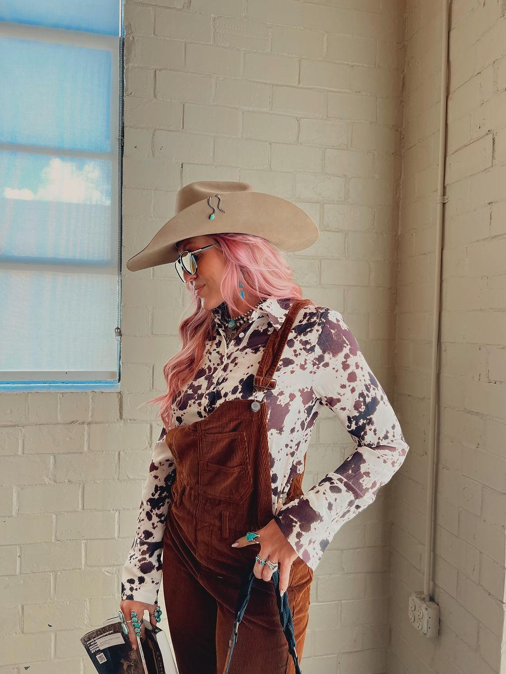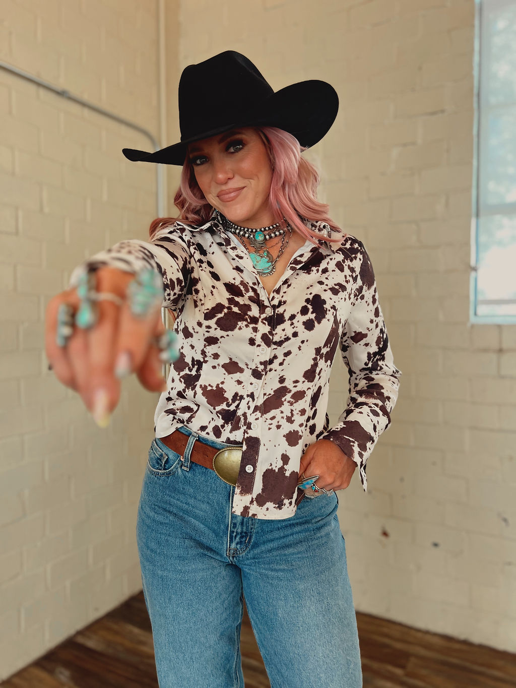 What makes it better? A custom embroidered hereford pocket making this shirt pair perfectly with high-waisted jeans, heels, and even in the roping pen.