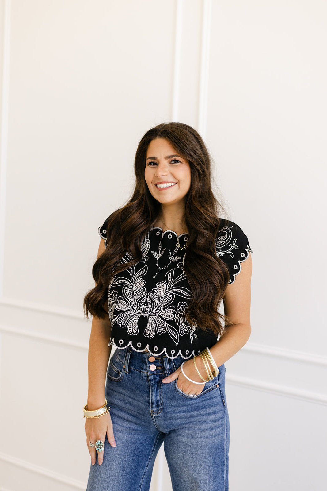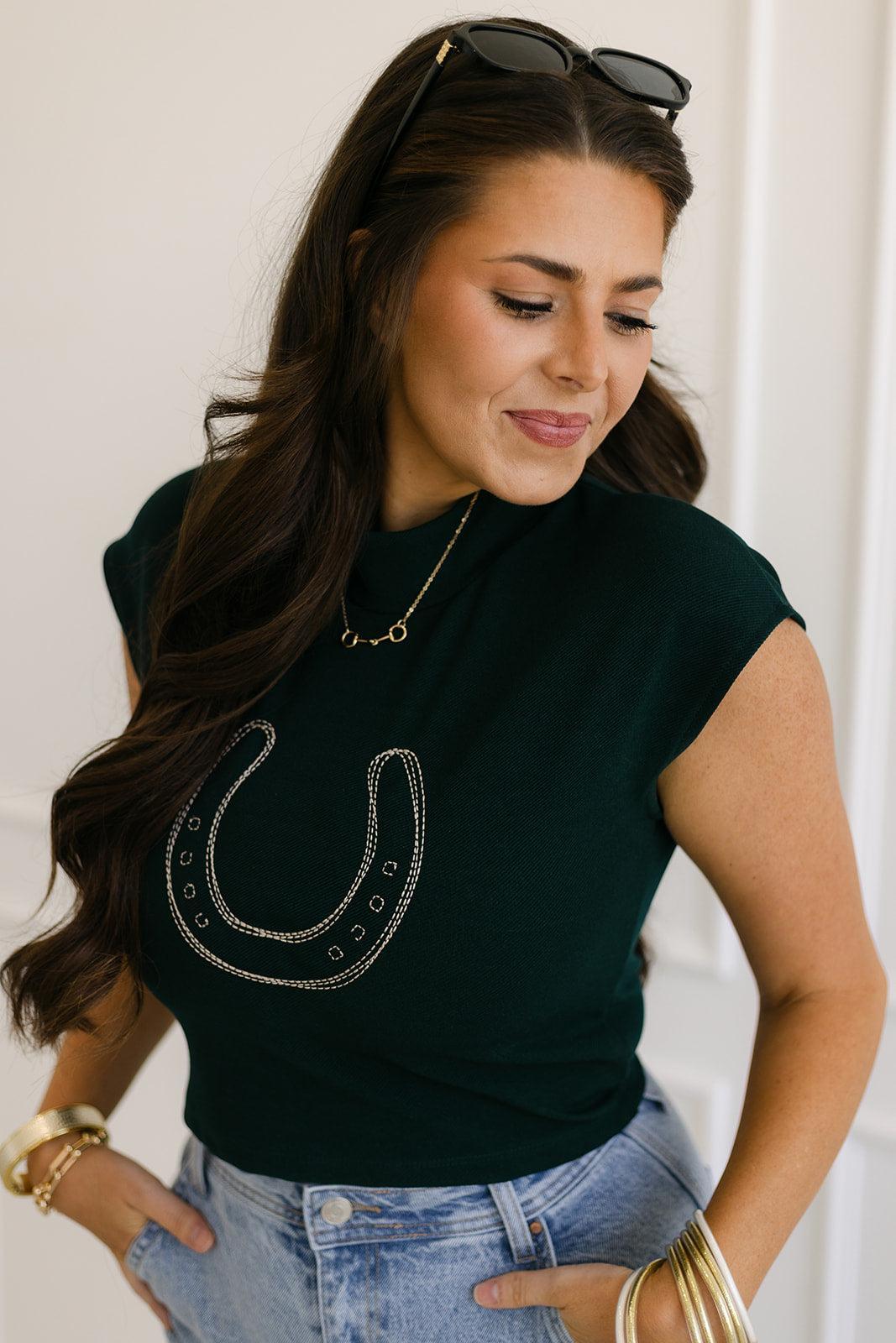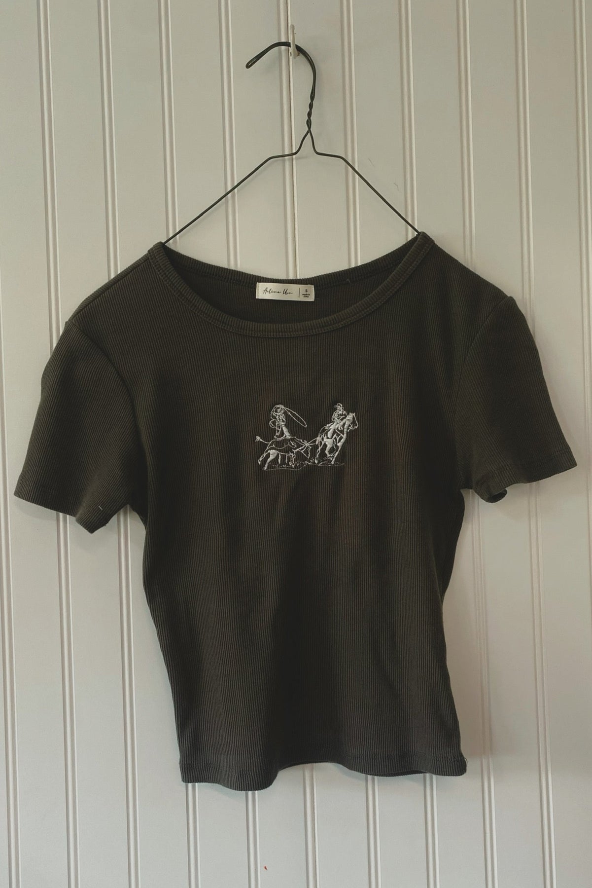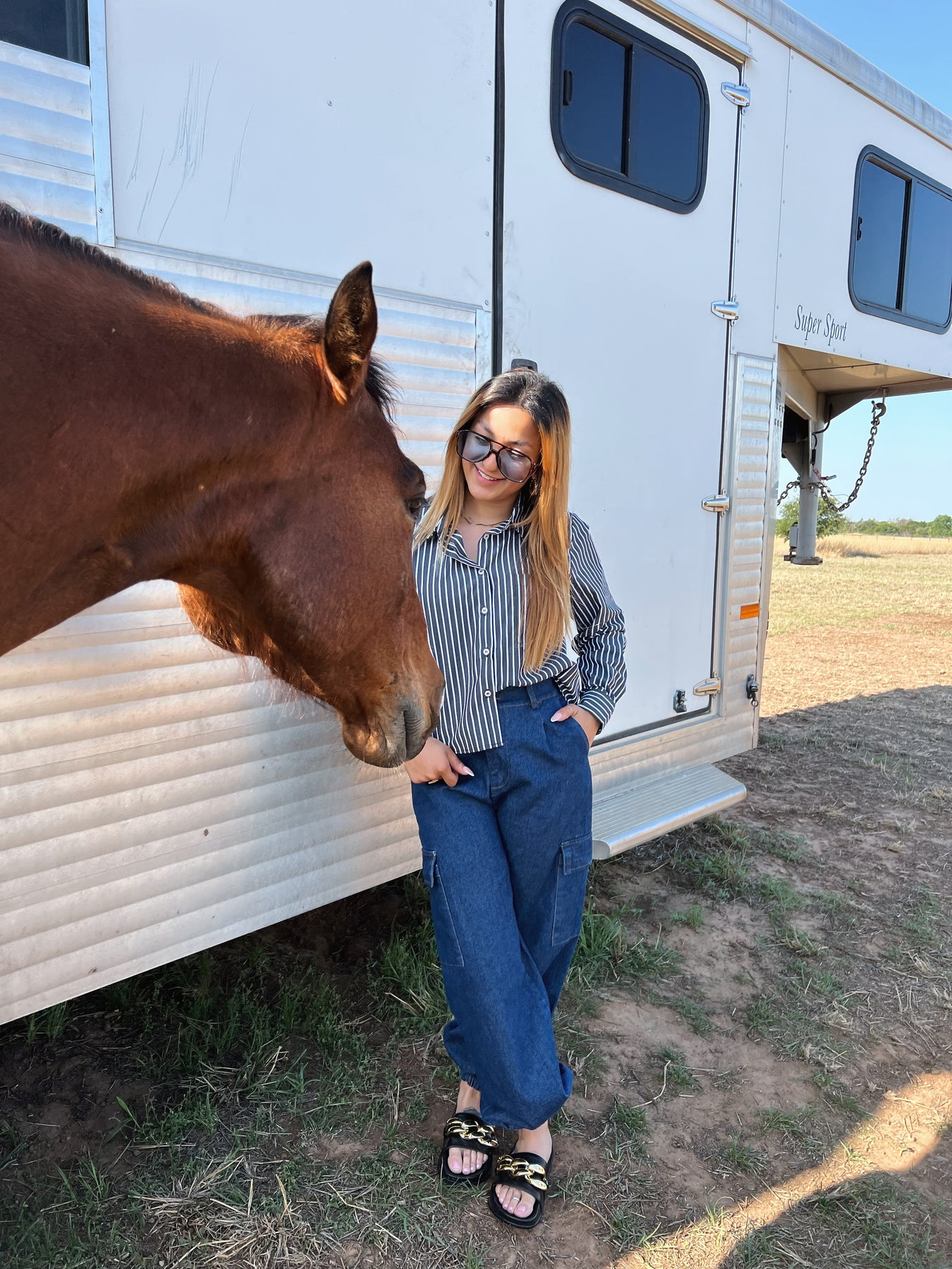 What makes it better? A custom embroidered hereford pocket making this shirt pair perfectly with high-waisted jeans, heels, and even in the roping pen.