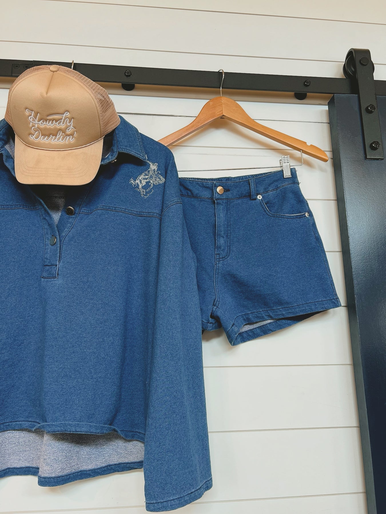 The Rader Hereford Denim Top-Button Up-The Good Babes Co. LLC
