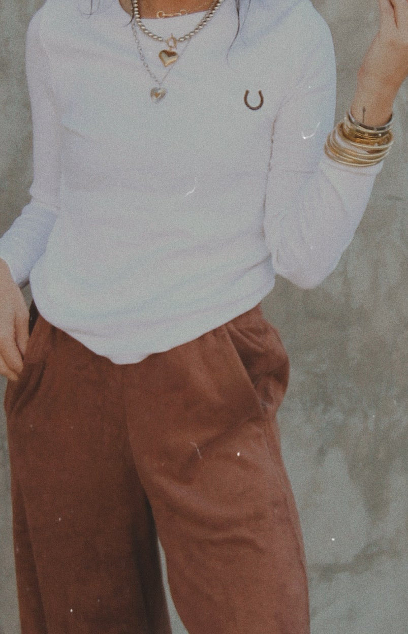 A basic staple piece that belongs in your closet. This long sleeve, crew neck tee is a ribbed material that is so soft and stretchy. Layer it or wear it alone, it is a must-have.