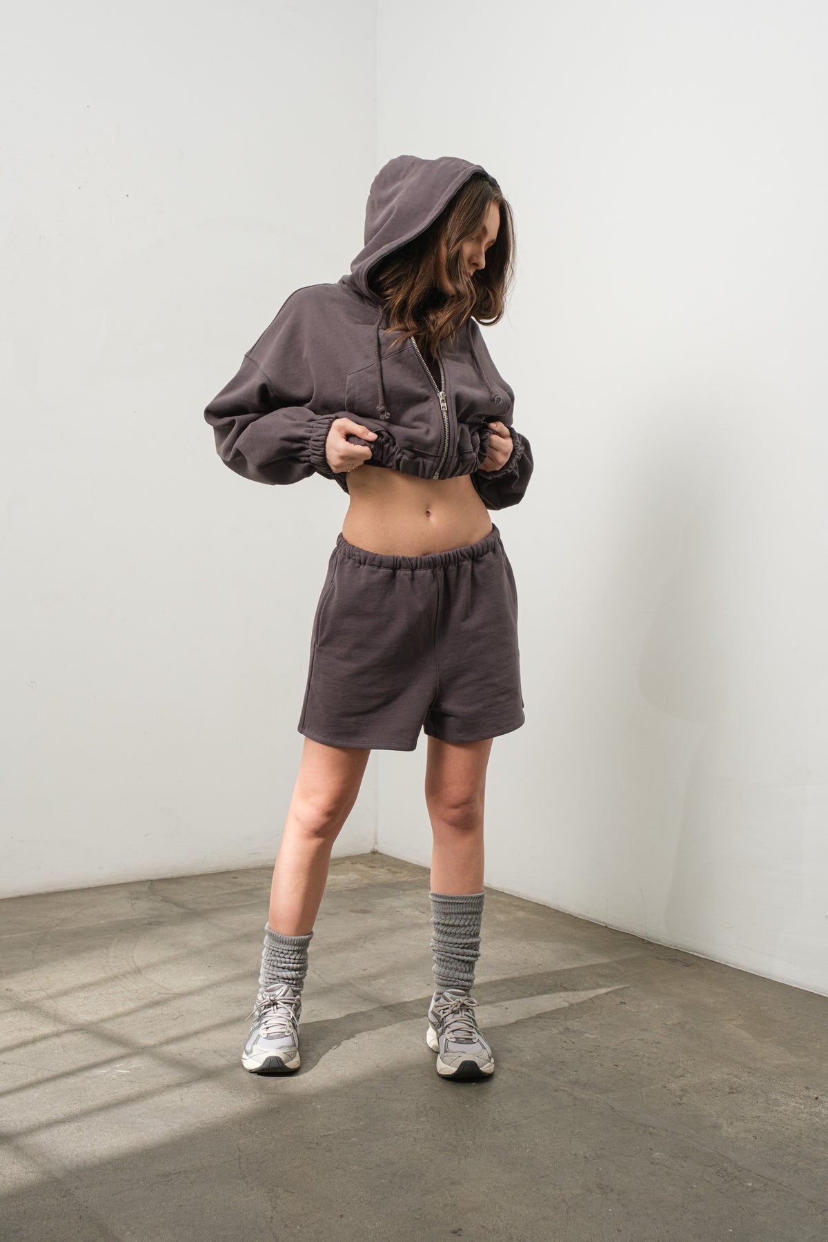 Contrasting yellow buttons add a playful pop of color to this all-dark denim set, giving it a retro-meets-futuristic twist perfect for standout boutique edits.