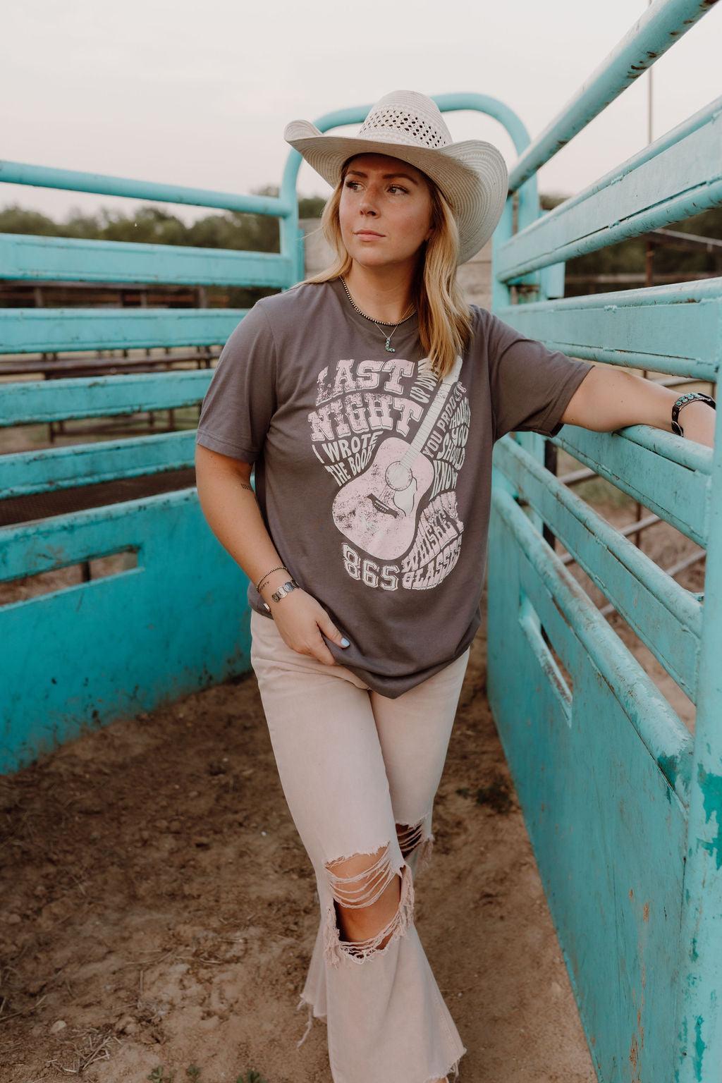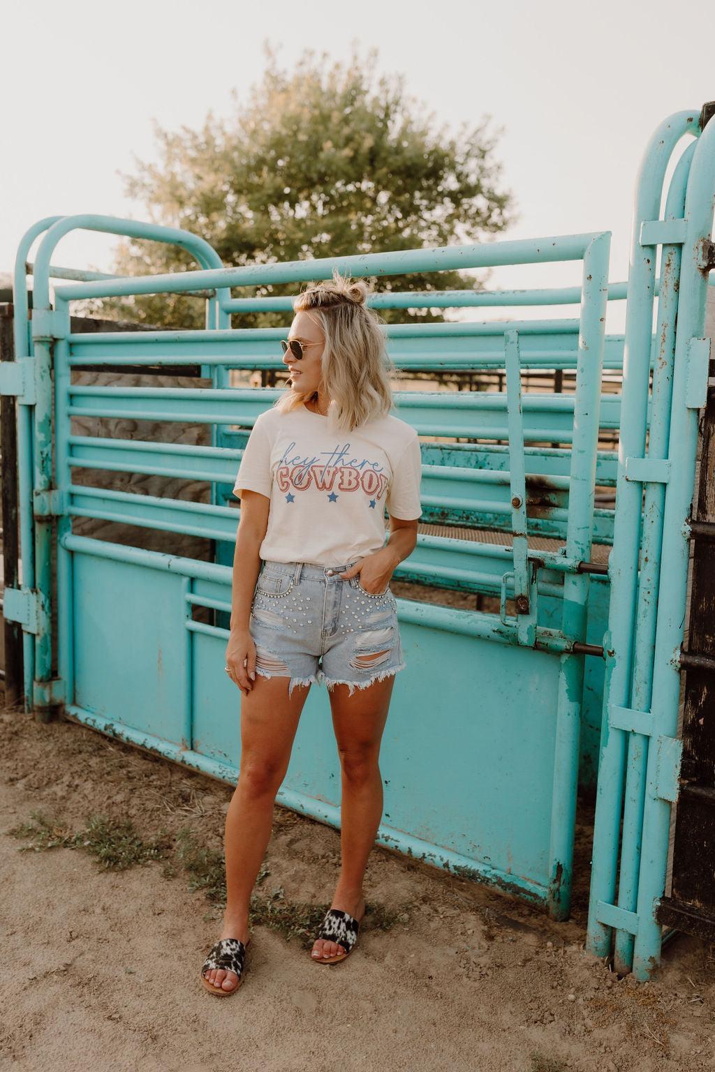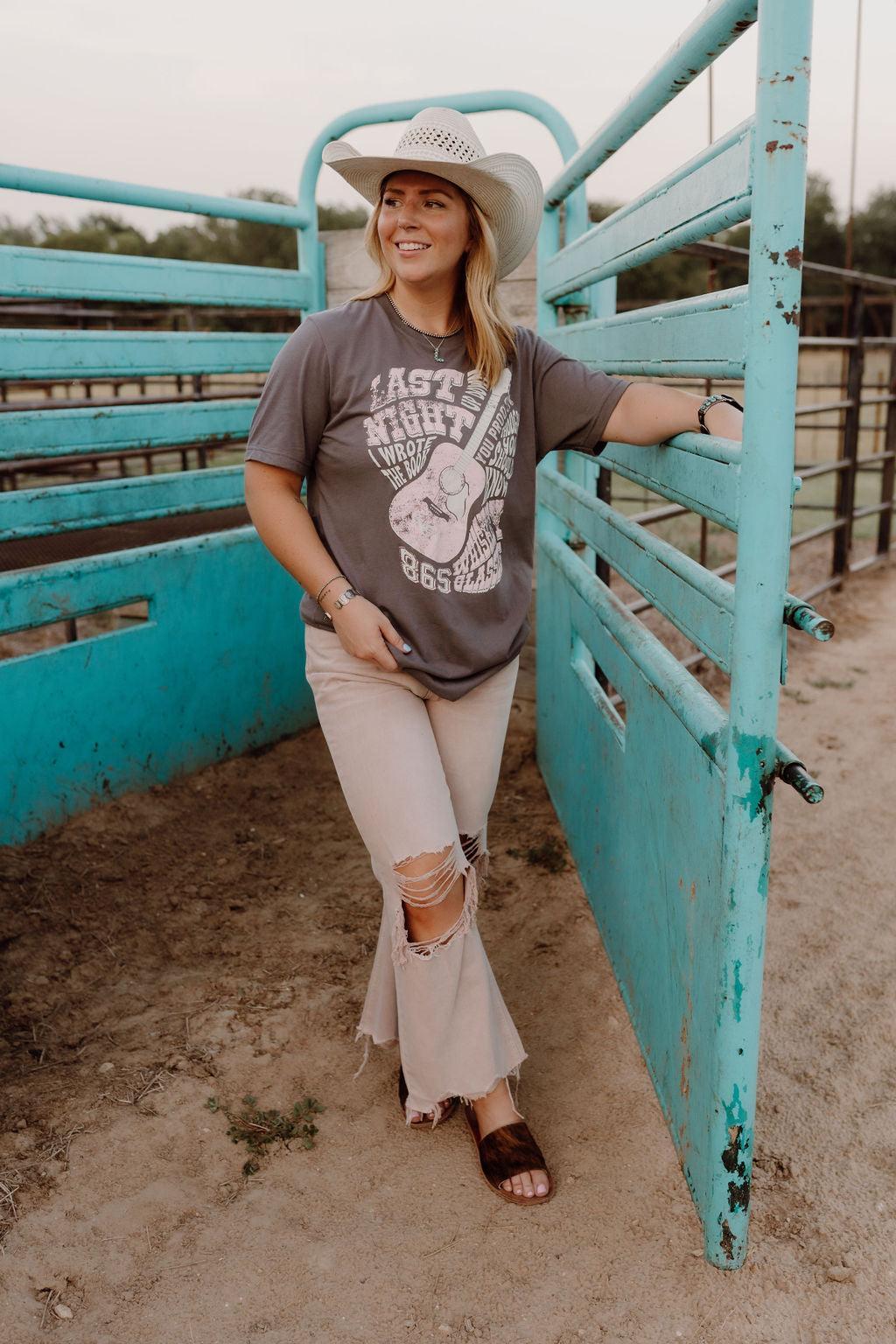 Your new go-to tee: effortlessly soft with a laid-back vibe. Designed with a classic round neckline, short sleeves, and a flattering ribbed knit that moves with you. Finished with custom saddle embroidery for a unique, western touch.