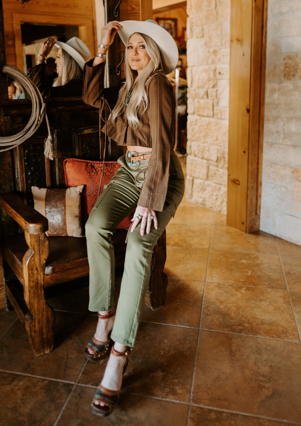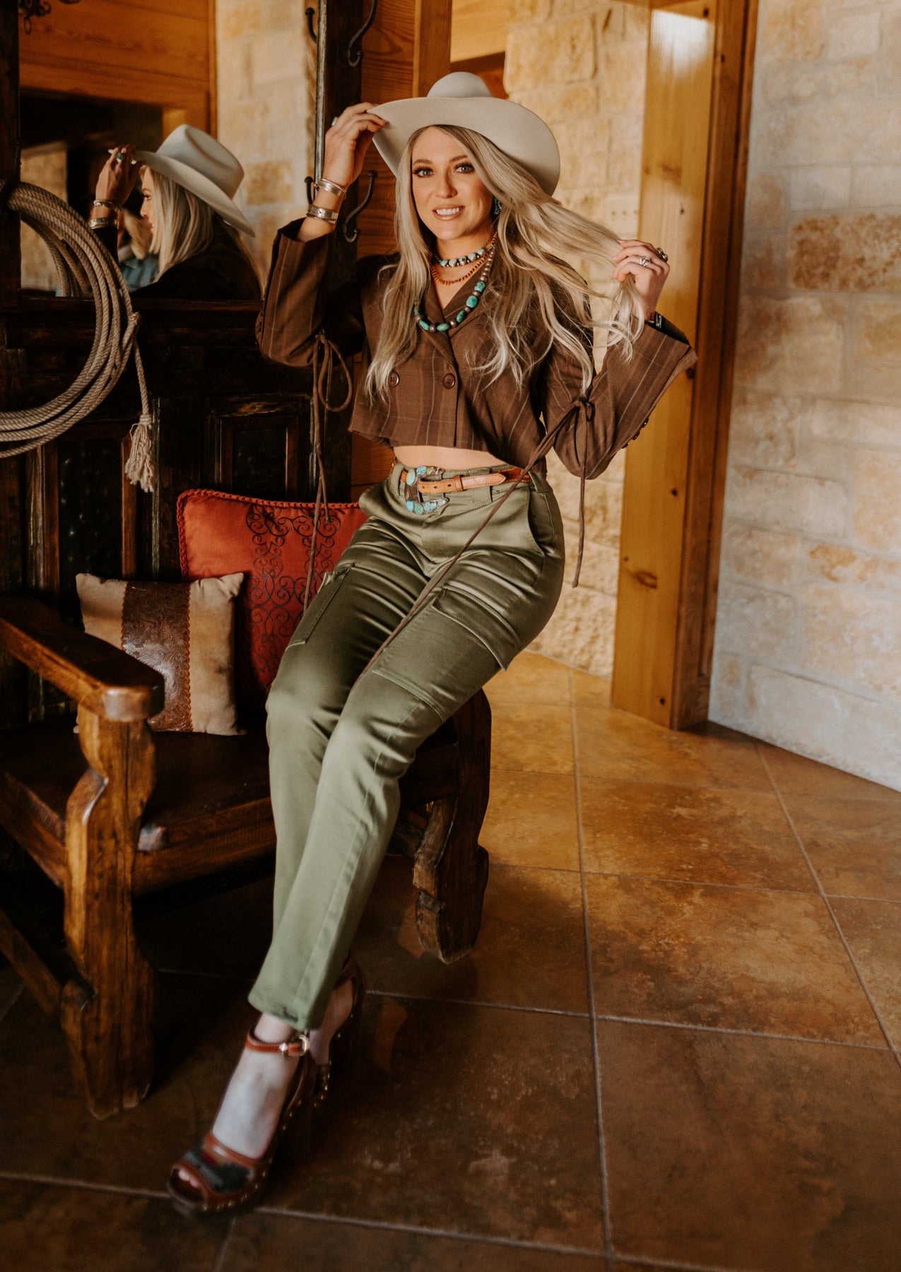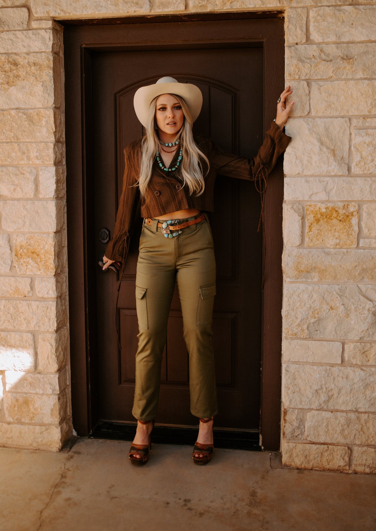 Light, flirty, and full of Western charm. This adjustable strap cami features delicate embroidered eyelet detailing and a tie-front design that adds a touch of romance to your rodeo-ready look. Perfect for layering or wearing solo under the Vegas sun—just add denim and boots for the ultimate NFR vibe.