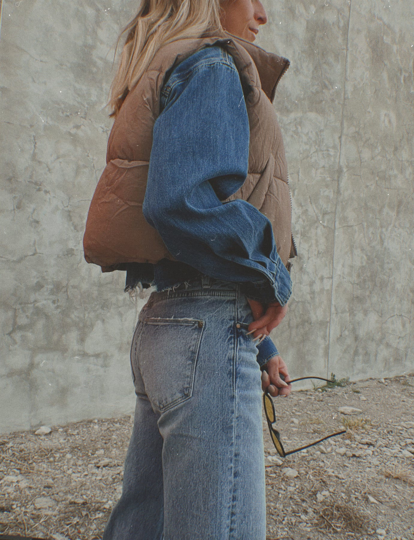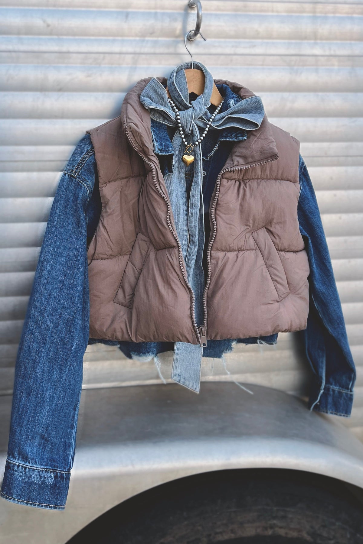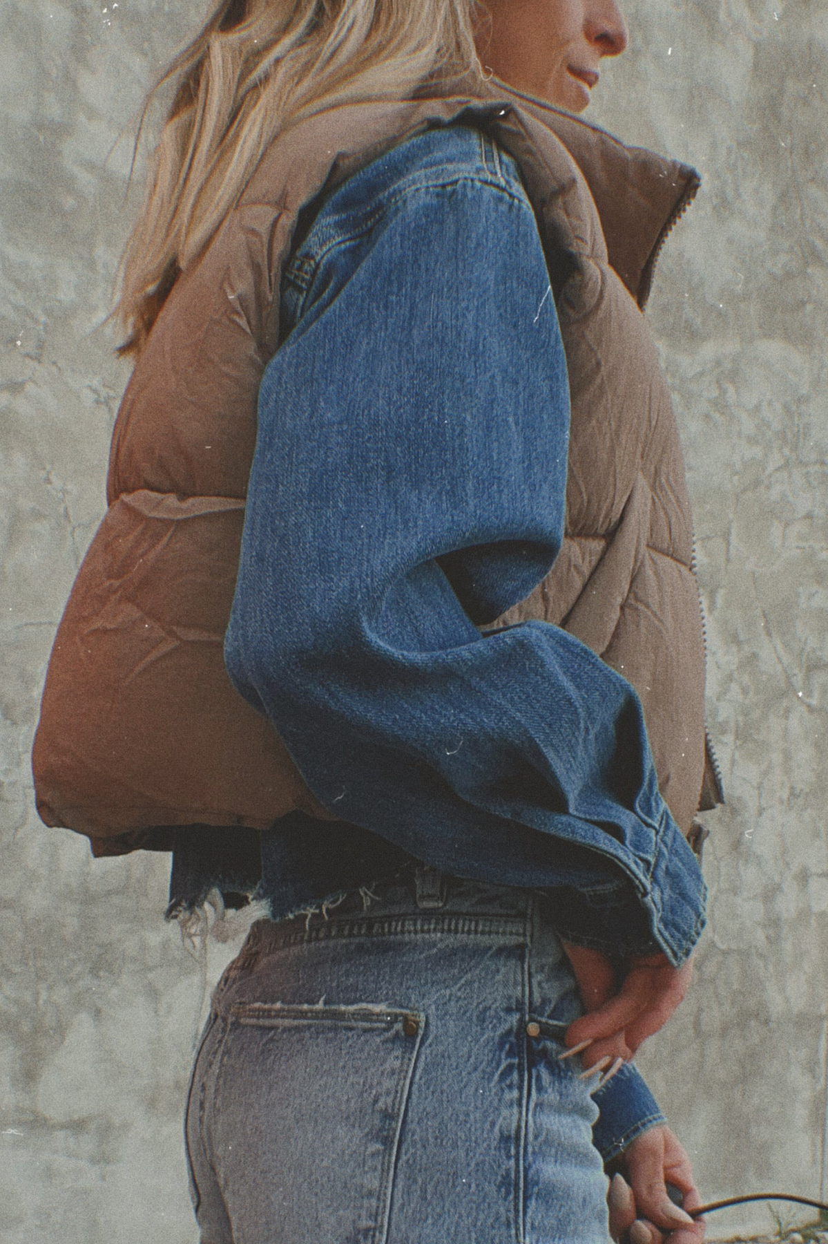 This vest features a cropped length, perfect for layering over your favorite tops. Ideal for transitional weather, it effortlessly adds a chic touch to any outfit. Features a stand collar, front zip closure and two welt pockets. Lined Fit: Fitted Length: Cropped