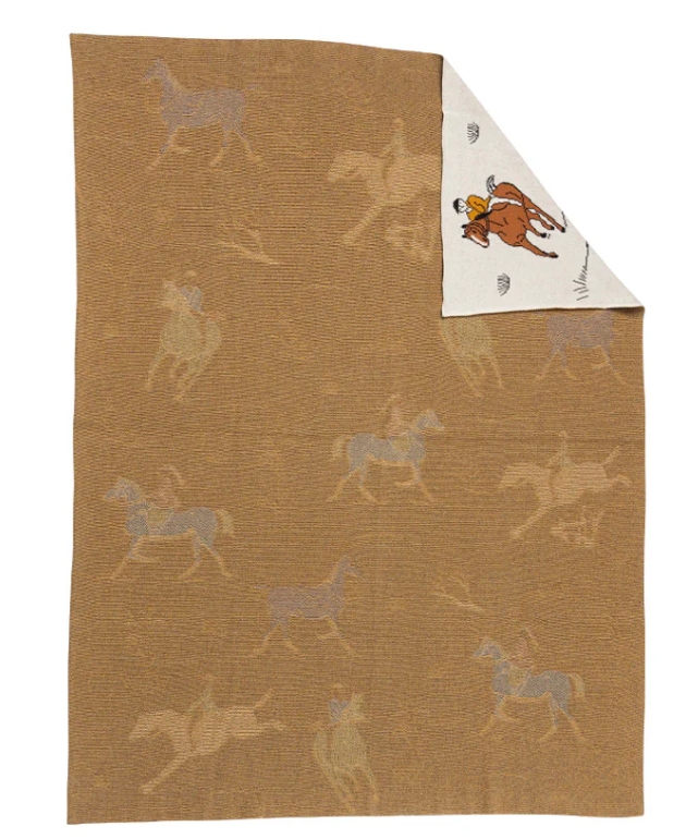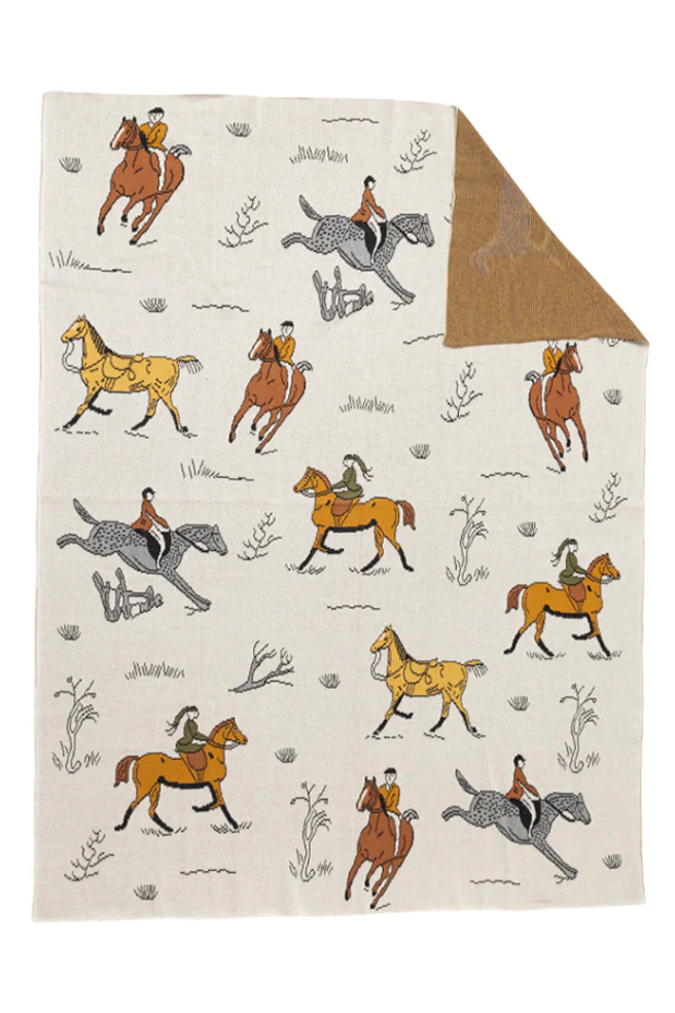 Riders of all kinds are jubilantly depicted in this lovely throw. It's will be a charming addition to any space. Its knitted cotton construction will keep you and yours warm and snug anytime!