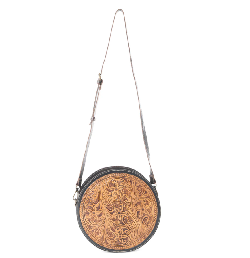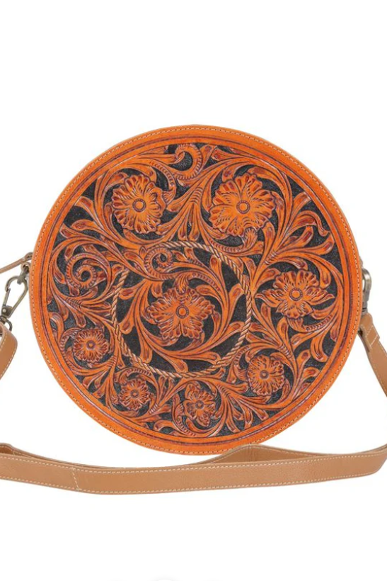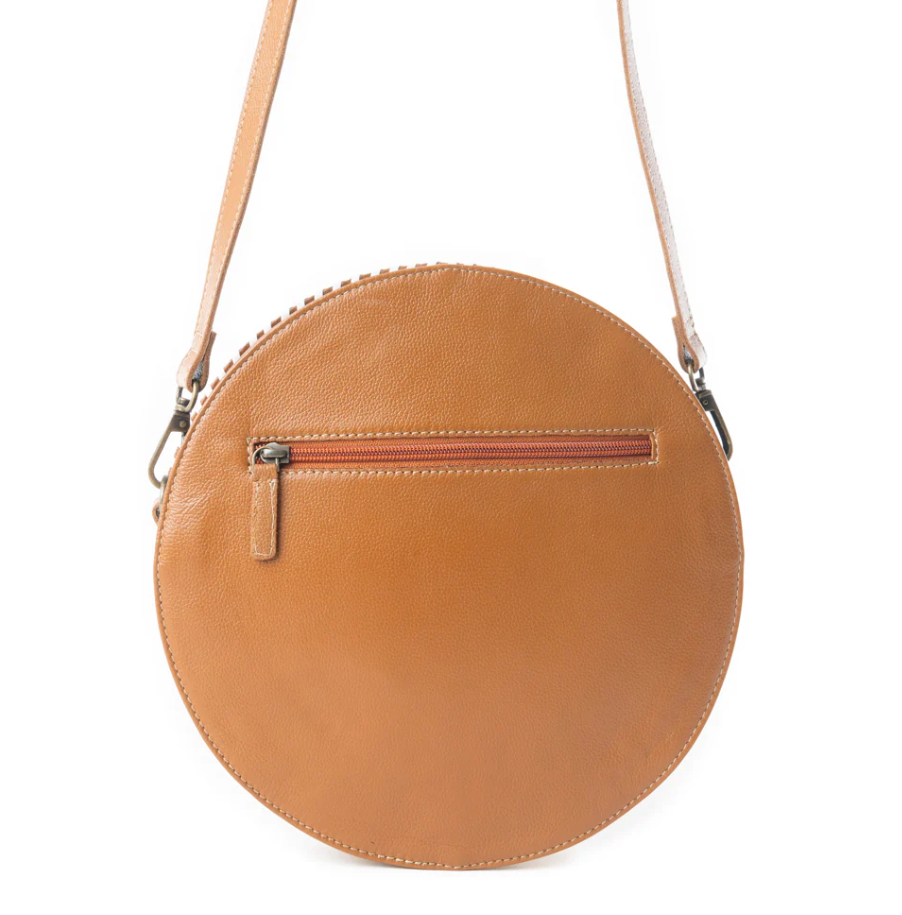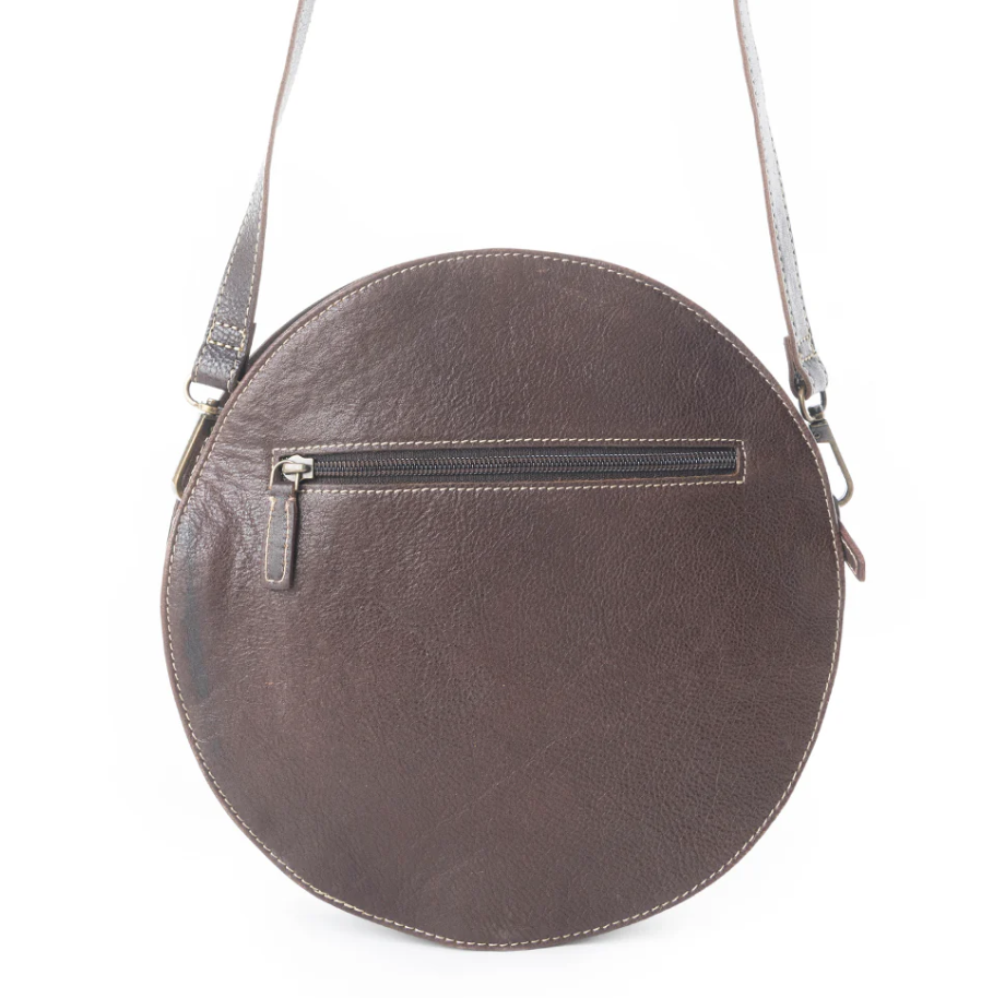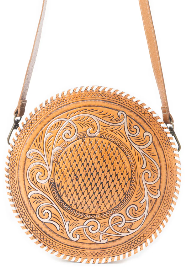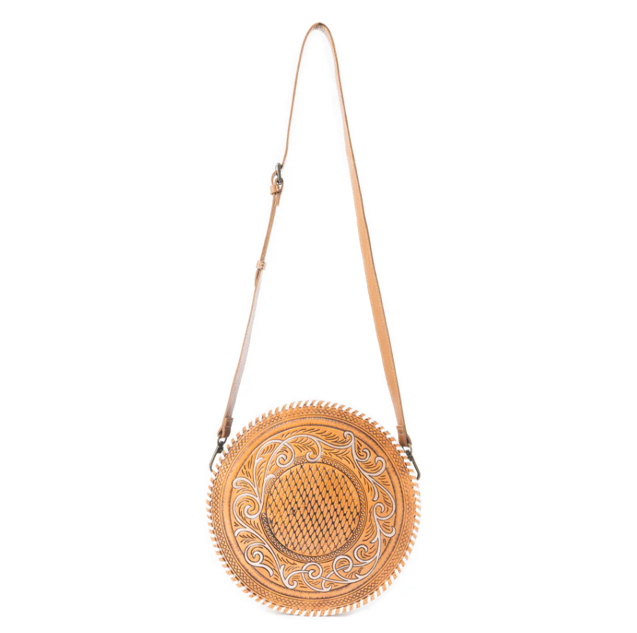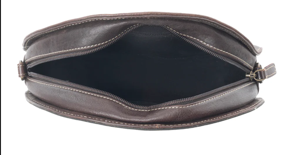 This bag boasts a rich, warm mahogany hue that perfectly complements its bohemian flair. This Western leather handbag is ideal for women who wish to blend sustainability into their style. With its unique round shape, intricate detailing, and spacious main compartment, it’s a standout piece for any occasion, from casual outings to lively concerts or country festivals. Go for this western crossbody purse to raise your look while ensuring practicality for your essentials.