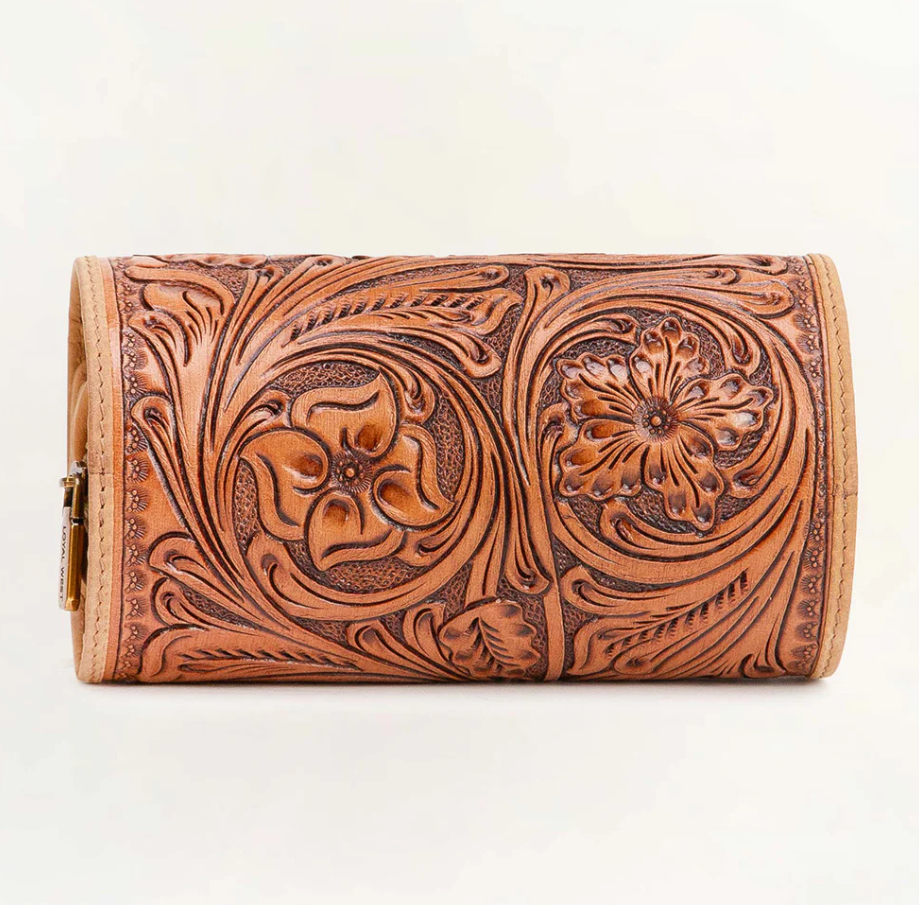 Unleash your adventurous side with the western leather walletfrom Myra. Made from genuine leather and featuring exquisite hand-tooled detailing, this wallet radiates Western sophistication. Its inside zipper pocket offers secure storage, blending style with practicality. Whether paired with another wallet or carried solo, this tooled leather walletis the ideal companion for cowgirls who embrace freedom and individuality.