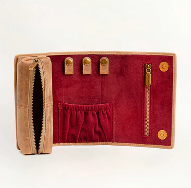The Canyon Jewelry Case is a beautifully crafted organizer made from premium hand-tooled leather. Featuring a vibrant and colorful design, it offers a unique blend of artistry and practicality. This small Jewelry case is perfect for keeping your accessories organized in style, while the intricate hand-tooling adds a touch of elegance. Whether at home or on the go, the Canyon Jewelry Case is a functional yet stunning addition to your collection.