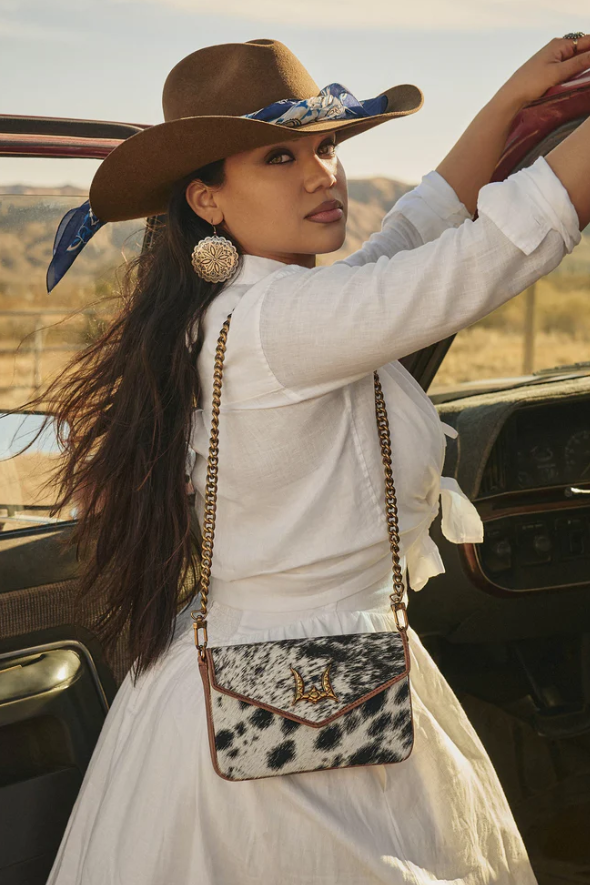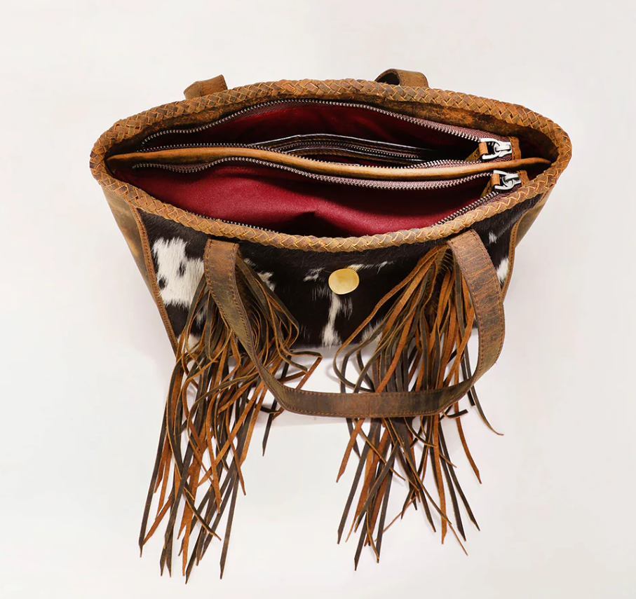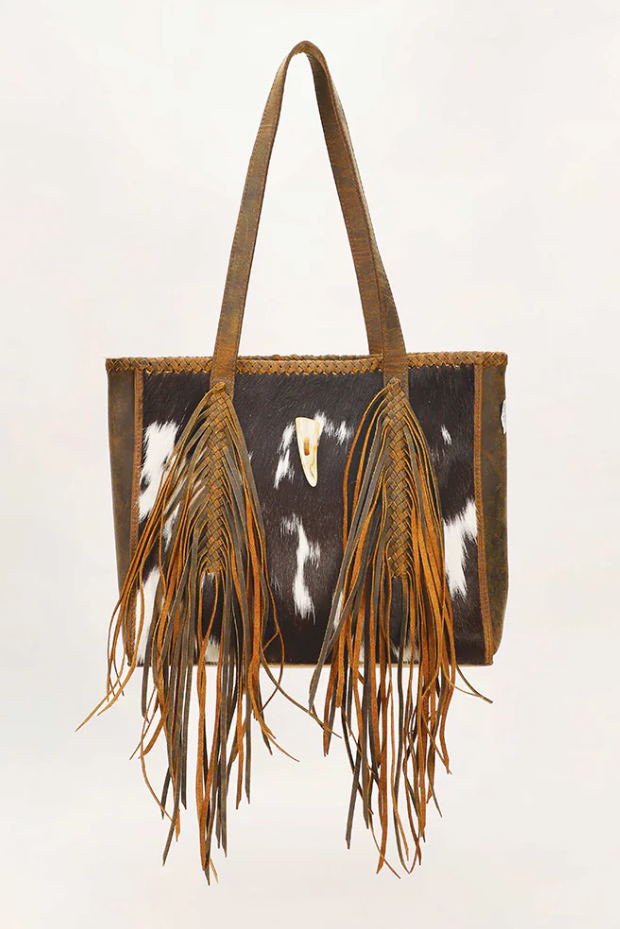 Pair it with casual or tailored looks for a stylish, rugged touch. The Hide and Fringe Medium Cowhide Purse adds a distinctive, timeless element to any outfit.