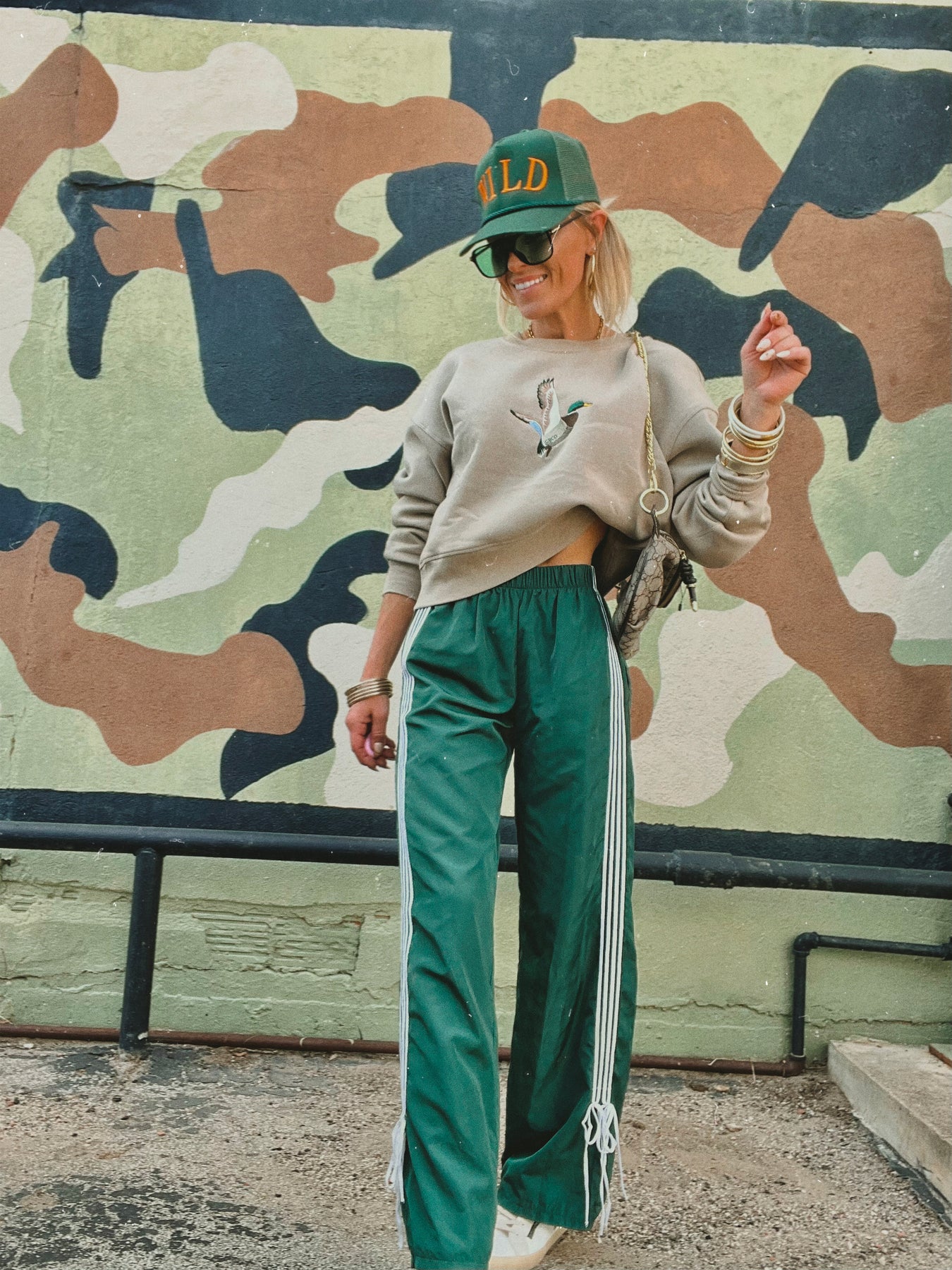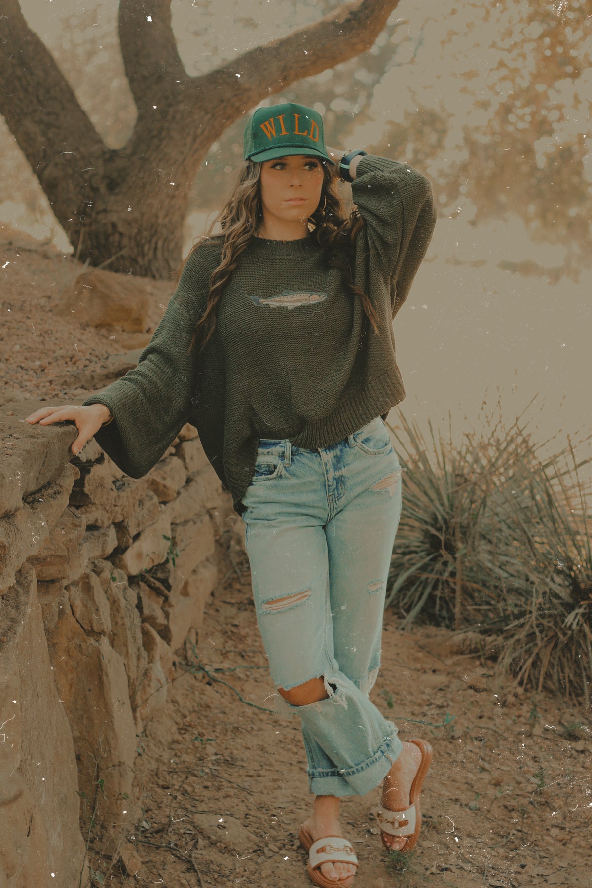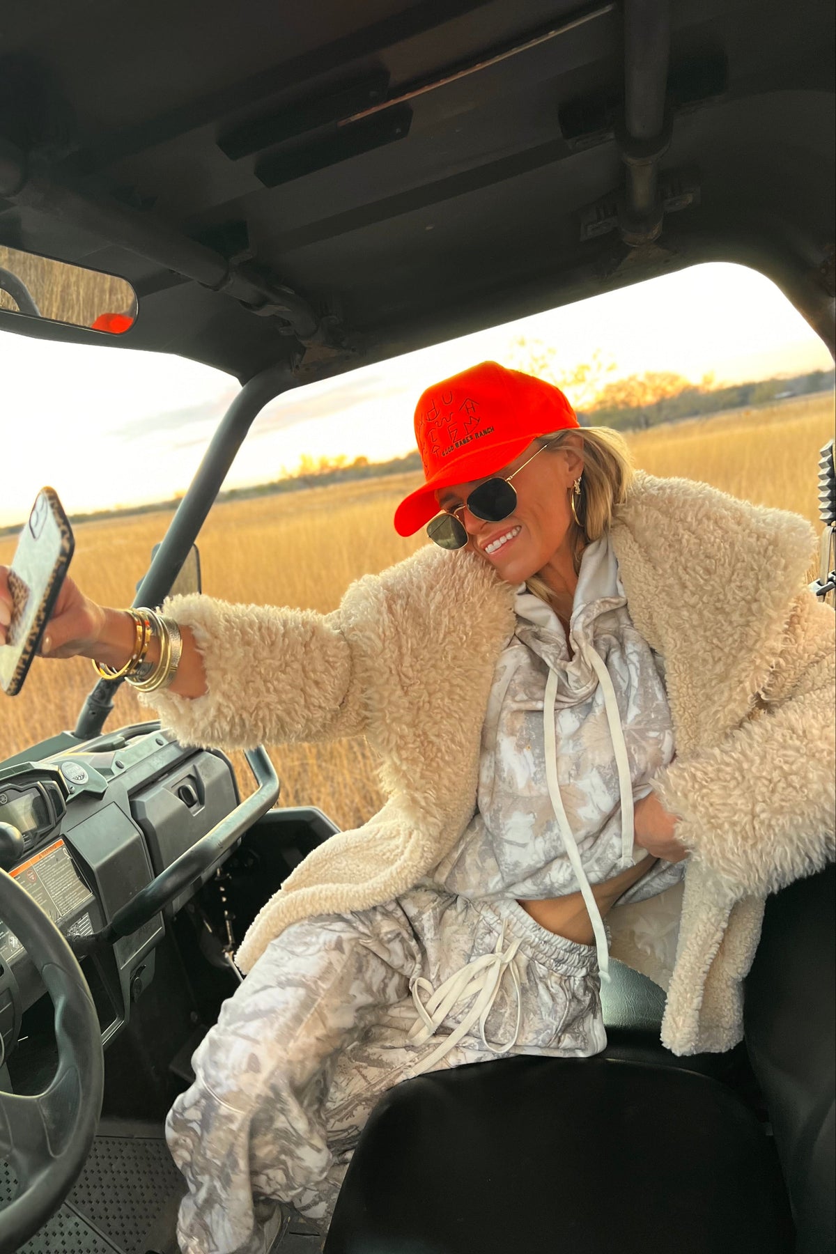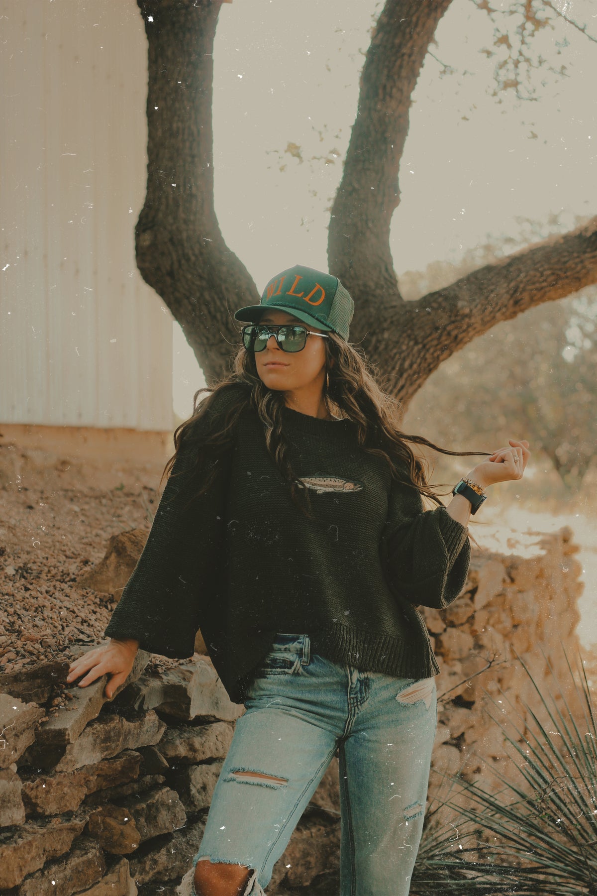 Outdoors to the bone. The Good Babes Hunting Club Trucker Hat in Olive features bold gold rope trim and a custom buck embroidery. Clean, classic, and made to stand out.