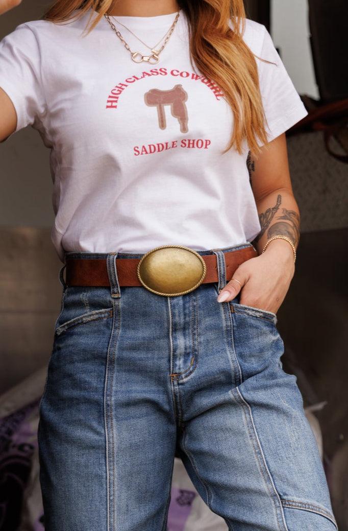 Meet your new favorite accessory. The Myra belt is a classic western-style leather belt with oval buckle that combines traditional looks with modern edge.