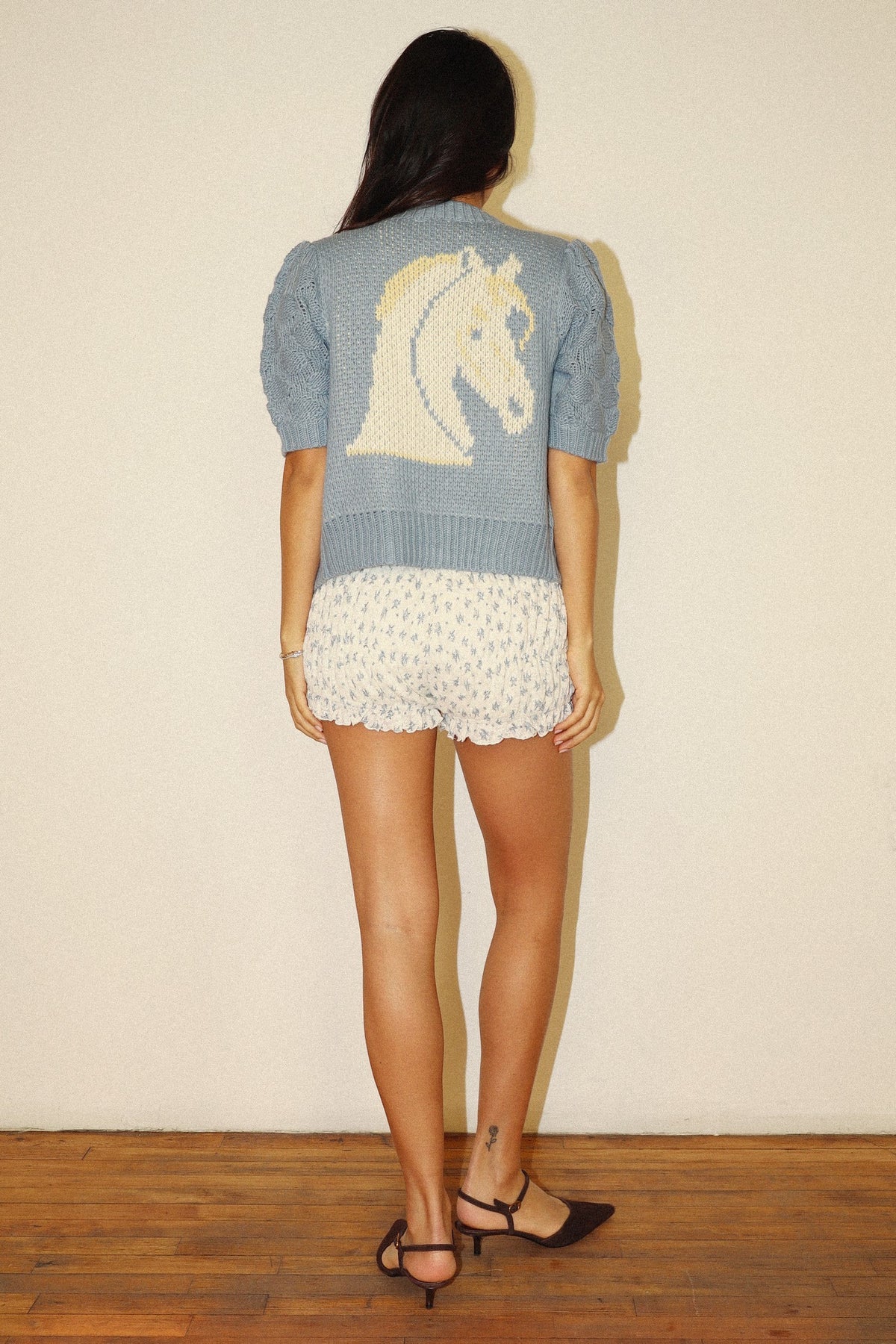 Horse Jacquard shawl knit cardigan with back horse detail.
