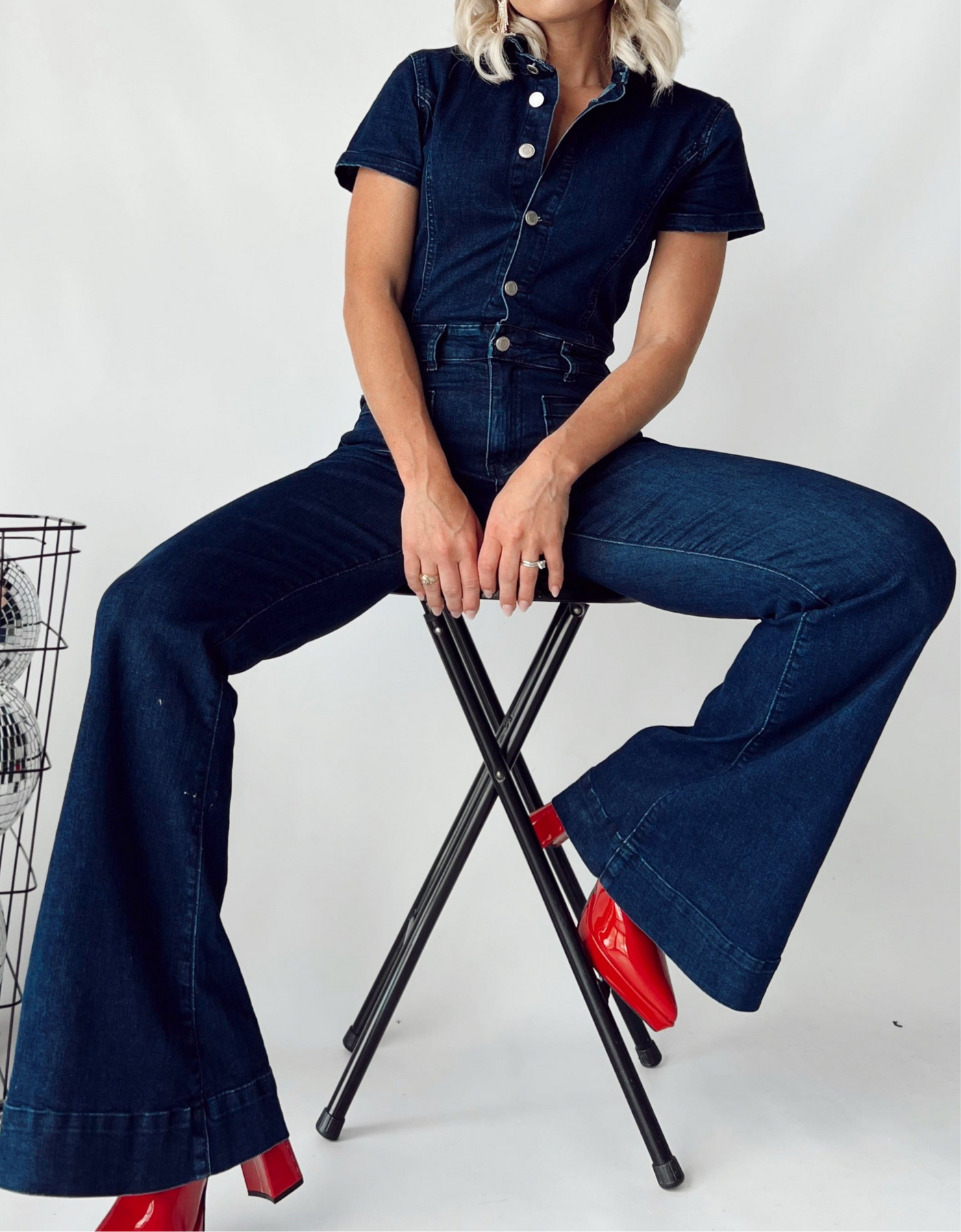 Clean, classic, and made to flatter. This high-waisted boot cut trouser features a timeless wash, single button closure, and a structured fit with minimal stretch. Designed for a tailored look with premium denim feel—effortless to dress up or down.