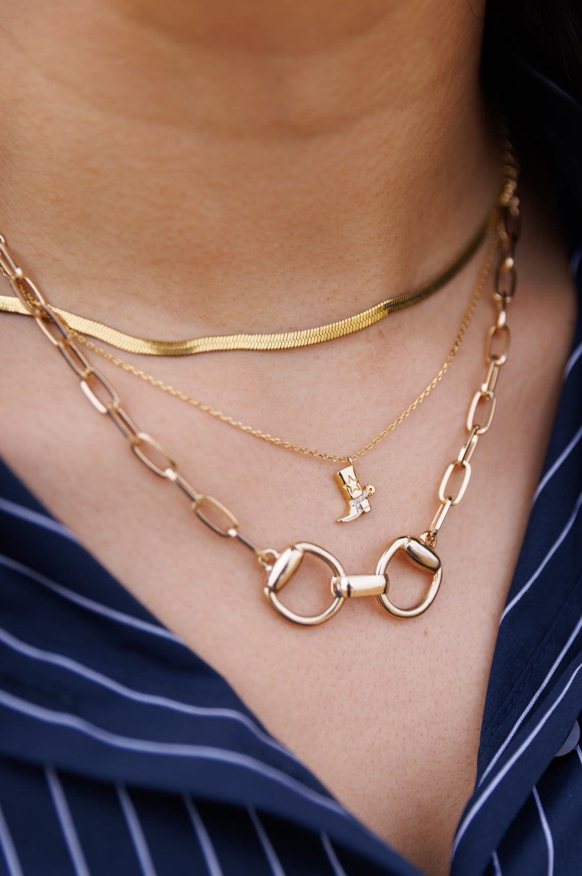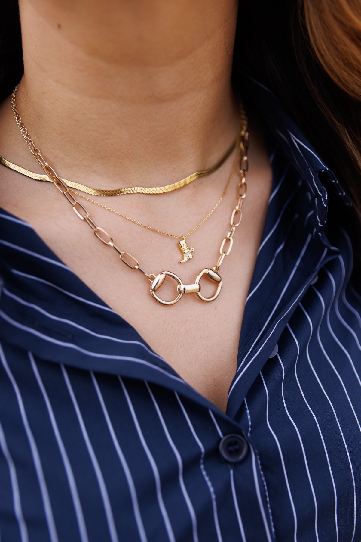 I LOVE this necklace and the matching boot earrings so much. And I get so many compliments on them. They are perfect by themselves and as a layered piece with a cute outfit to make anything western!