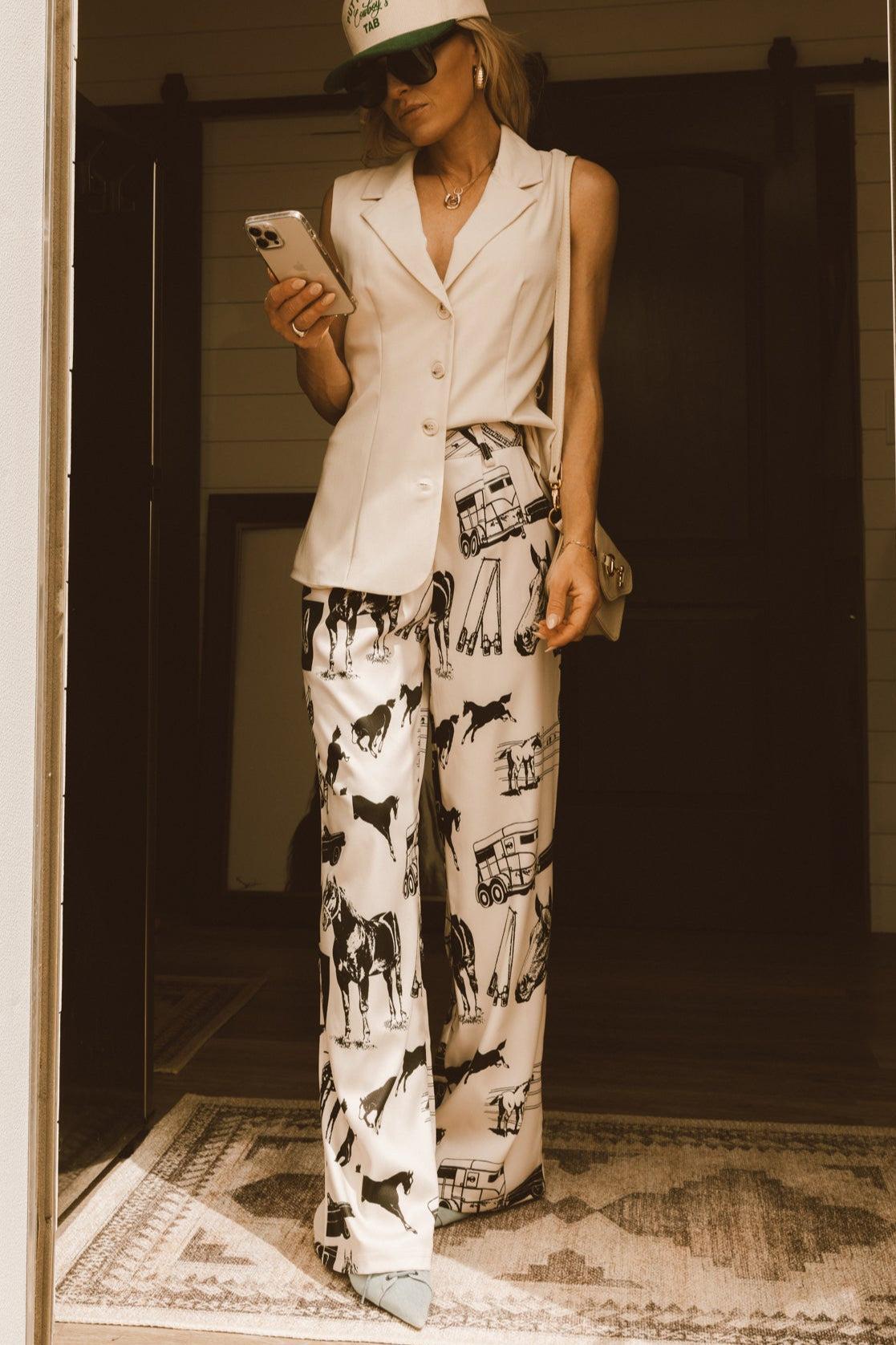 Trending: leopard print and barrel jeans - meet the best combo ever. These high-rise barrel jeans feature an all-over leopard print and a cuffed hem. Pair them with a graphic tee or a denim vest and you've got the perfect summer outfit.