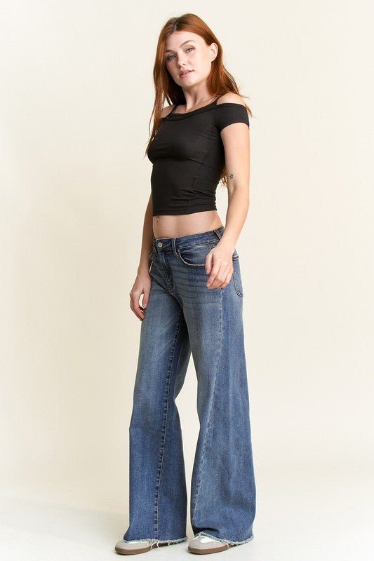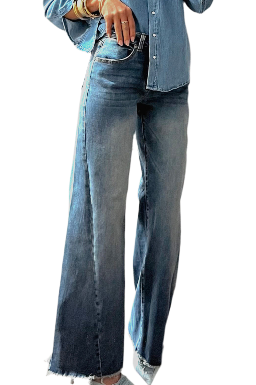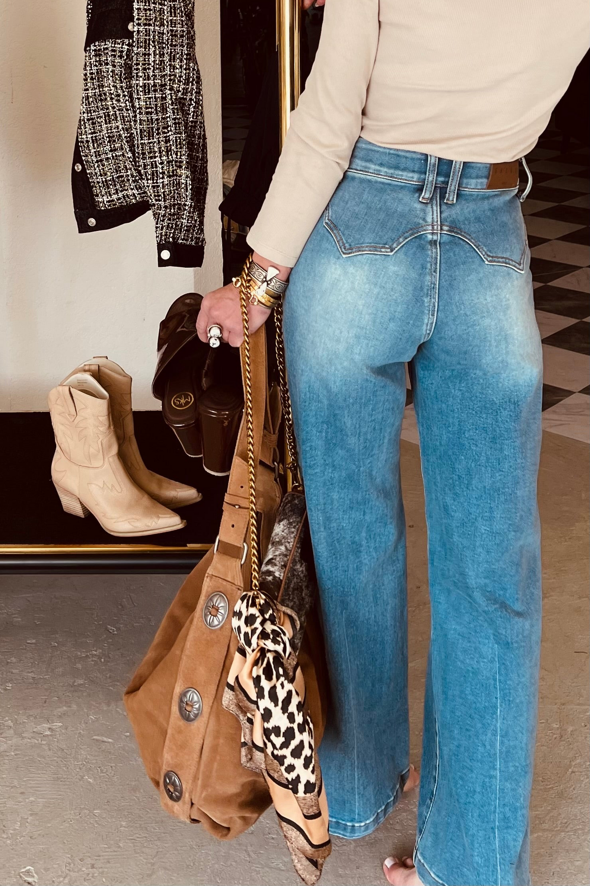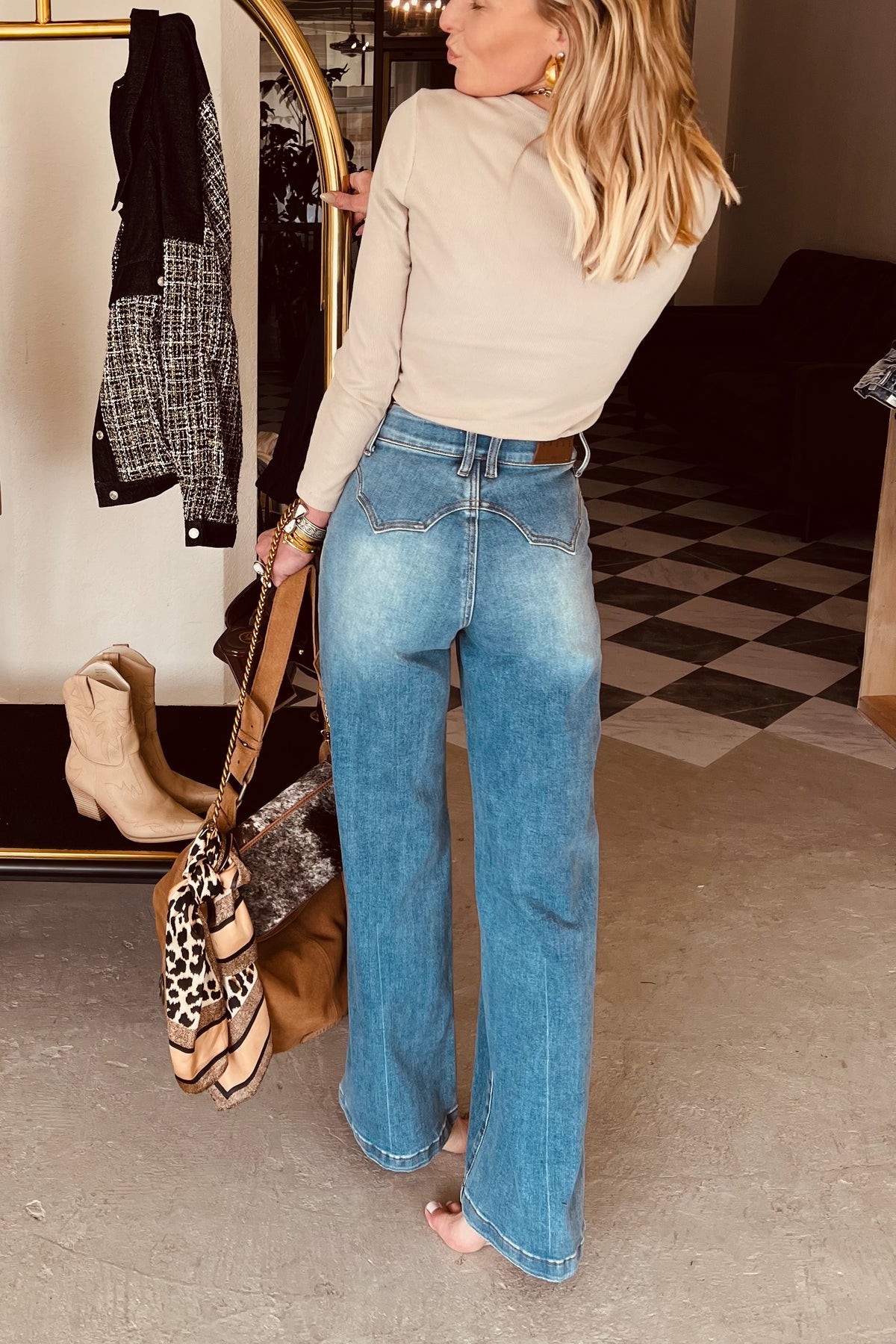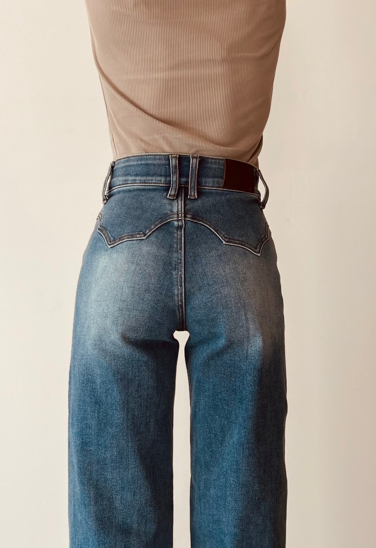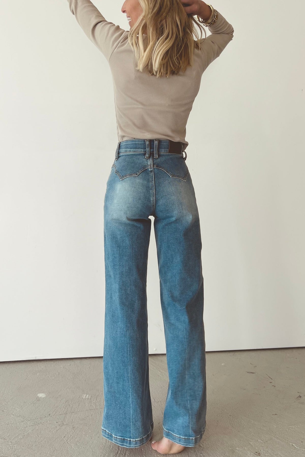 Elevate your denim game with this high-rise, wide leg jean—designed to flatter and elongate. Featuring bold front patch pockets and a clean front zipper fly, it’s a modern twist on a timeless classic. Perfect for dressing up or keeping it casual.