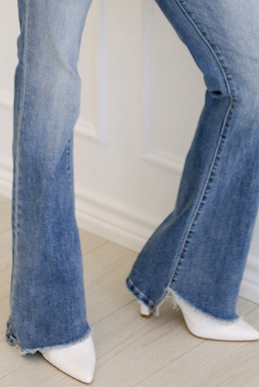 Turn heads in our High Rise Slant Cut Flare Denim. Designed to flatter with a high-rise waist and unique slant cut detail, these jeans flare out for that perfect Western-chic silhouette. A bold twist on a classic fit—made for standout style.