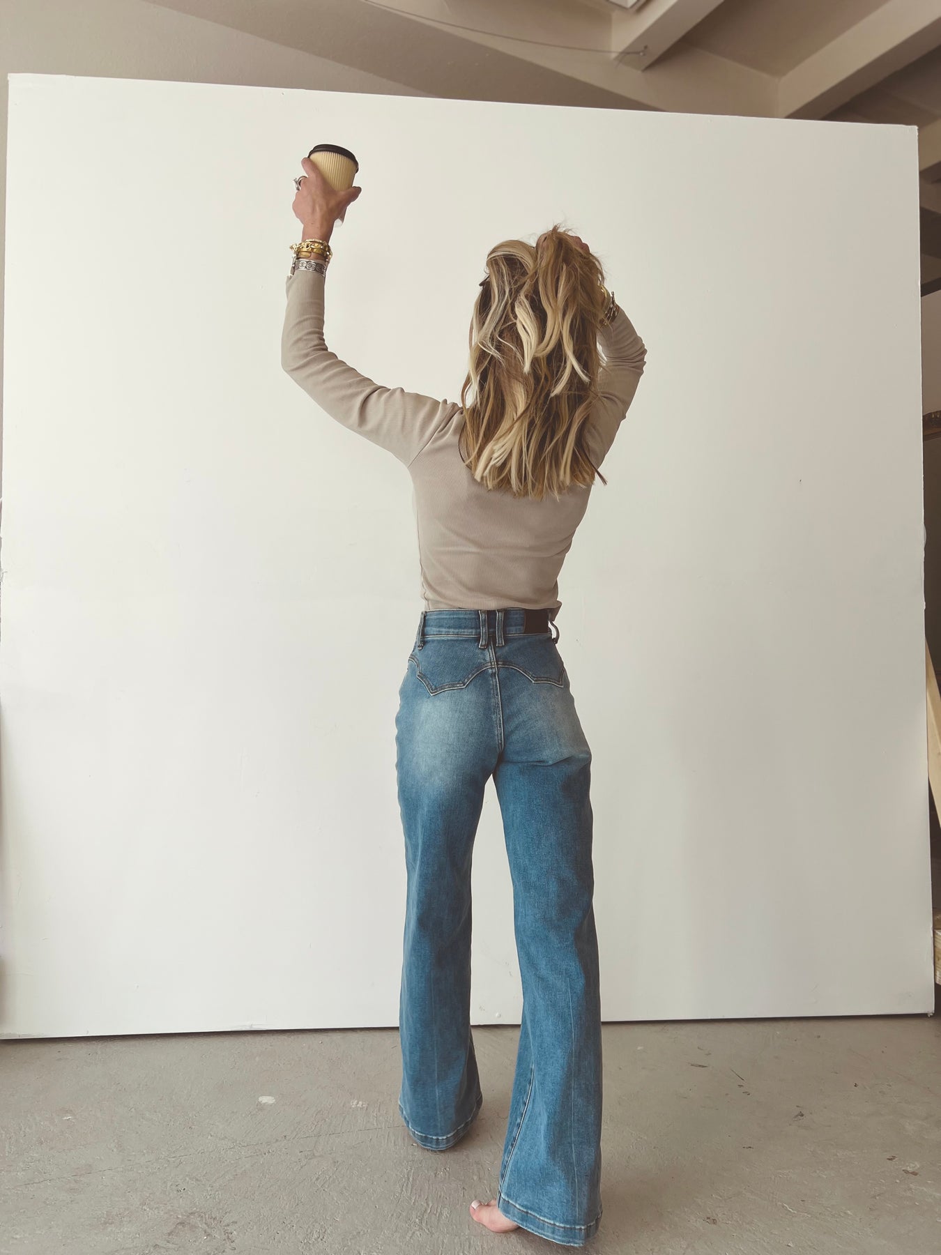 Clean, classic, and made to flatter. This high-waisted boot cut trouser features a timeless wash, single button closure, and a structured fit with minimal stretch. Designed for a tailored look with premium denim feel—effortless to dress up or down.