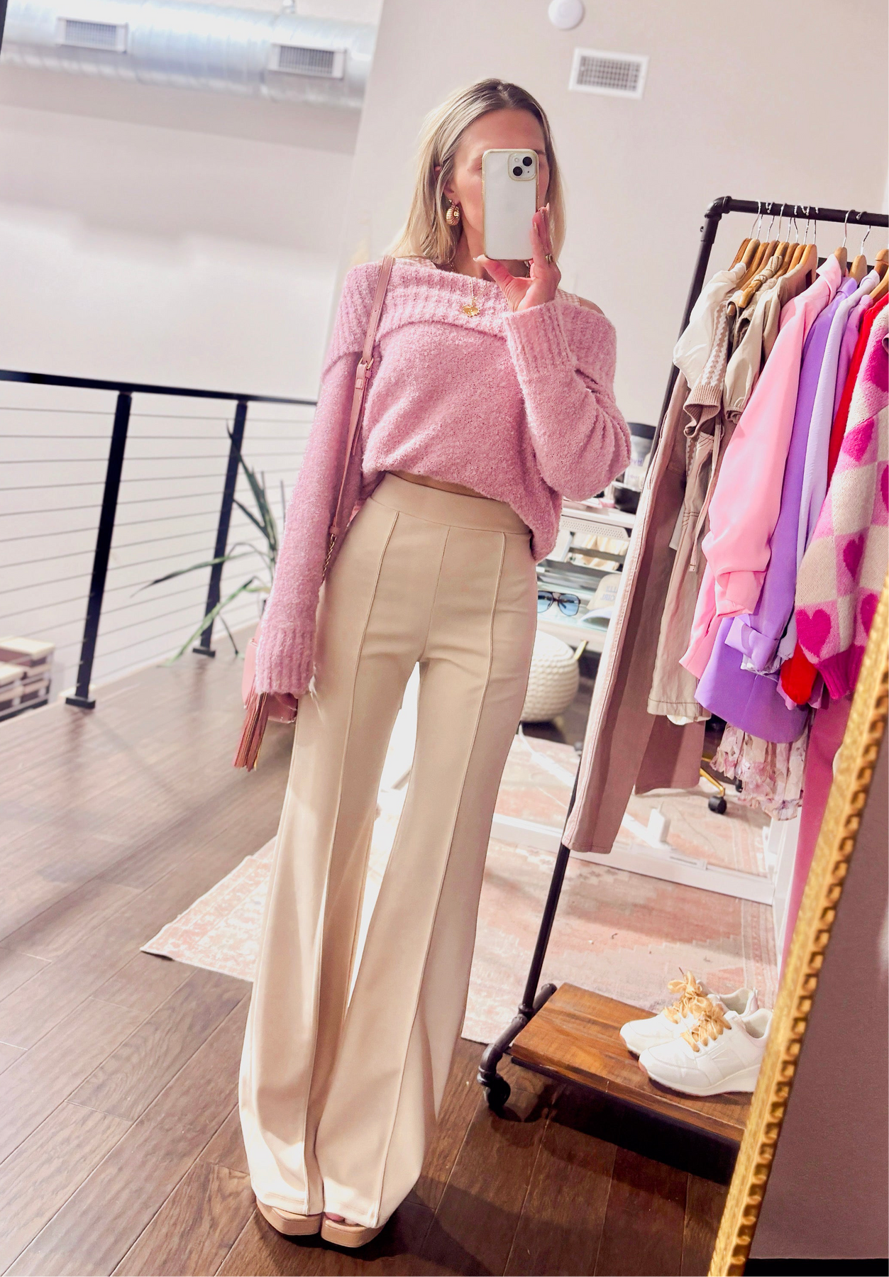 A customer favorite. This classic and timeless trouser is high-waisted, stretchy and features a front seam detail. Not only are they super versatile and available in multiple colors, but The Zoey Trouser also has a 35" inseam = tall girl friendly.
