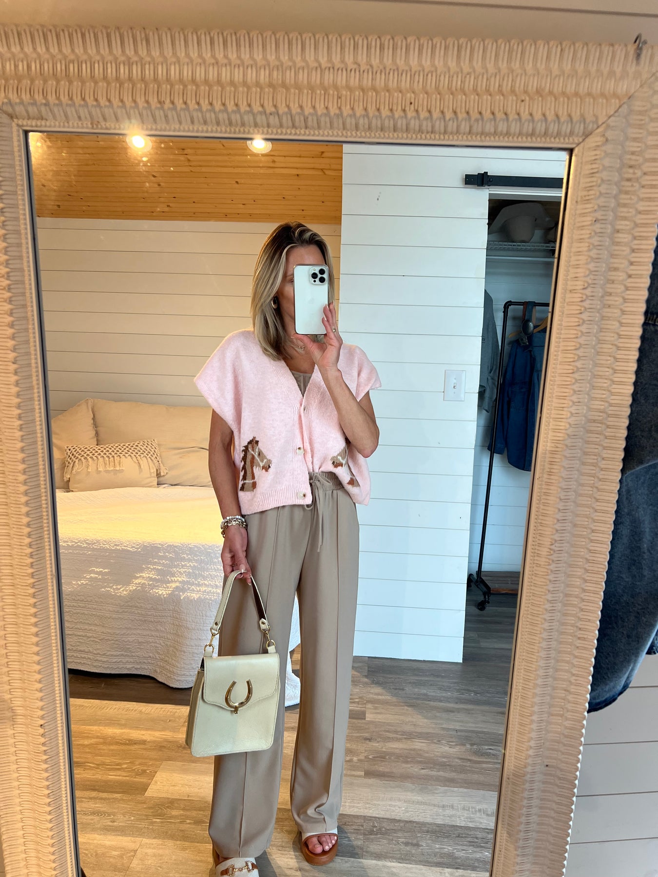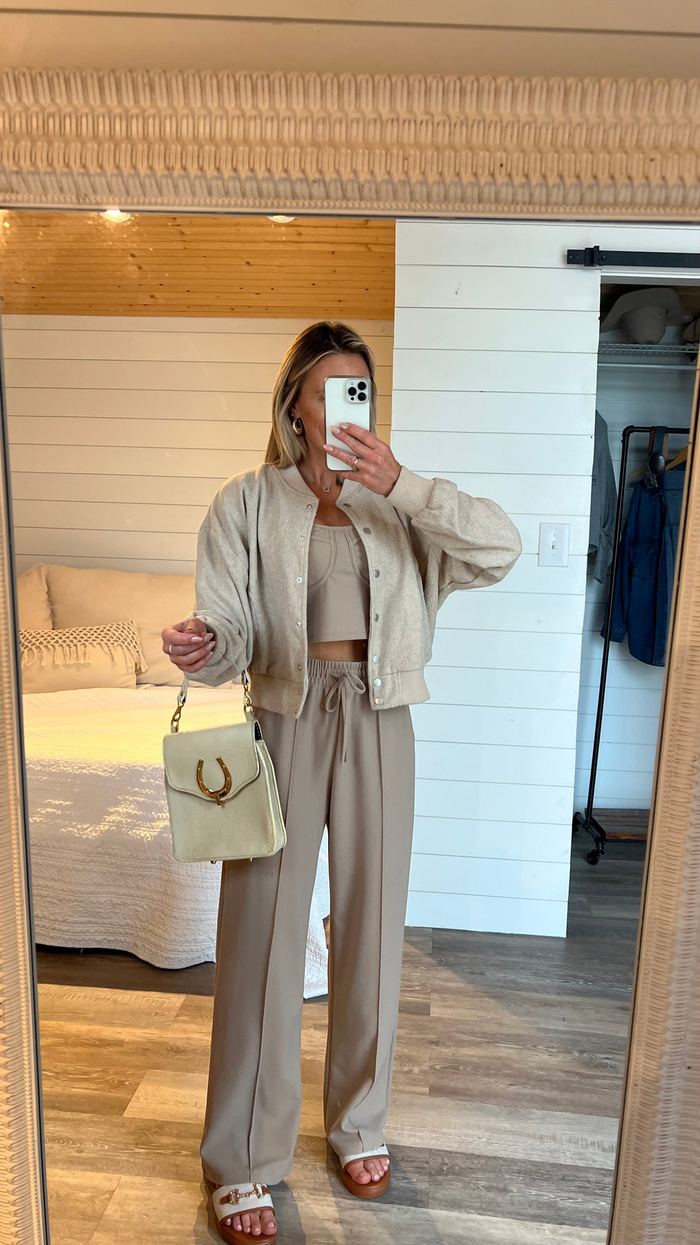 This soft linen set features a gathered cami top with subtle elastic detailing and matching wide-leg pants with a high, drawstring waist. The perfect blend of comfort and style for easy summer days on the beach or at brunch.