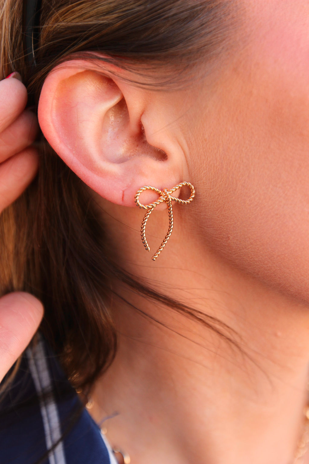 These adorable bow design rope twist stud earrings are the perfect addition to any outfit.