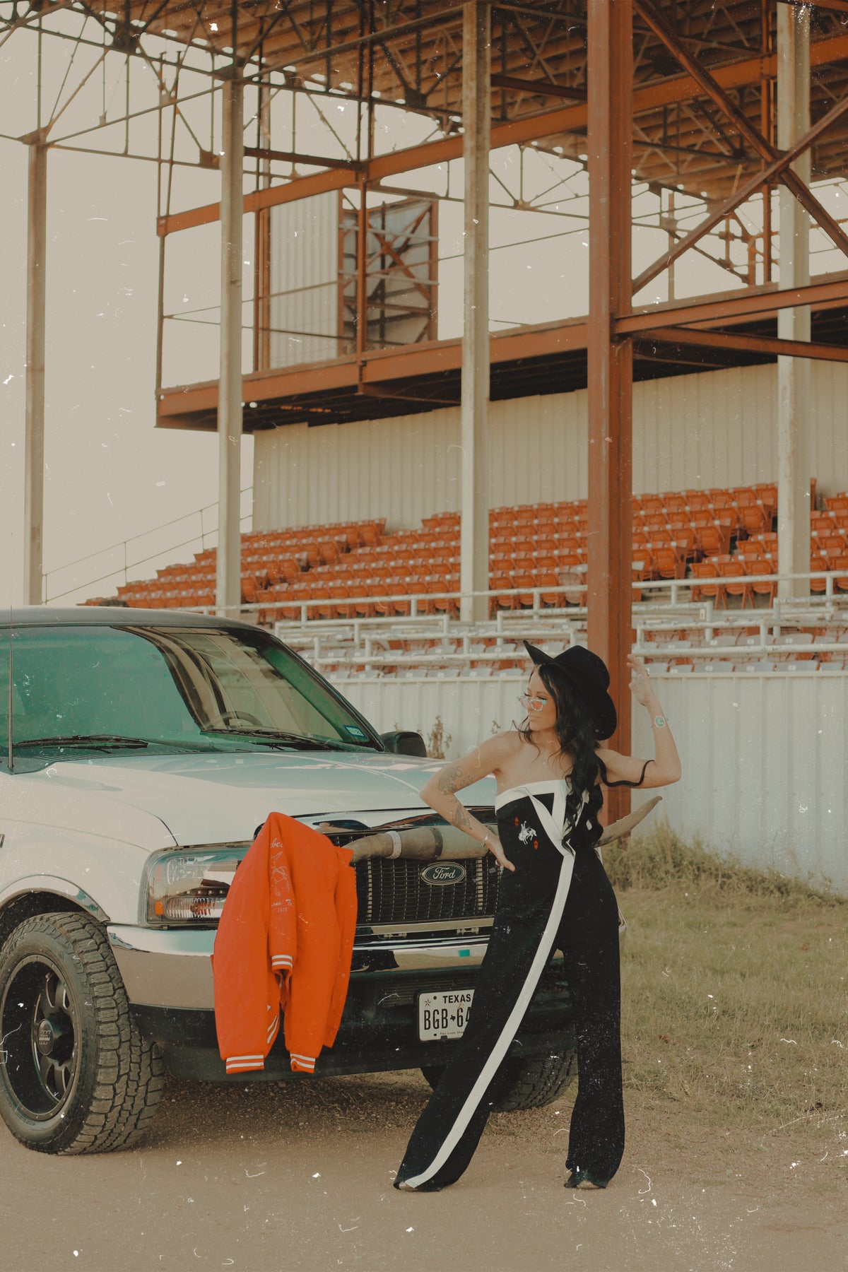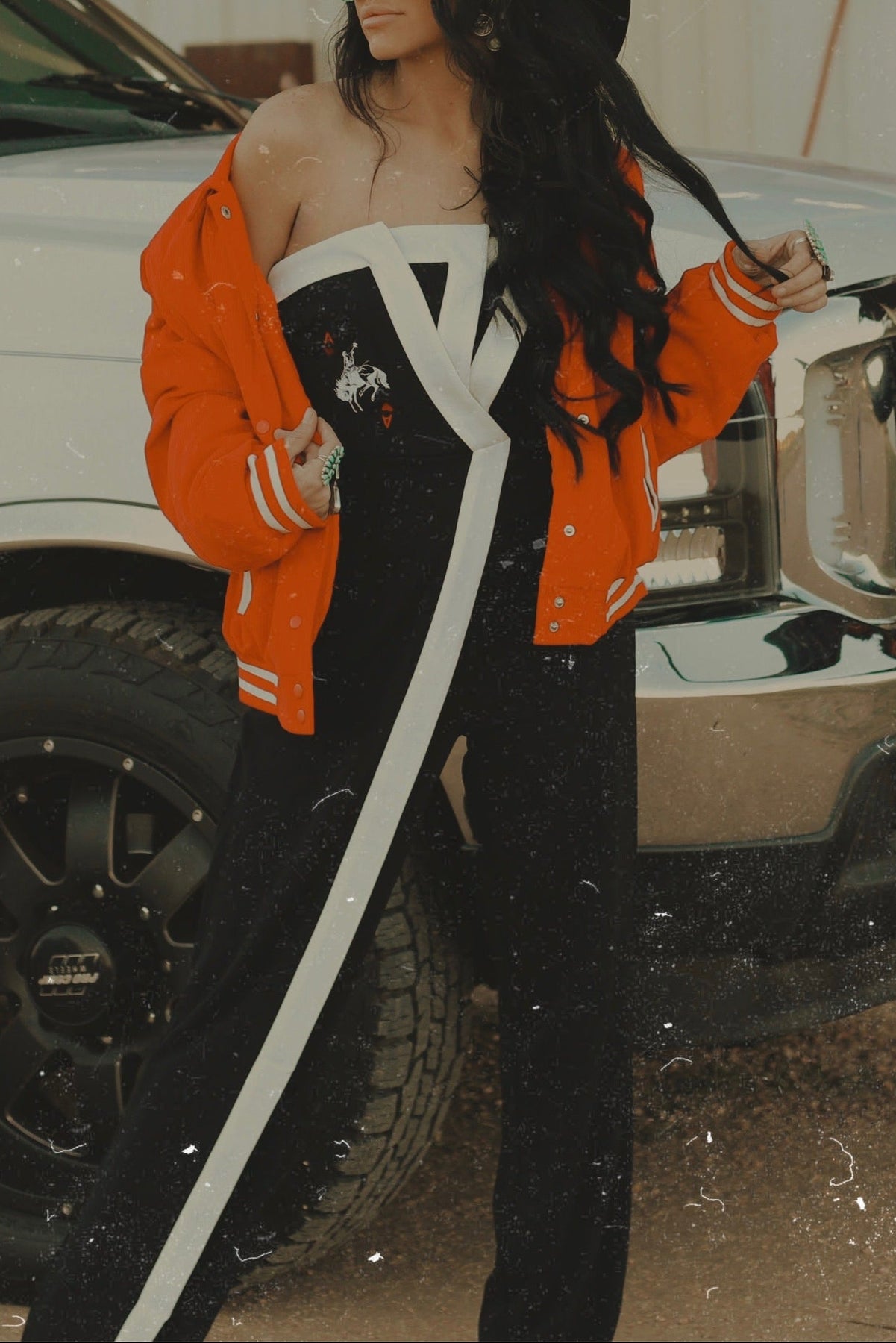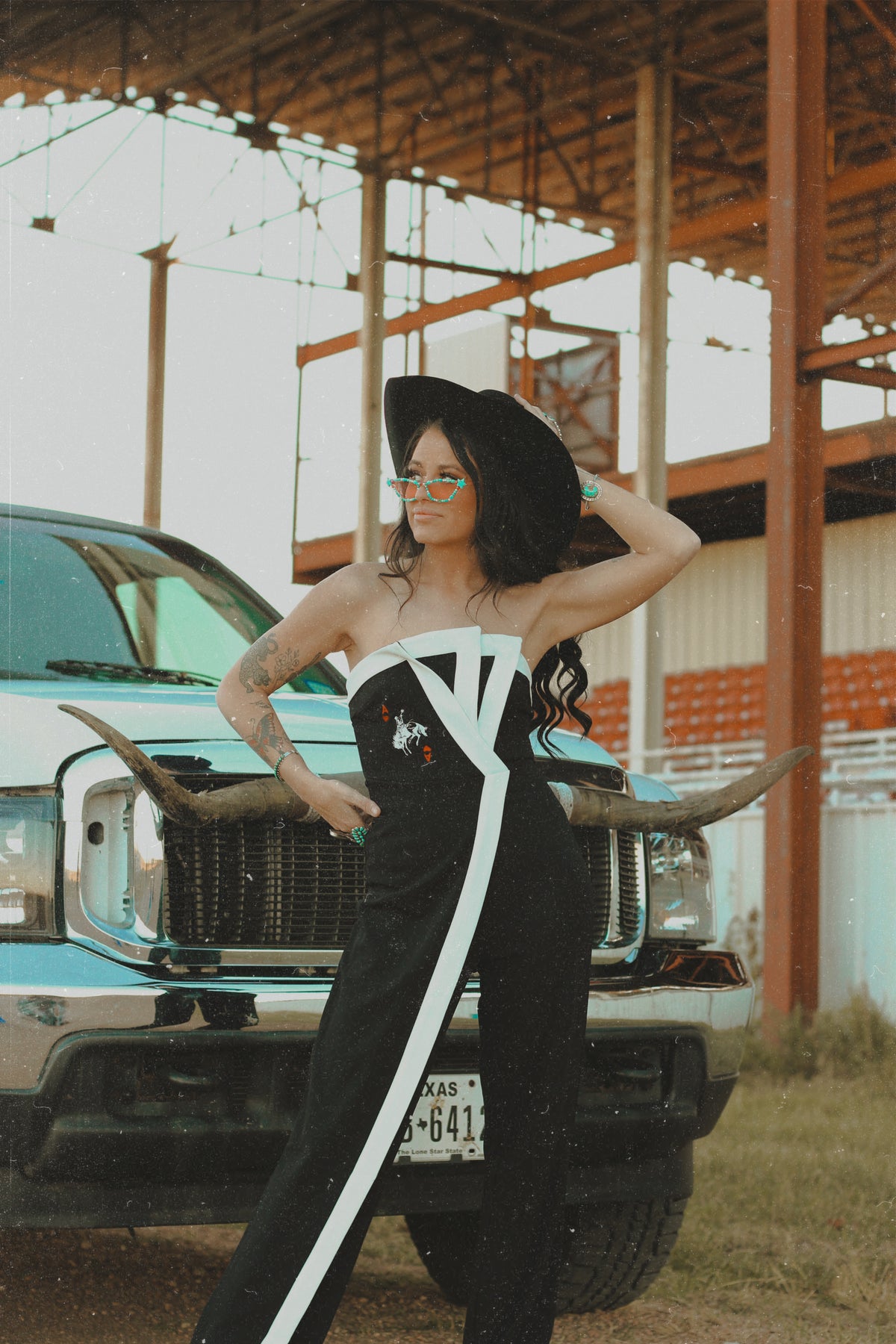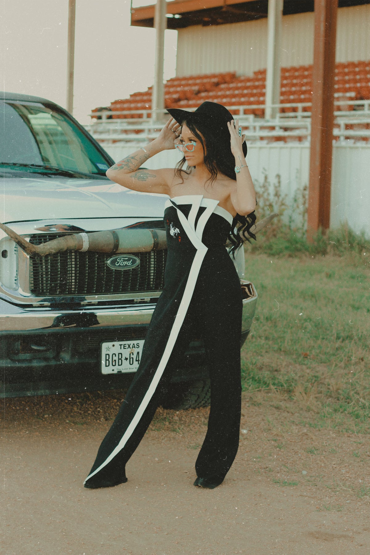 Good Babes Custom Card Jumpsuit Long inseam - Very stretchy size down if in between sizes model is a size 4 in the size small