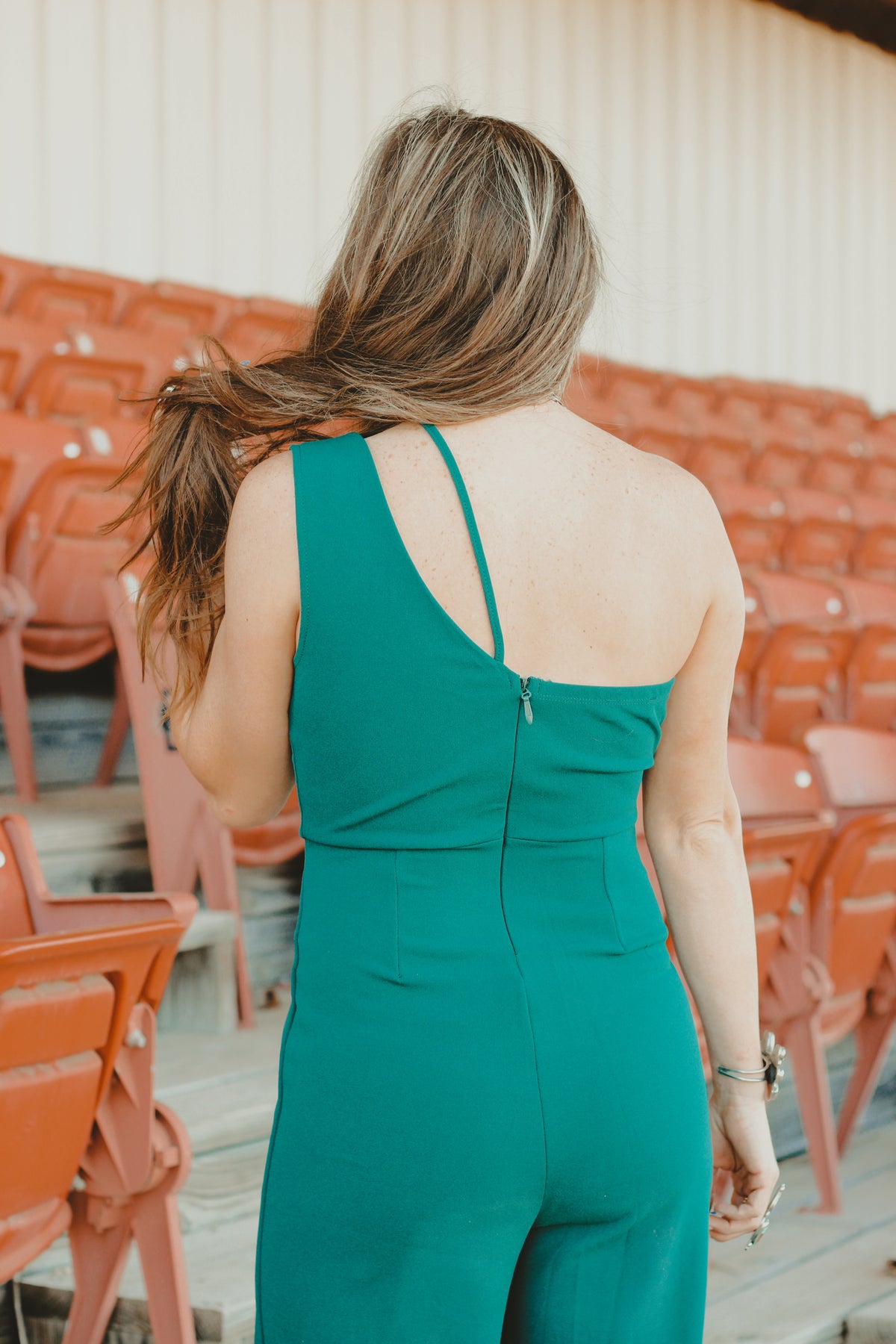 - ONE SHOULDER PLEATED FASHION JUMPSUIT