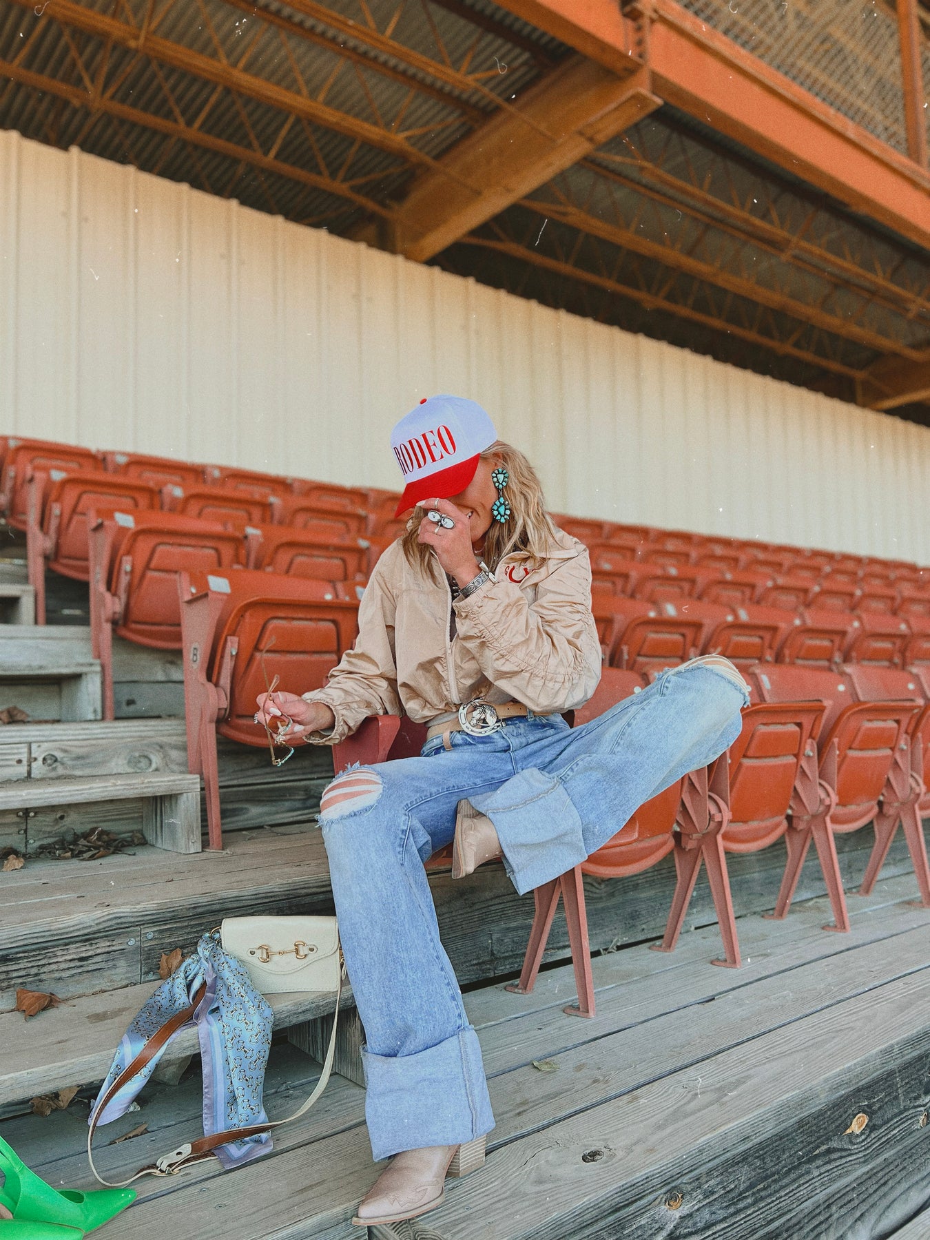 This cropped blazer brings the best of both worlds with double peak lapels, a button-front fit, and embroidered western flair stitched into each lapel. Can be worn open or closed, but is guaranteed to make a statement either way.