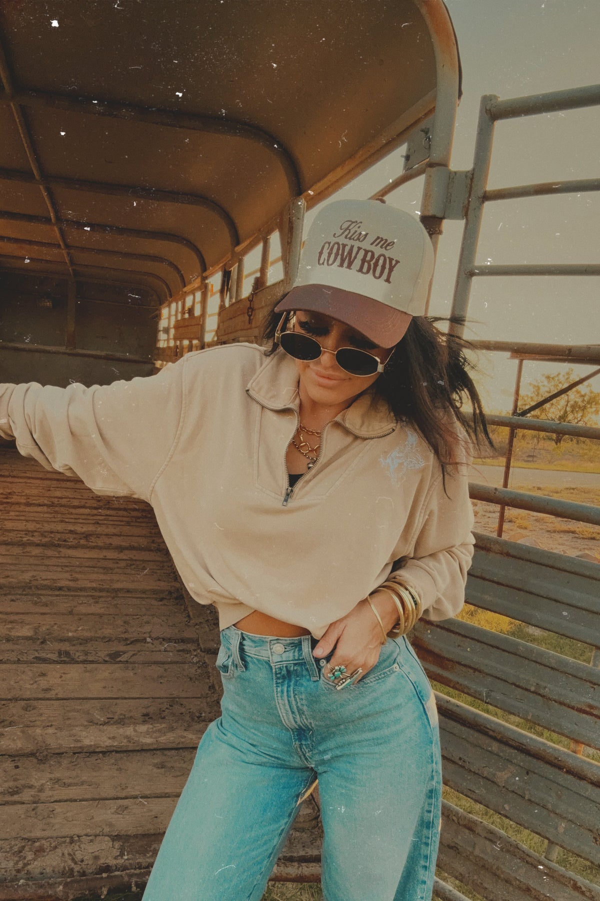 Kiss Me Cowboy Two-Tone Cap in Brown-Cap-The Good Babes Co. LLC