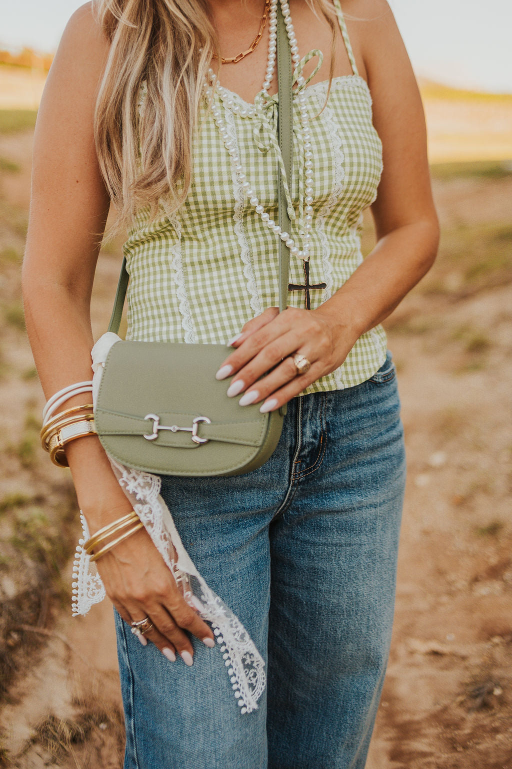 Add a touch of classic western style to any look with this everyday bag. Featuring silver-tone hardware, horsebit detail, magnetic closure and an adjustable shoulder strap - you’re going to love this bag.
