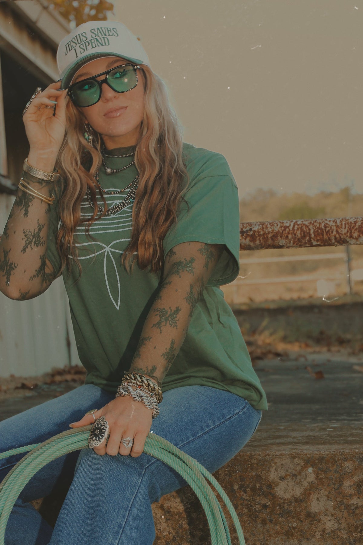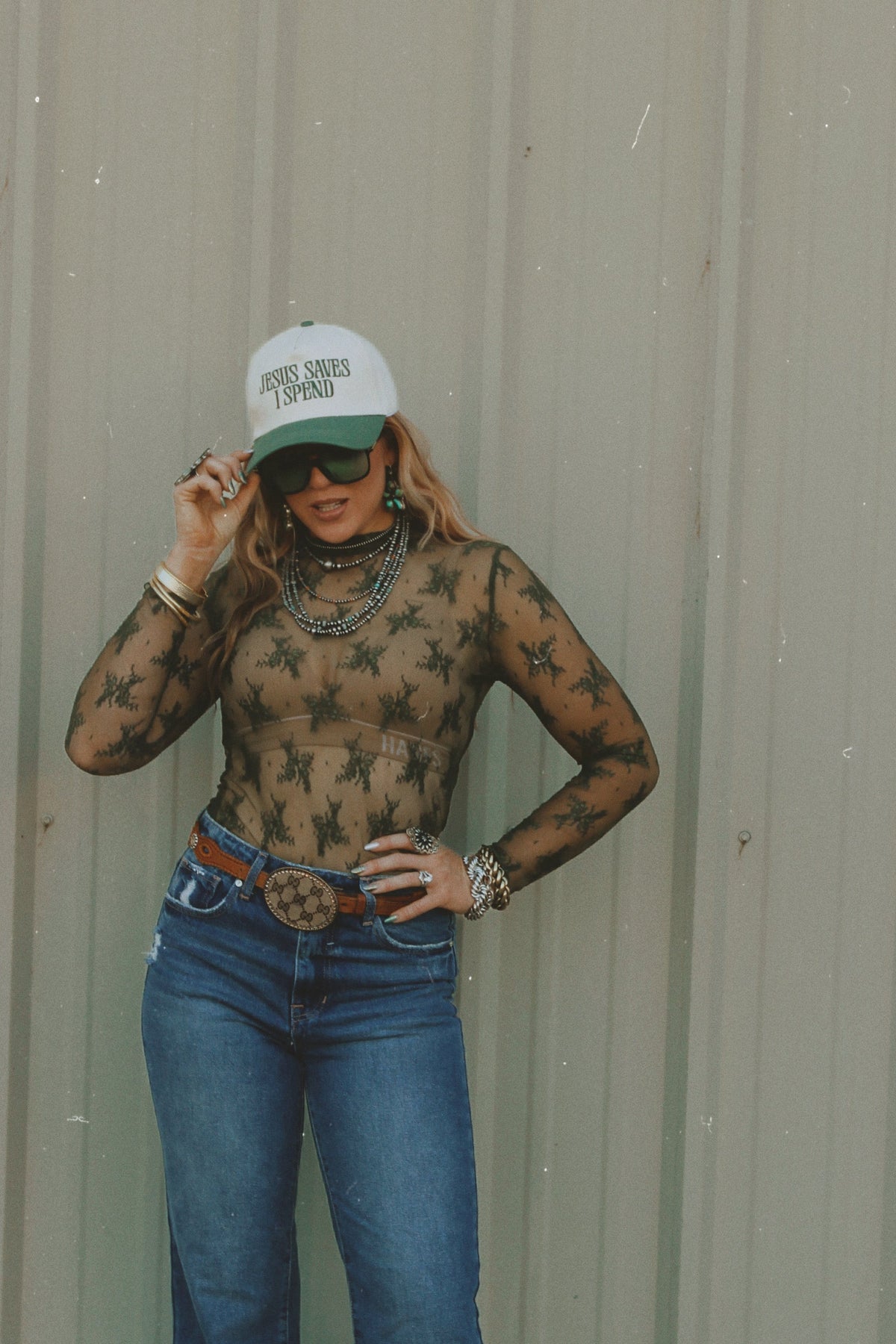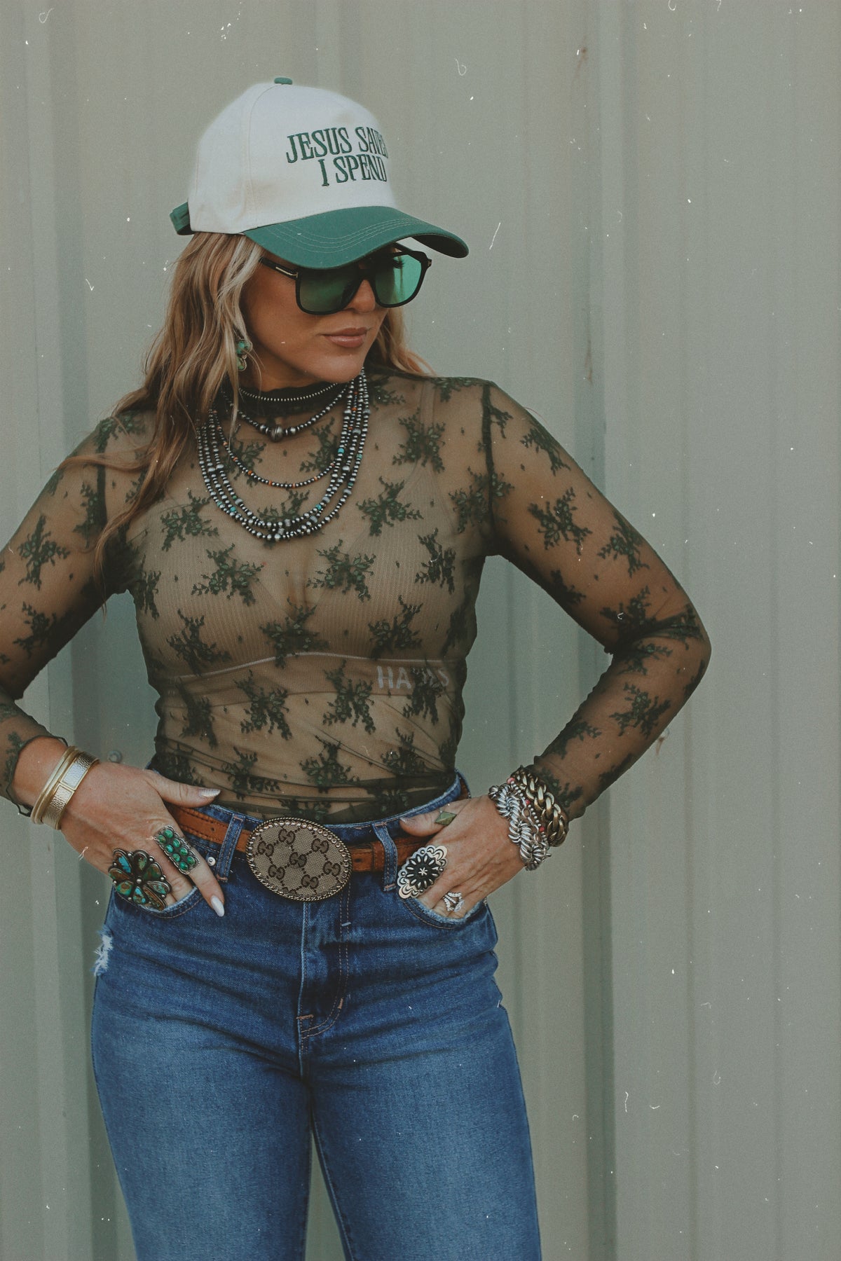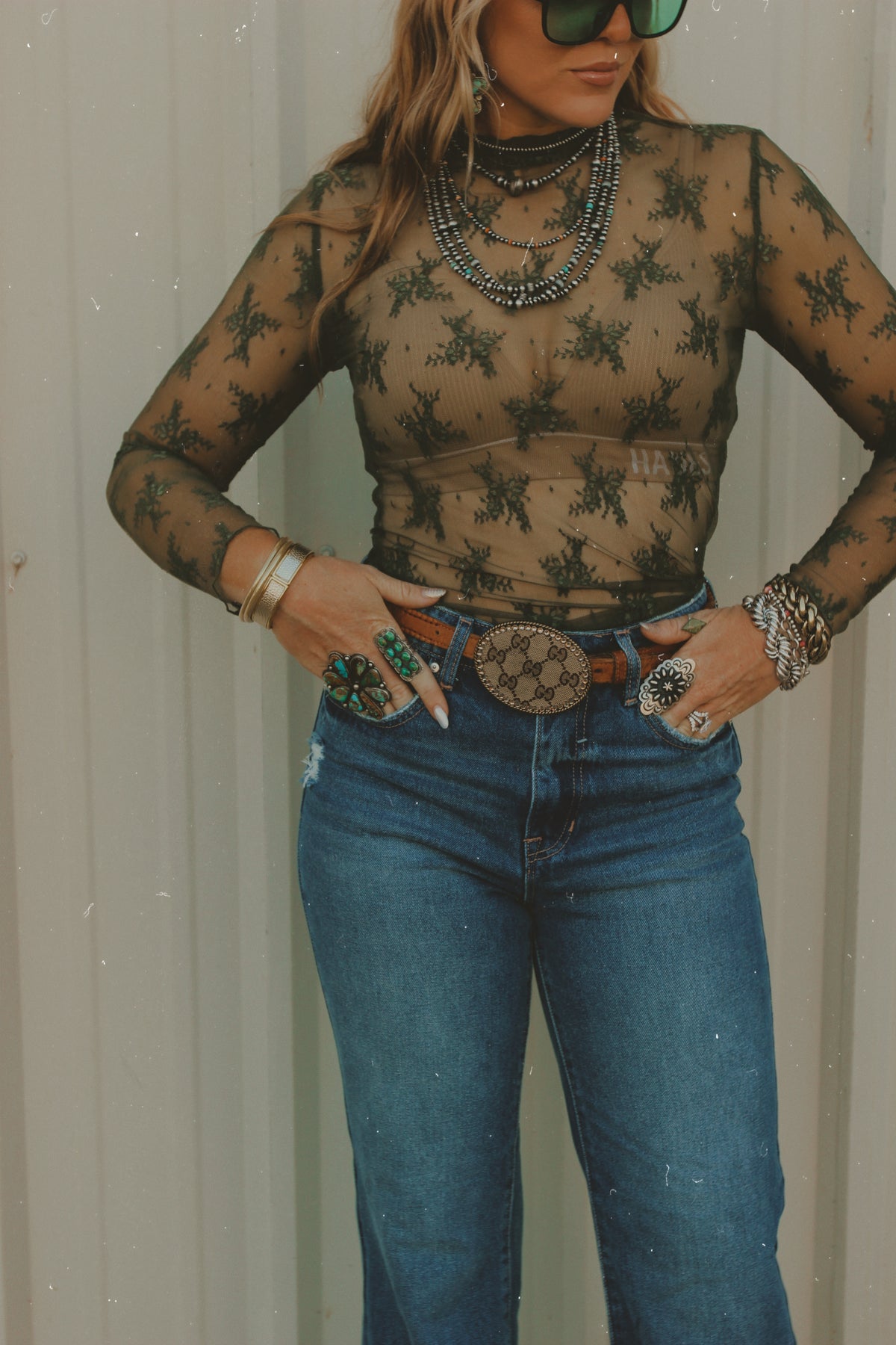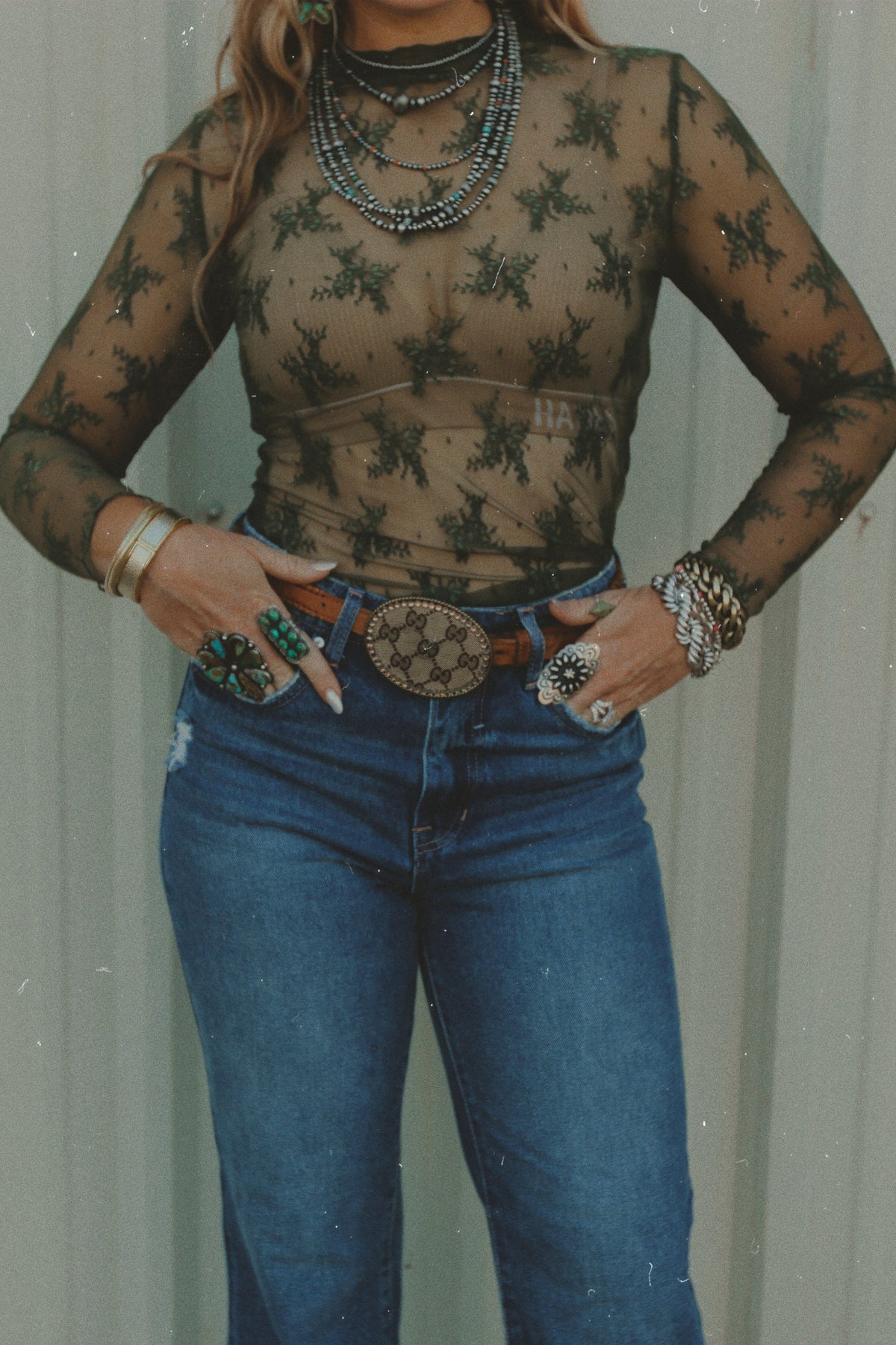 Subtle edge meets Western elegance. This dark olive lace layering top is sheer in all the right ways — perfect for polished, layered looks