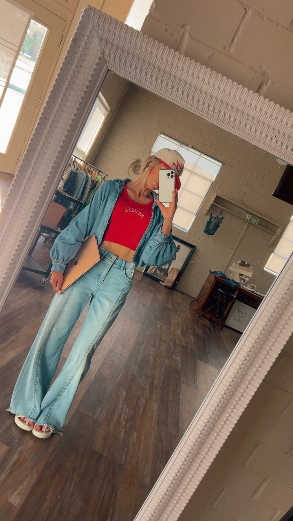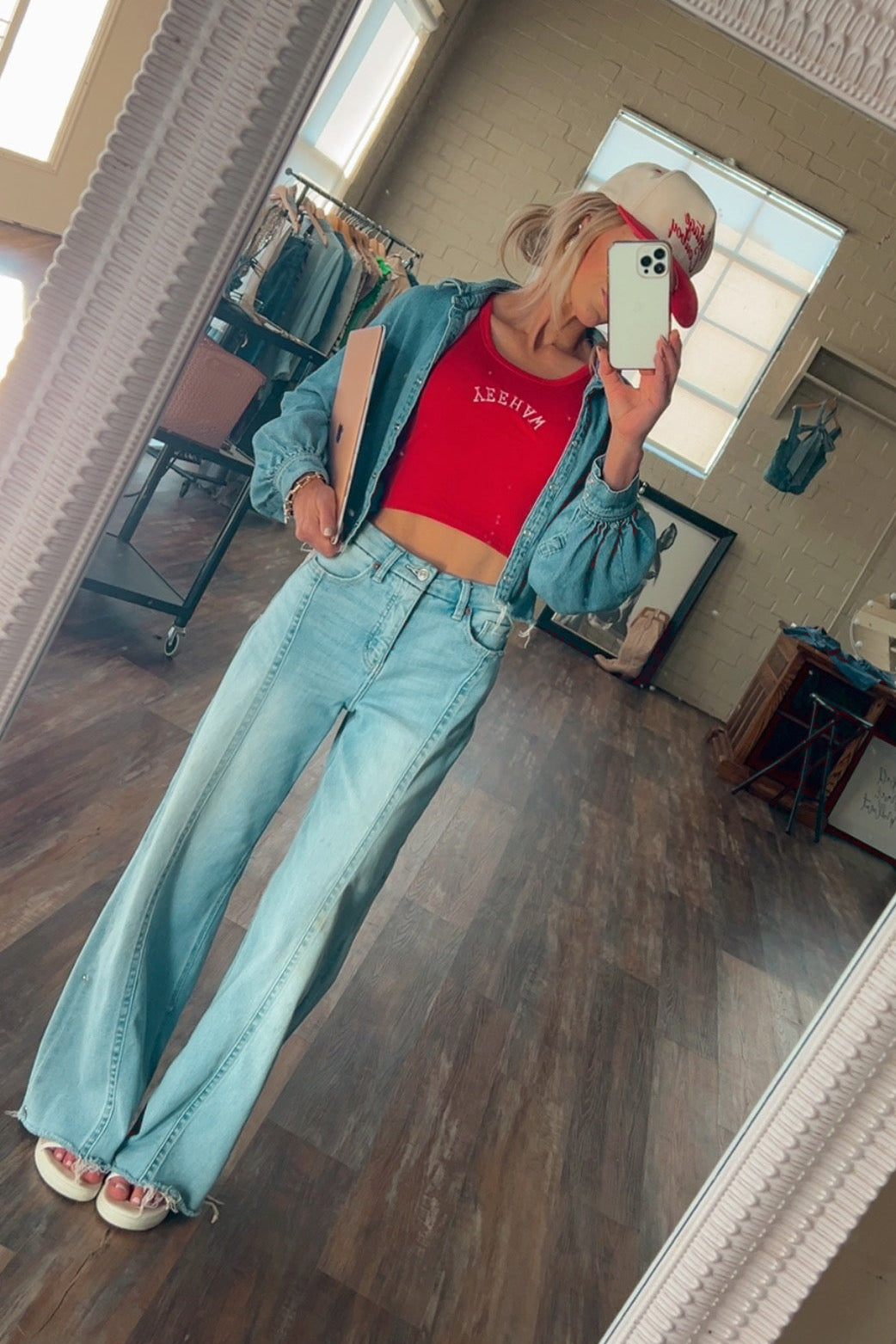 Turn heads in our High Rise Slant Cut Flare Denim. Designed to flatter with a high-rise waist and unique slant cut detail, these jeans flare out for that perfect Western-chic silhouette. A bold twist on a classic fit—made for standout style.