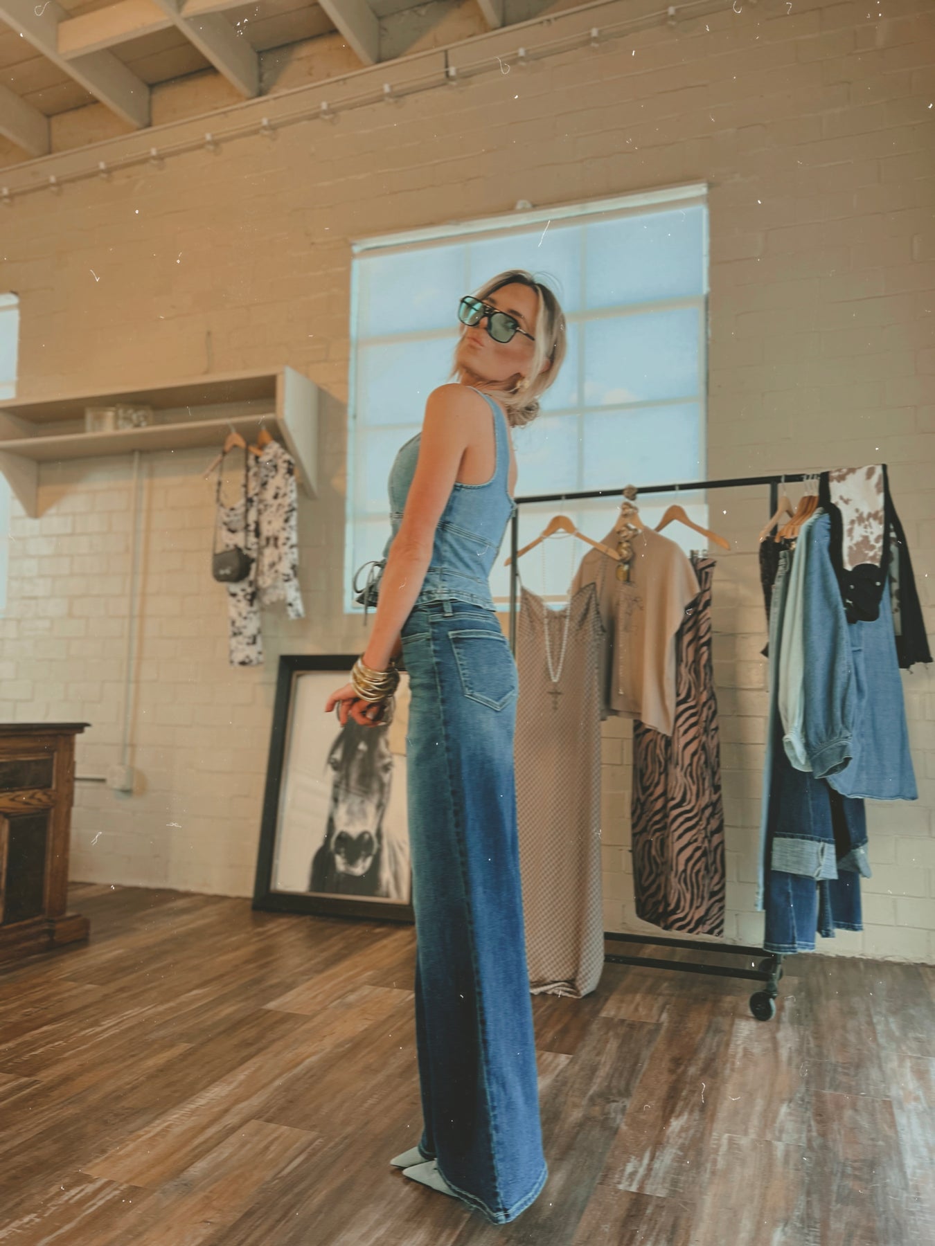 Clean lines meet everyday ease. These high-waisted jeans feature a wide-leg, straight silhouette designed to elongate and flatter. Structured yet relaxed—your new go-to denim for effortless styling.