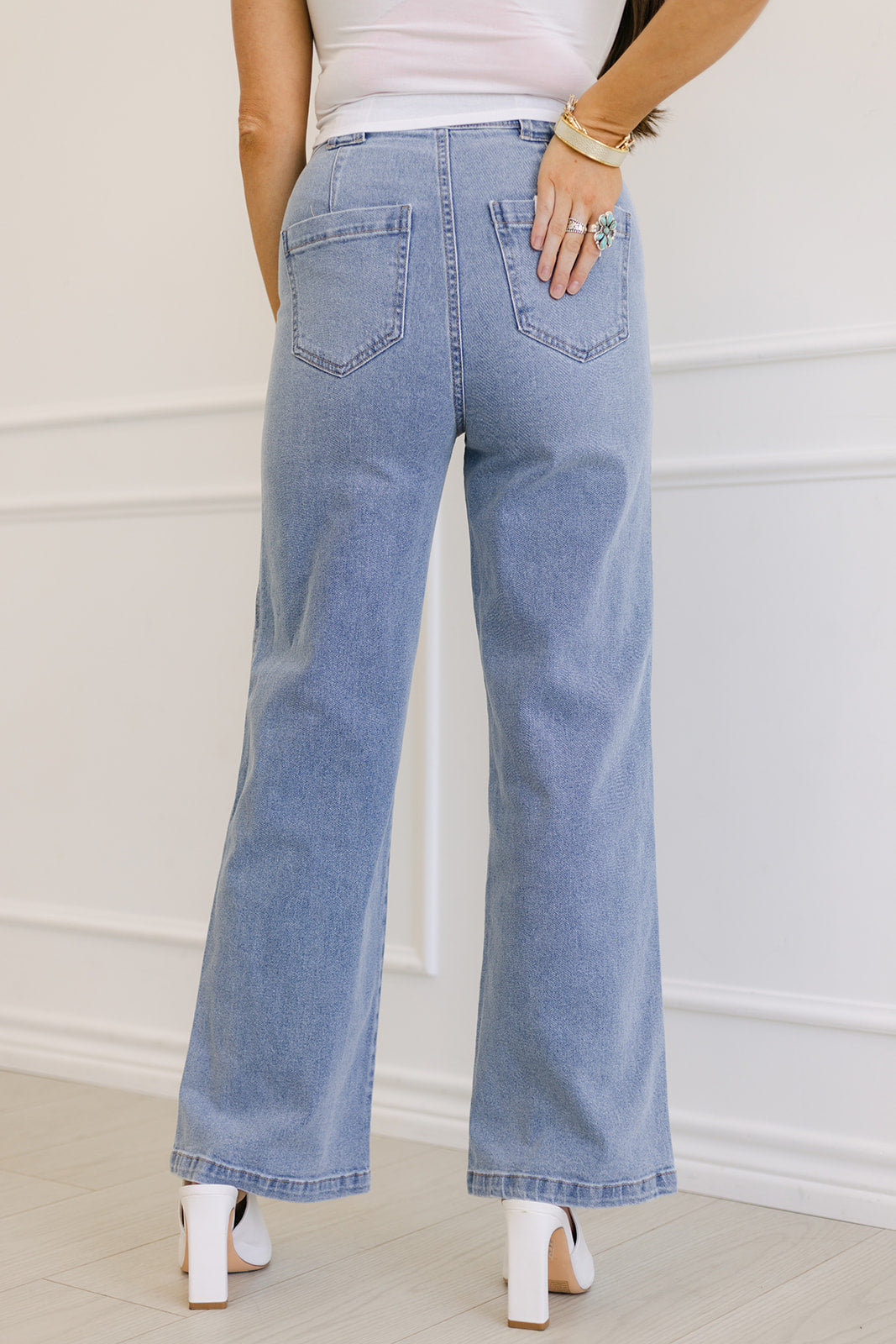 Elevate your denim game with this high-rise, wide leg jean—designed to flatter and elongate. Featuring bold front patch pockets and a clean front zipper fly, it’s a modern twist on a timeless classic. Perfect for dressing up or keeping it casual.
