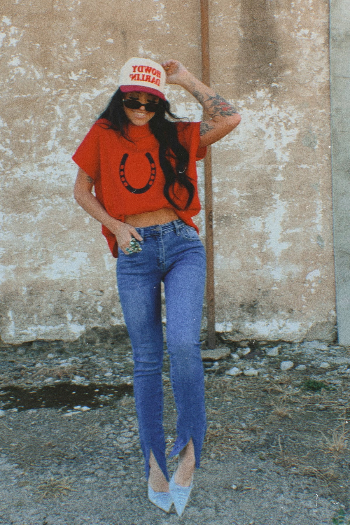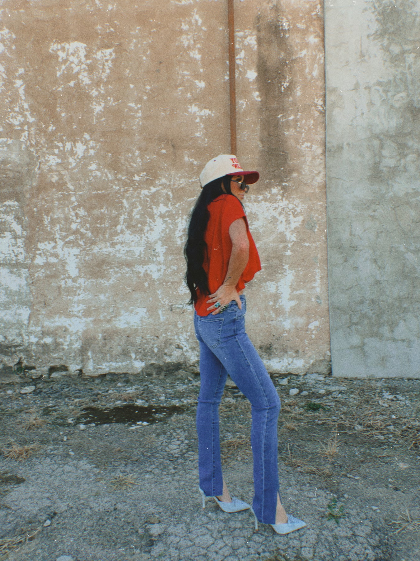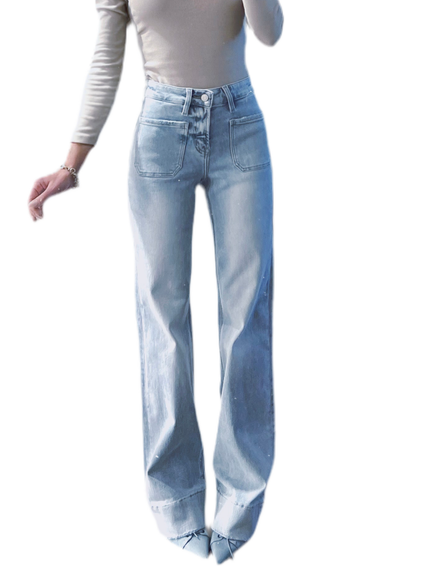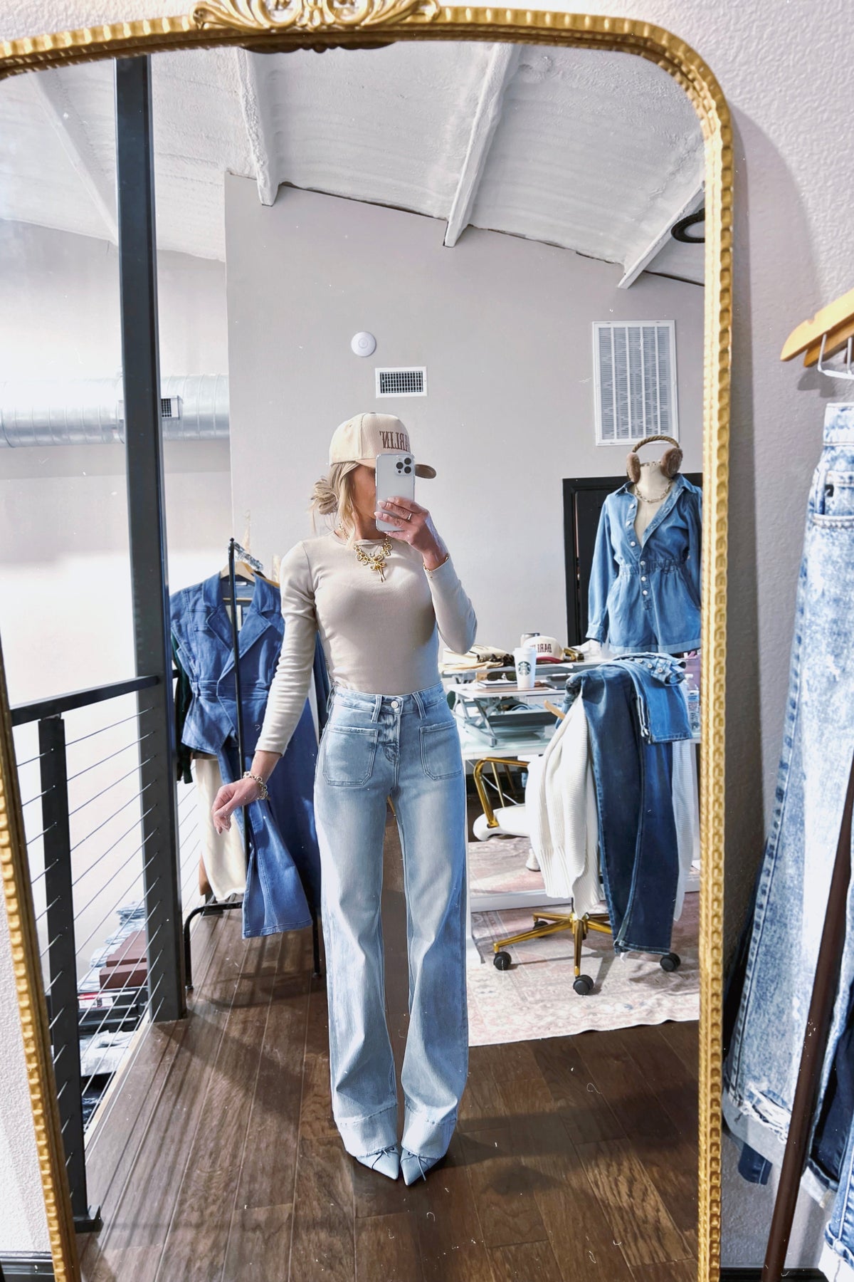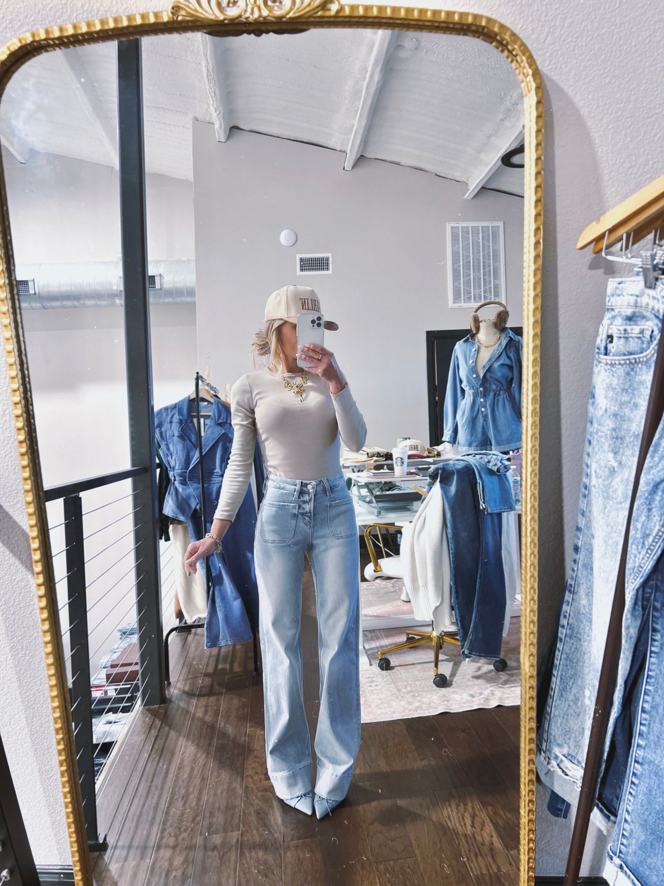 Throw on your favorite top, we found your new fav pair of jeans. These jeans are a high-rise, raw hem, wide-leg that can be cuffed or uncuffed. Stretchy and super comfortable - these are the perfect jeans for the summertime.