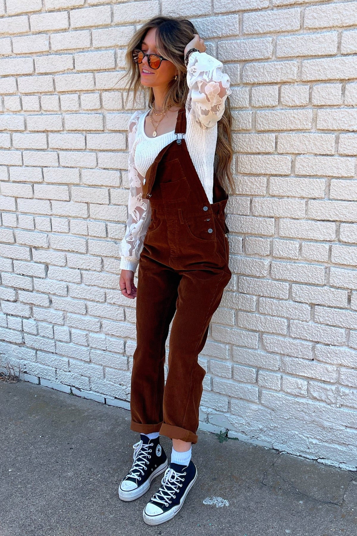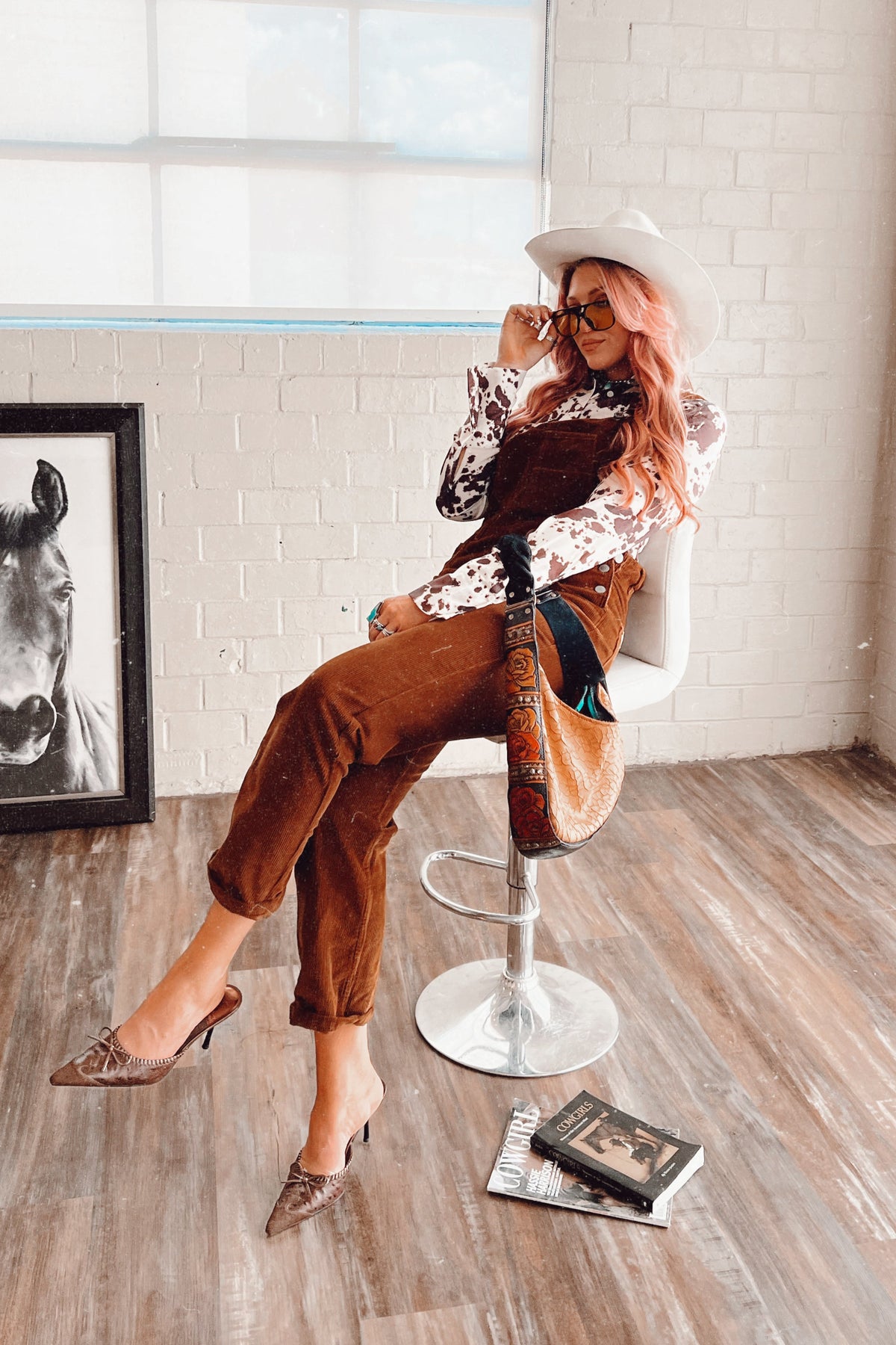 Laid-back with a Western twist, these corduroy overalls bring easy charm to any closet. Designed in a relaxed boyfriend fit with adjustable straps, they’re true to size and made for effortless styling—perfect for layering over a graphic tee, satin top, or cozy knit on rodeo days and beyond.