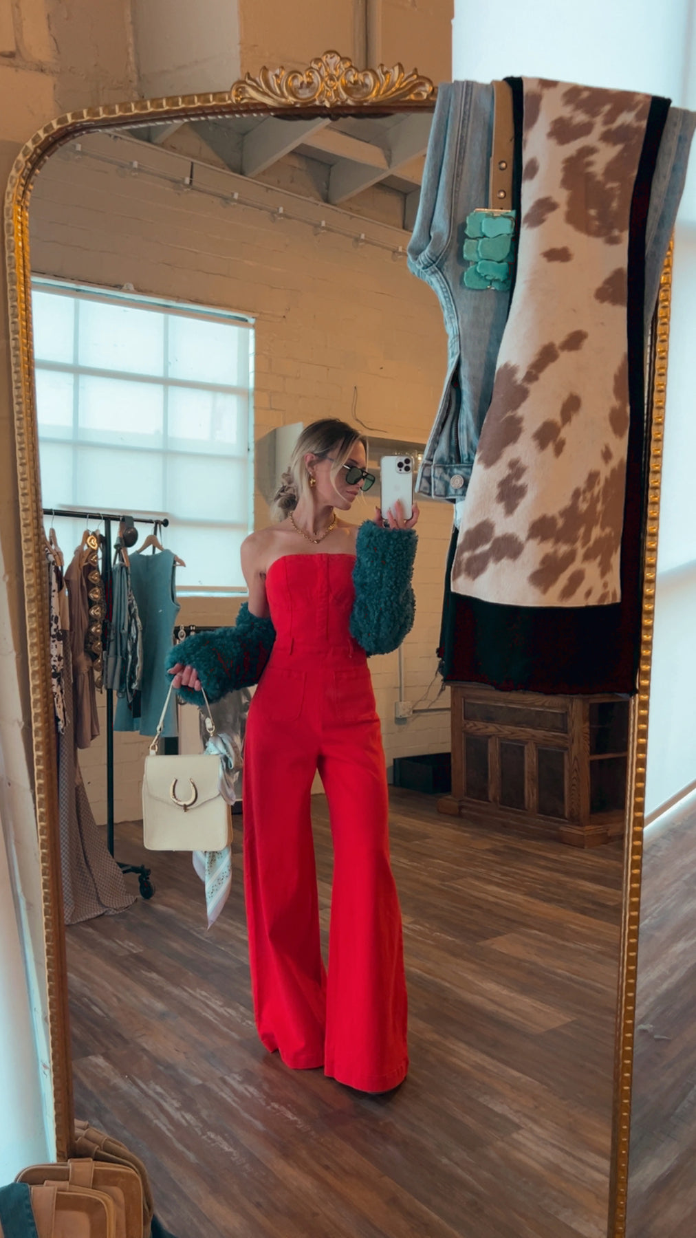 Sleek, tailored, and made to RSVP yes. This halter vest jumpsuit turns heads with its structured bodice, open back, and elongated silhouette. Effortlessly cool yet undeniably polished—perfect for rehearsal dinners, rooftop soirées, or any moment that calls for a little extra yes, you did.