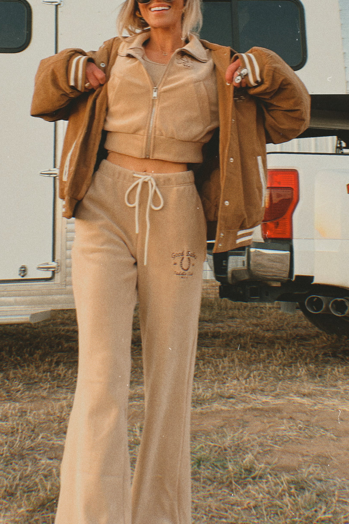 Soft, relaxed, and effortlessly cool. These brown towel terry pants are perfect for laid-back days with a luxe, Western-inspired touch.