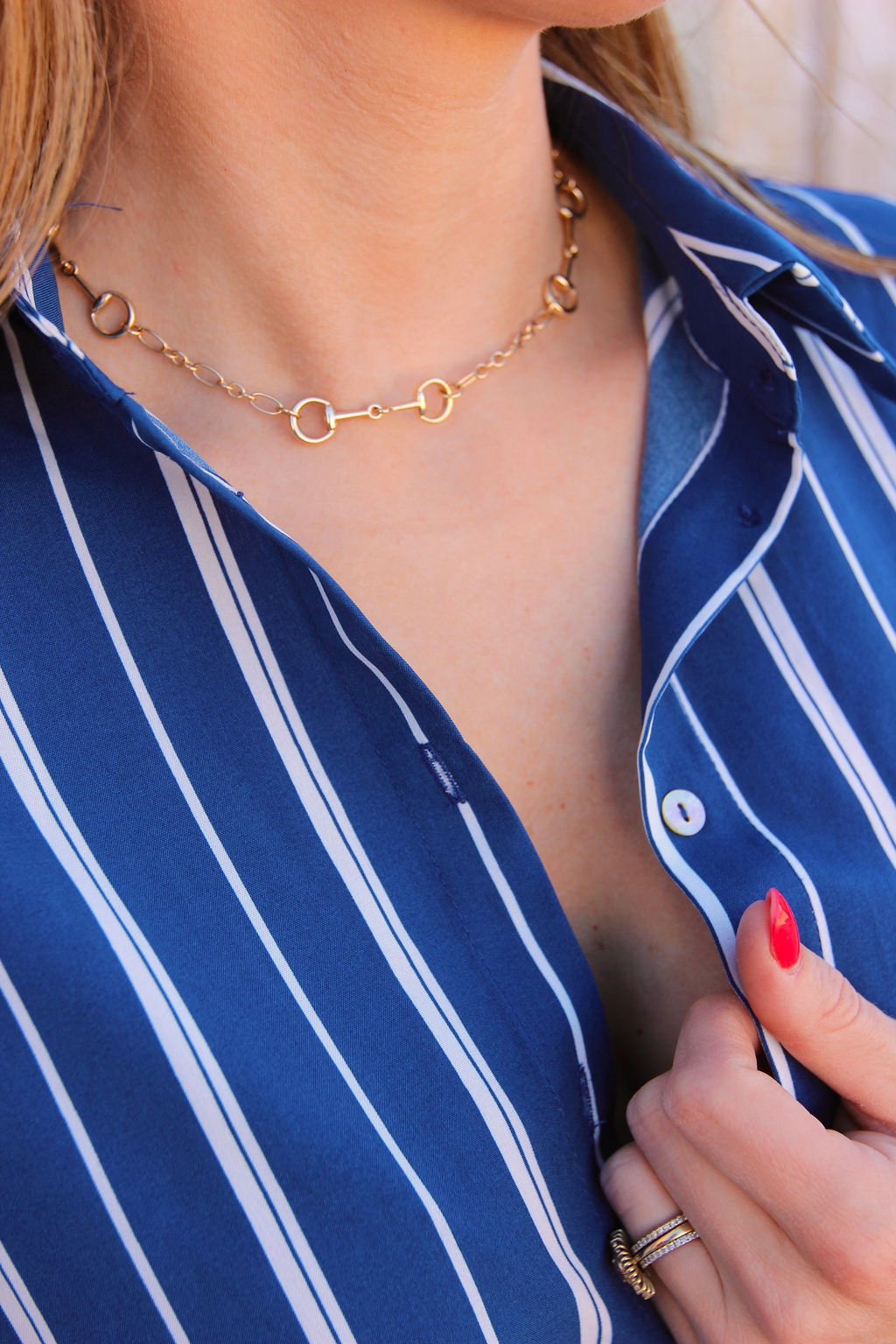This silver bit necklace will add the perfect amount of western flare to every outfit.