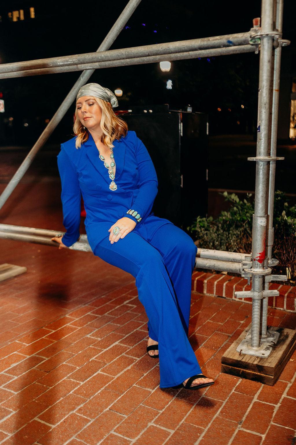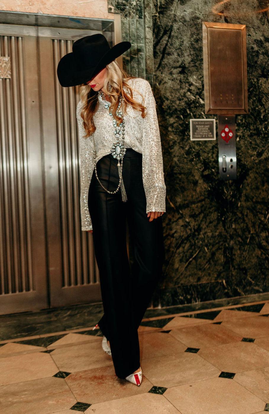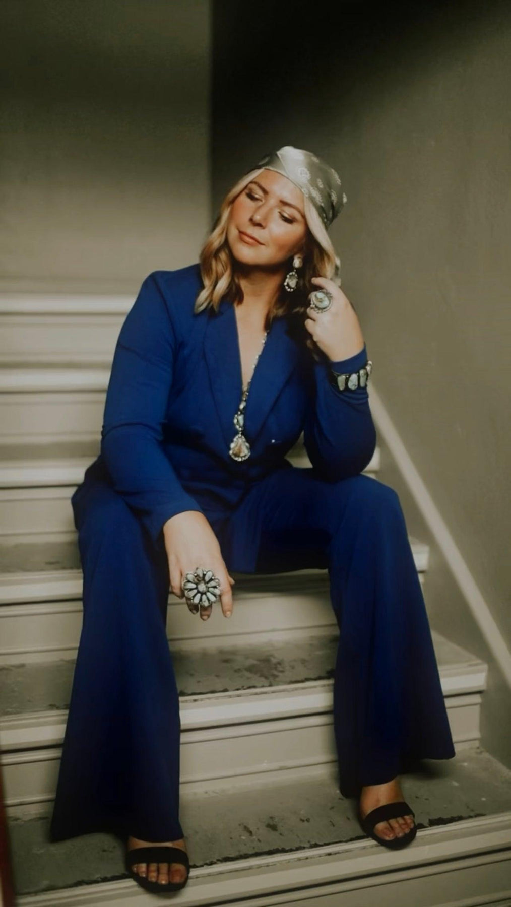 Turn up the heat in our Lane Denim Jumpsuit. Designed with a bold silhouette and dramatic wide-leg sleeve detail, this vibrant piece brings serious rodeo glam. Just add boots and a statement belt for an unforgettable NFR look.