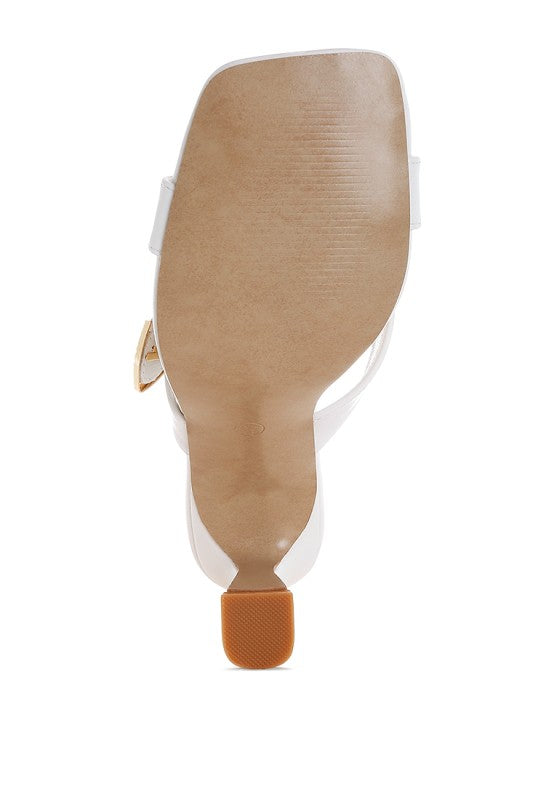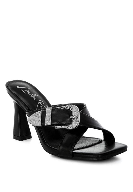 These square-toe heels feature a criss-cross strap with an engraved metallic buckle detail that adds a vintage flair. The cushioned insole ensures a comfortable fit while providing superior grip and comfort. Style these heels with a shirt dress to make a bold statement.