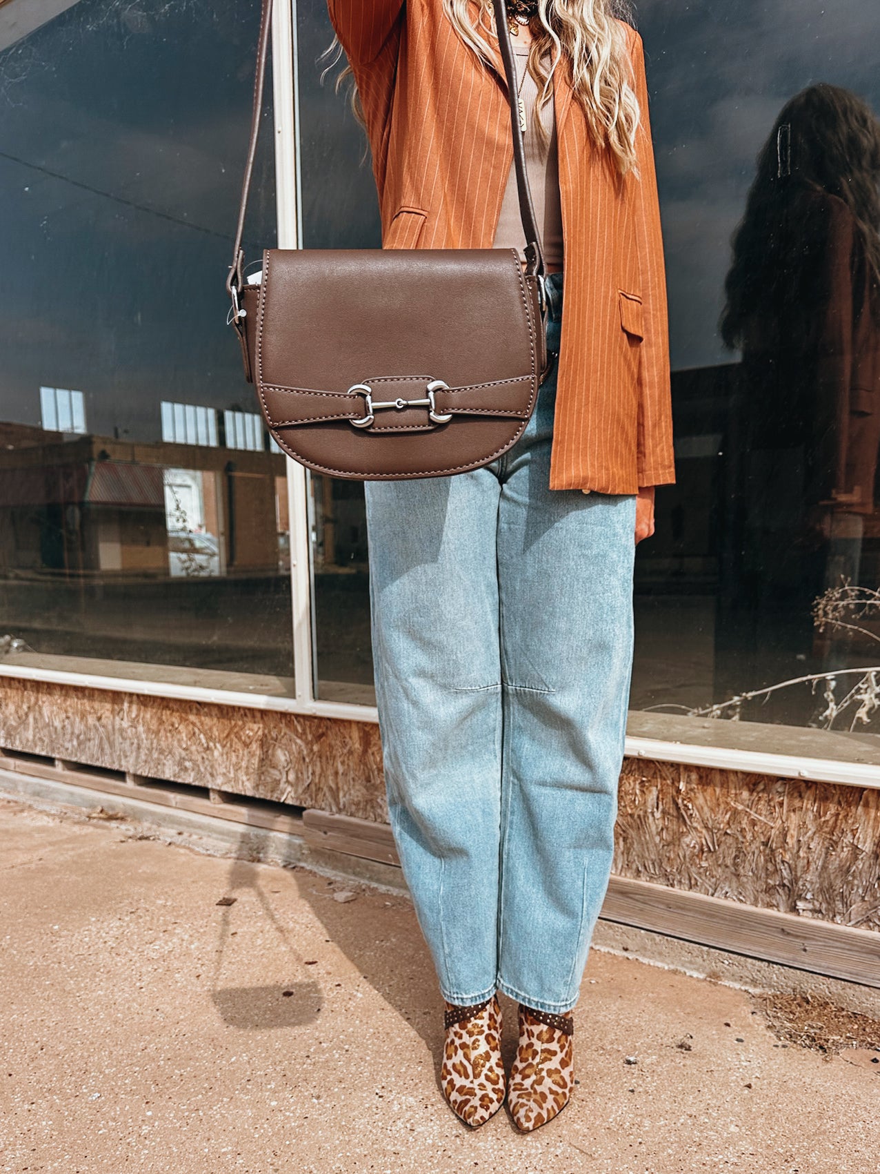 Add a touch of classic western style to any look with this everyday bag. Featuring silver-tone hardware, horsebit detail, magnetic closure and an adjustable shoulder strap - you’re going to love this bag.