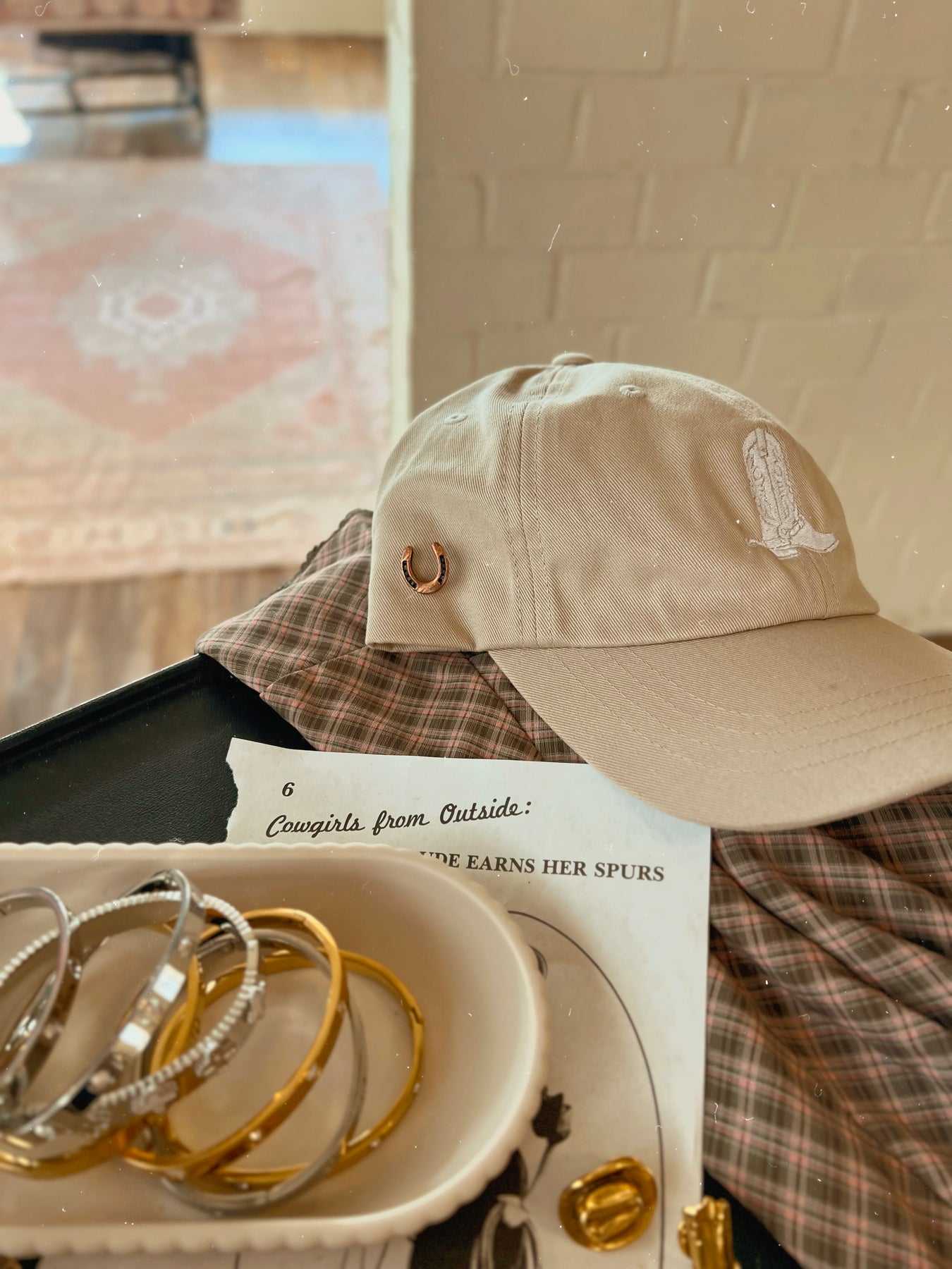 Whether you're adding it onto your denim jacket, bag, or trucker hat, this little gold cowboy boot pin is the perfect accessory.