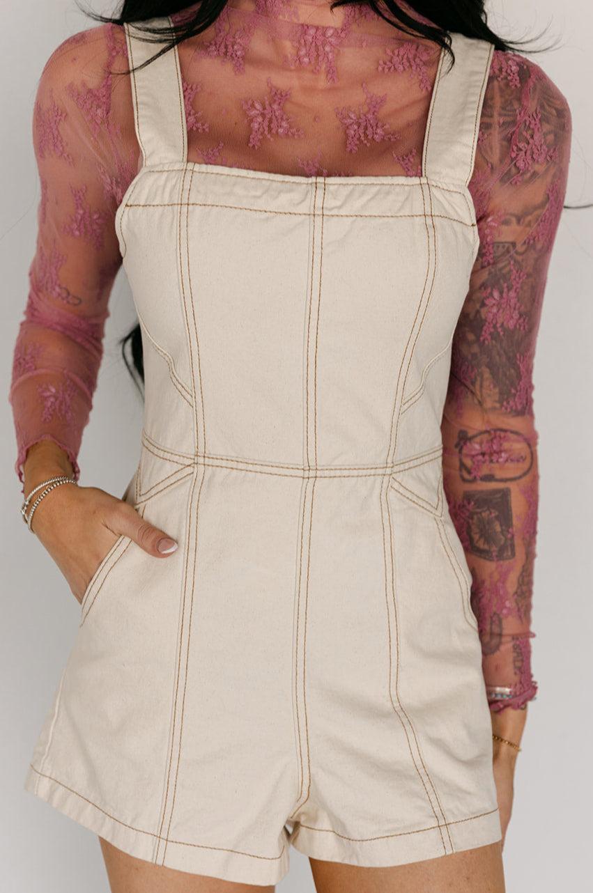 Laid-back with a thoughtful touch. This natural-toned romper features delicate embroidered edging for a hint of detail, while its easy silhouette keeps things relaxed and effortless.