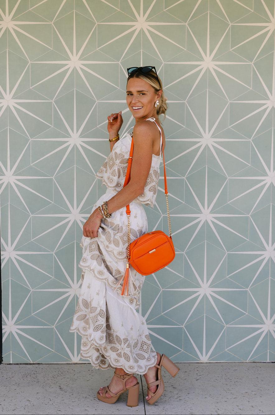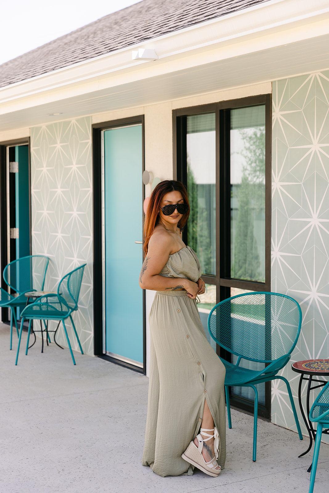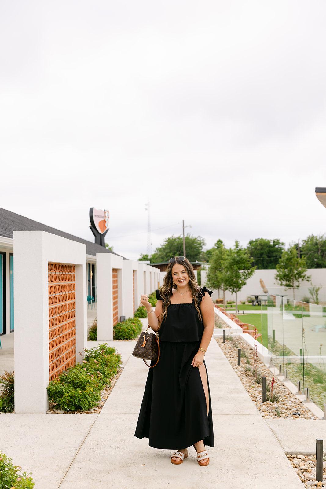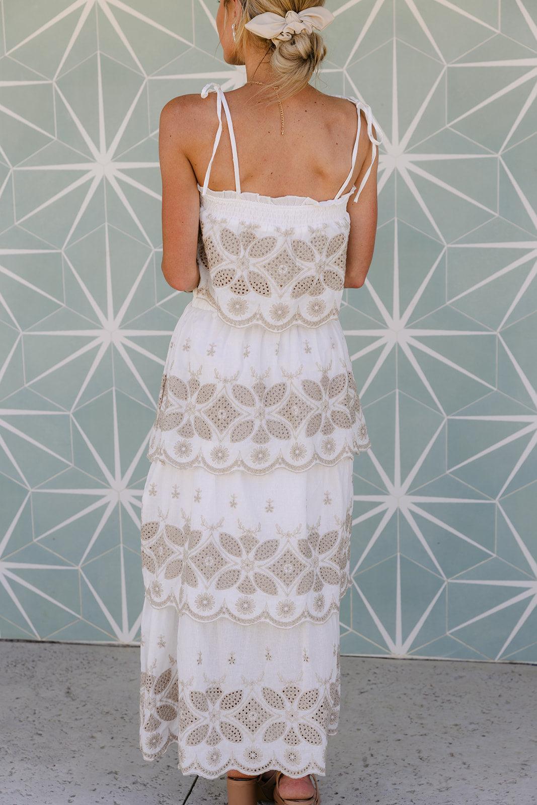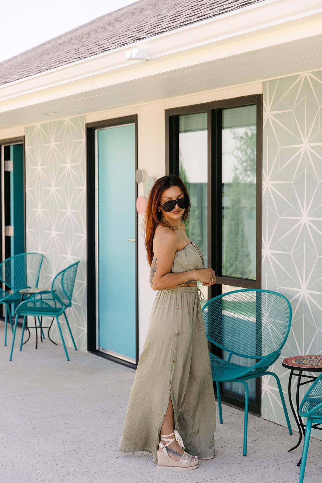This matching set features a strapless smocked crop top paired with a high-rise maxi skirt. Gathered detailing and tiered layers add soft movement, making it an easy favorite that is comfortable + perfect for any occasion.