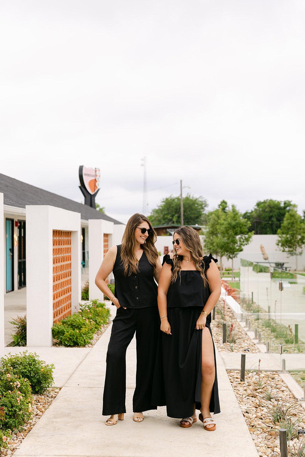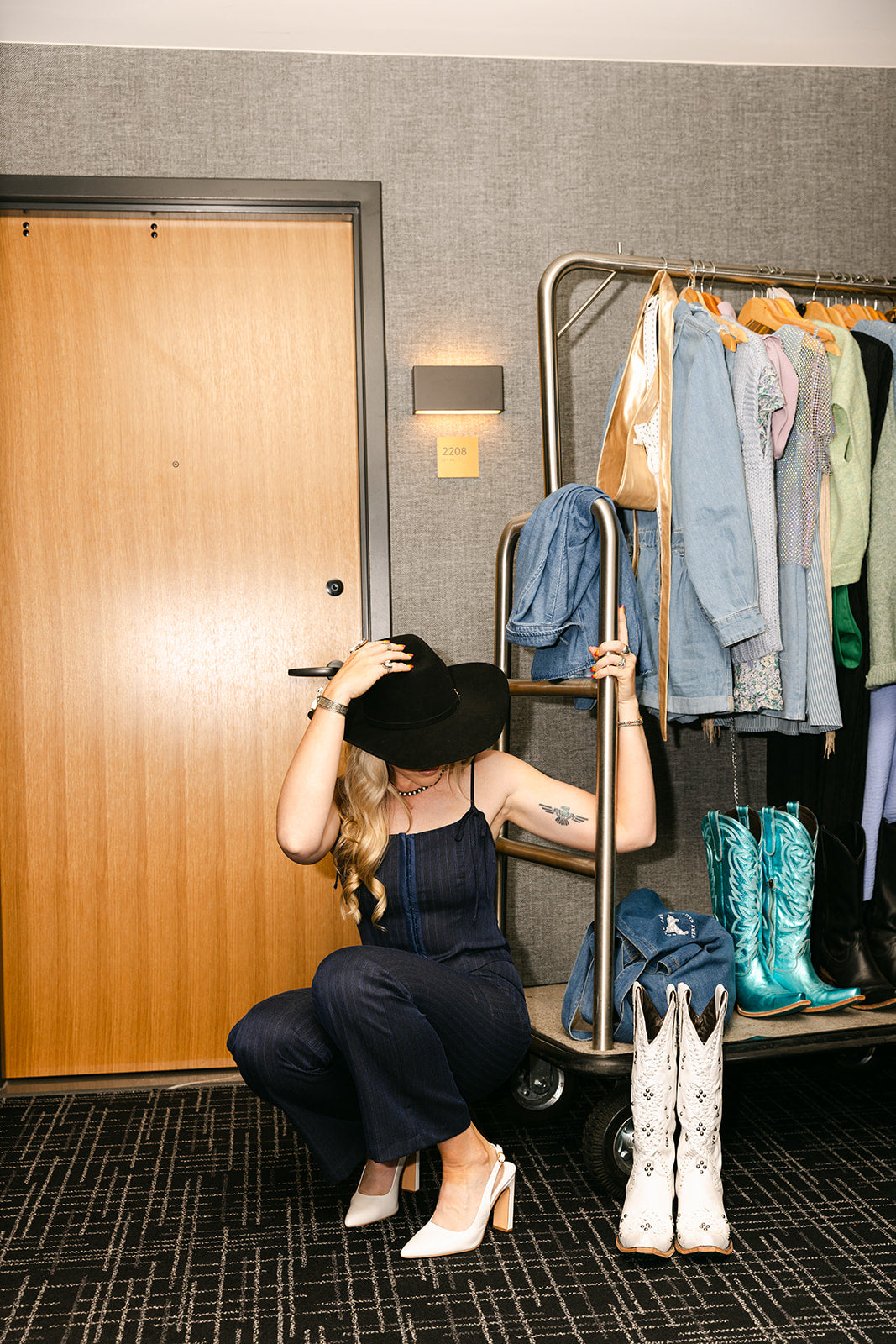Sleek, simple, and a little bit cowgirl. A long sleeve crop top with a western boot detail pairs with wide-leg palazzo pants featuring a 37" inseam — easy to cut to your perfect fit. Comfy, classy, and ready for wherever the road takes you.