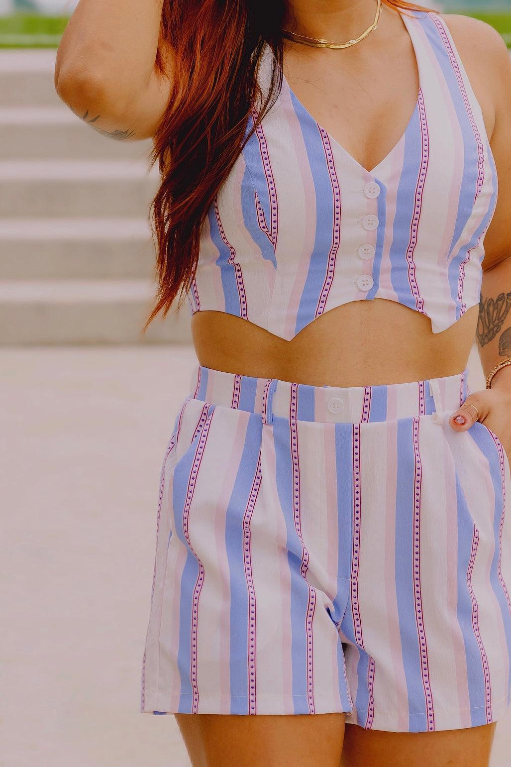 Bring the heat to the rodeo in this striped corset top, featuring a bold front bow and body-hugging fit. It’s sleek, structured, and made to stand out. Pair it with the matching pants and own the night out on the strip!