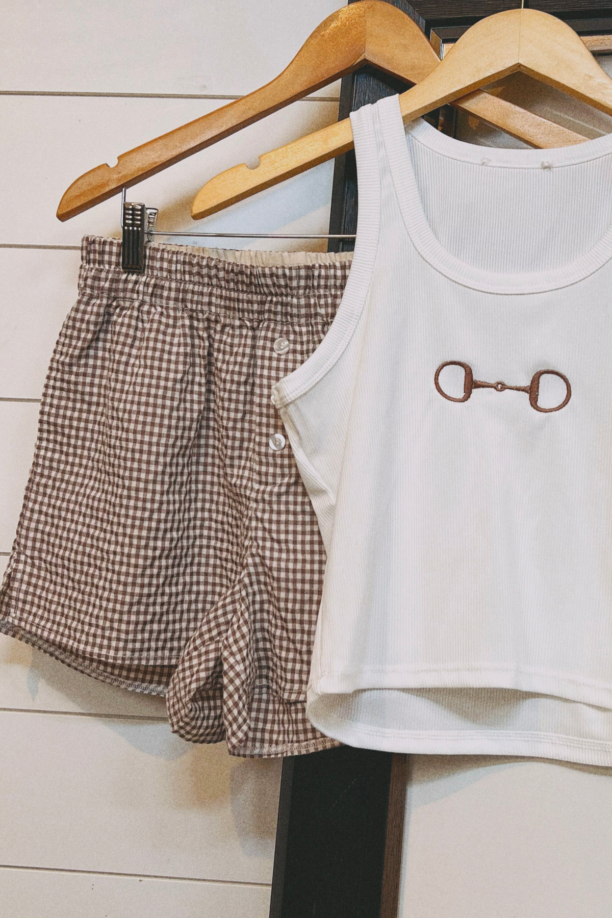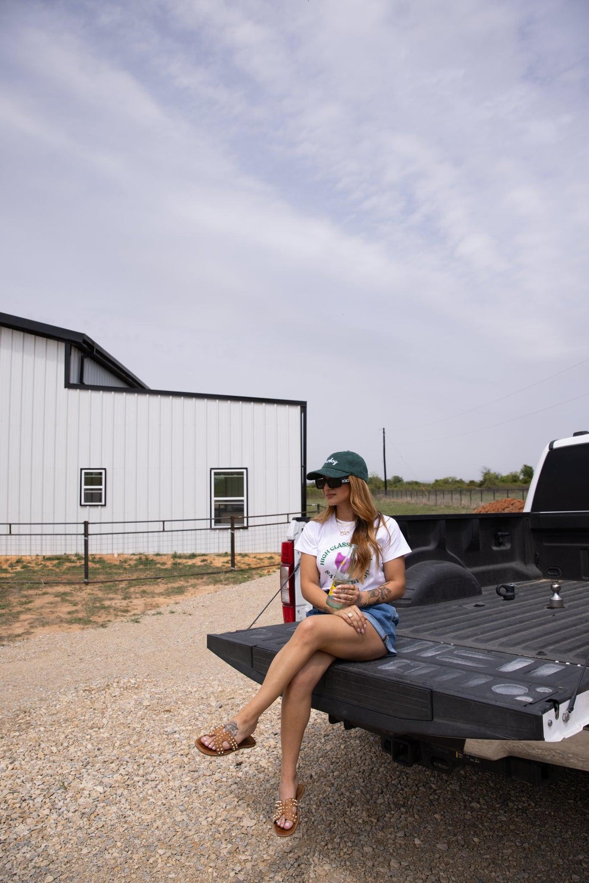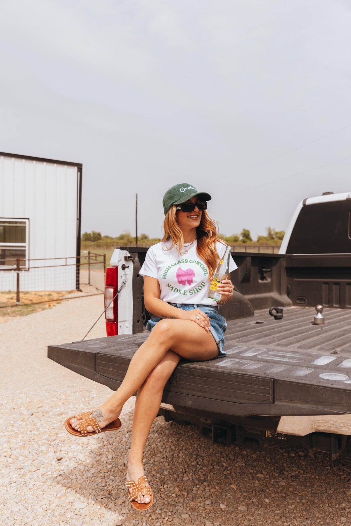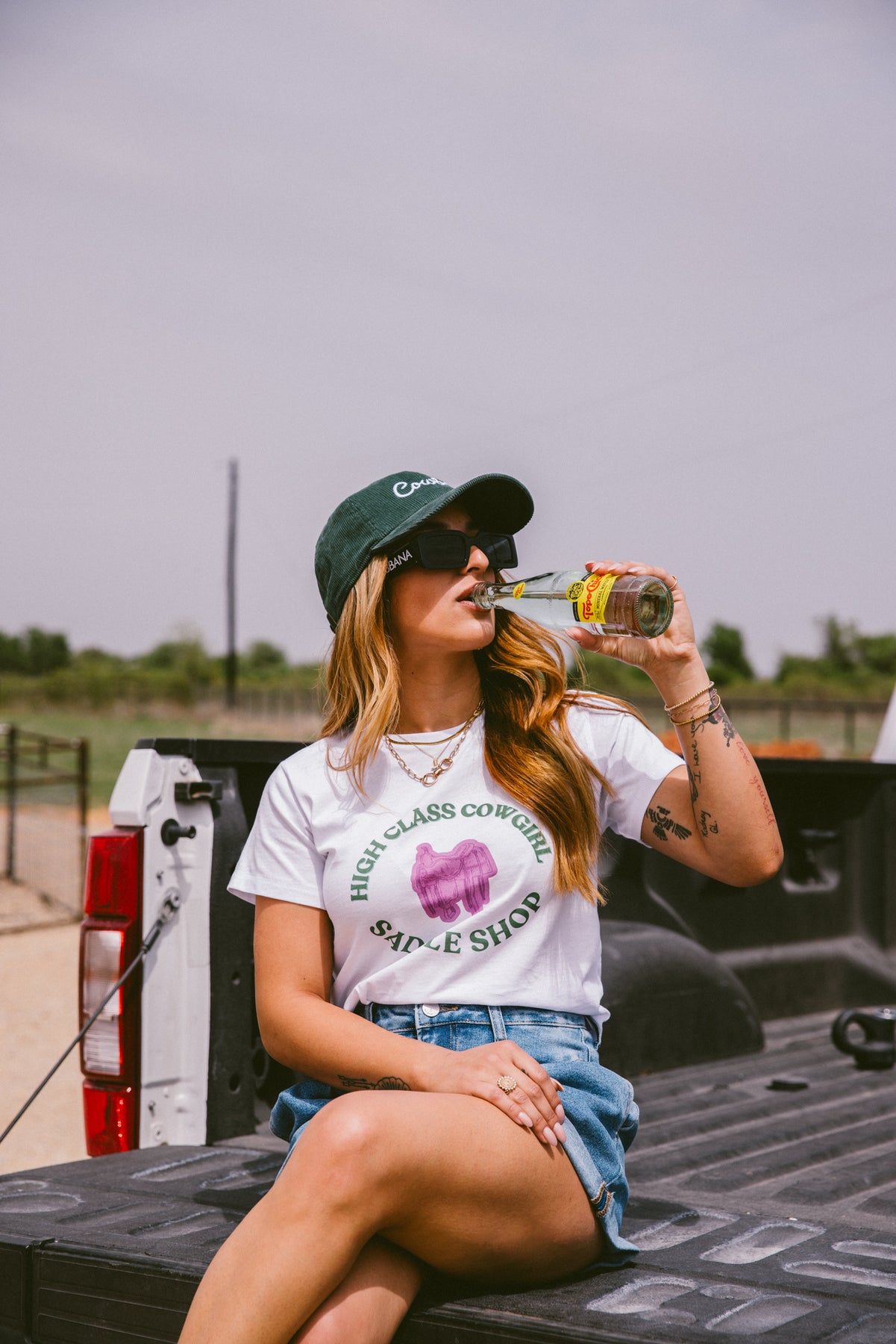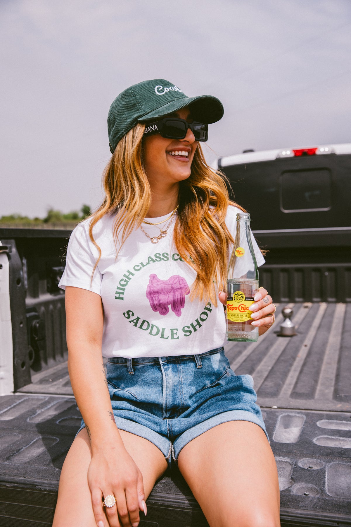 Off-duty cowgirl approved. These heather grey fleece shorts feature an elastic waistband, side pockets, and white “Cowgirl Club” embroidery. Comfy enough for the couch, cute enough for the feed.