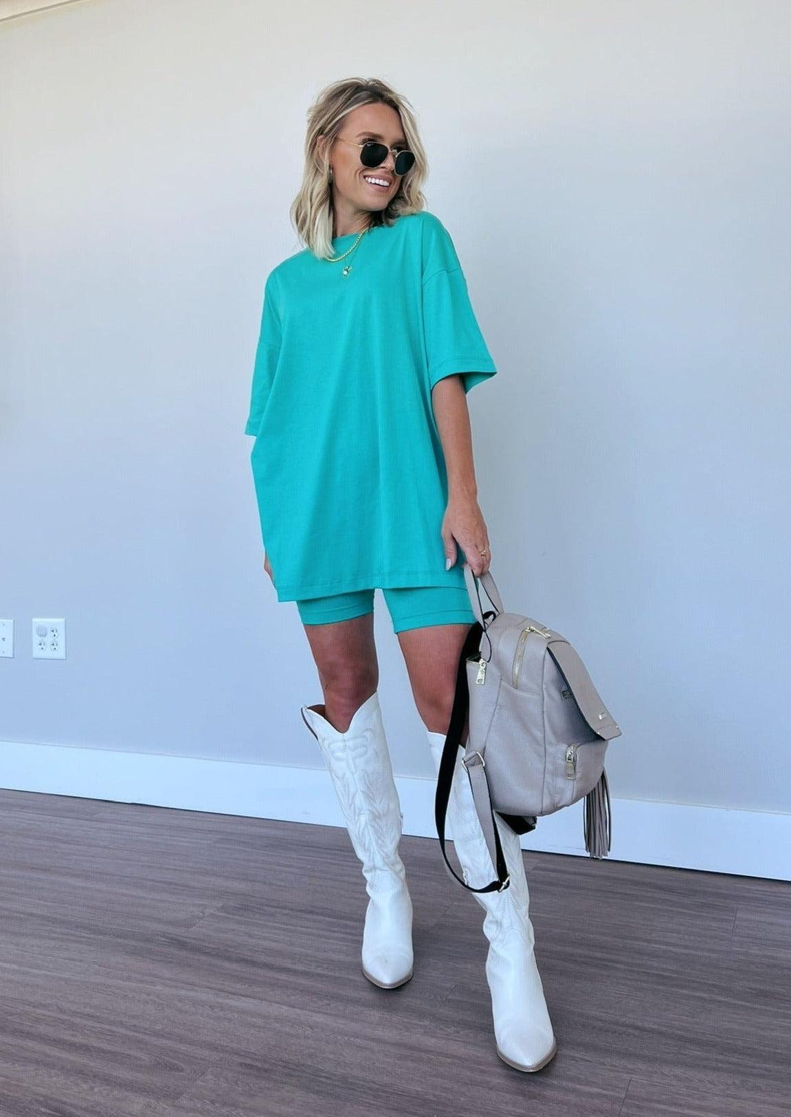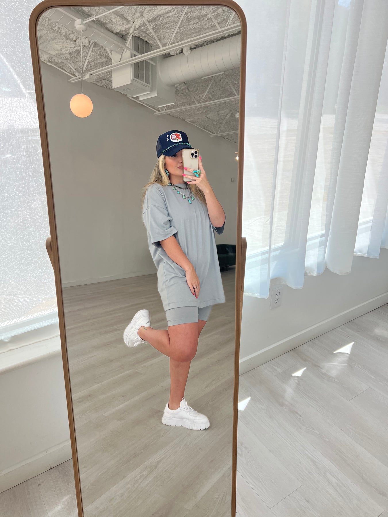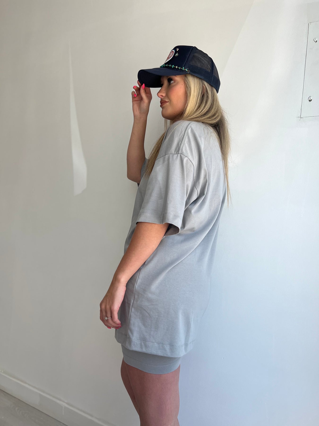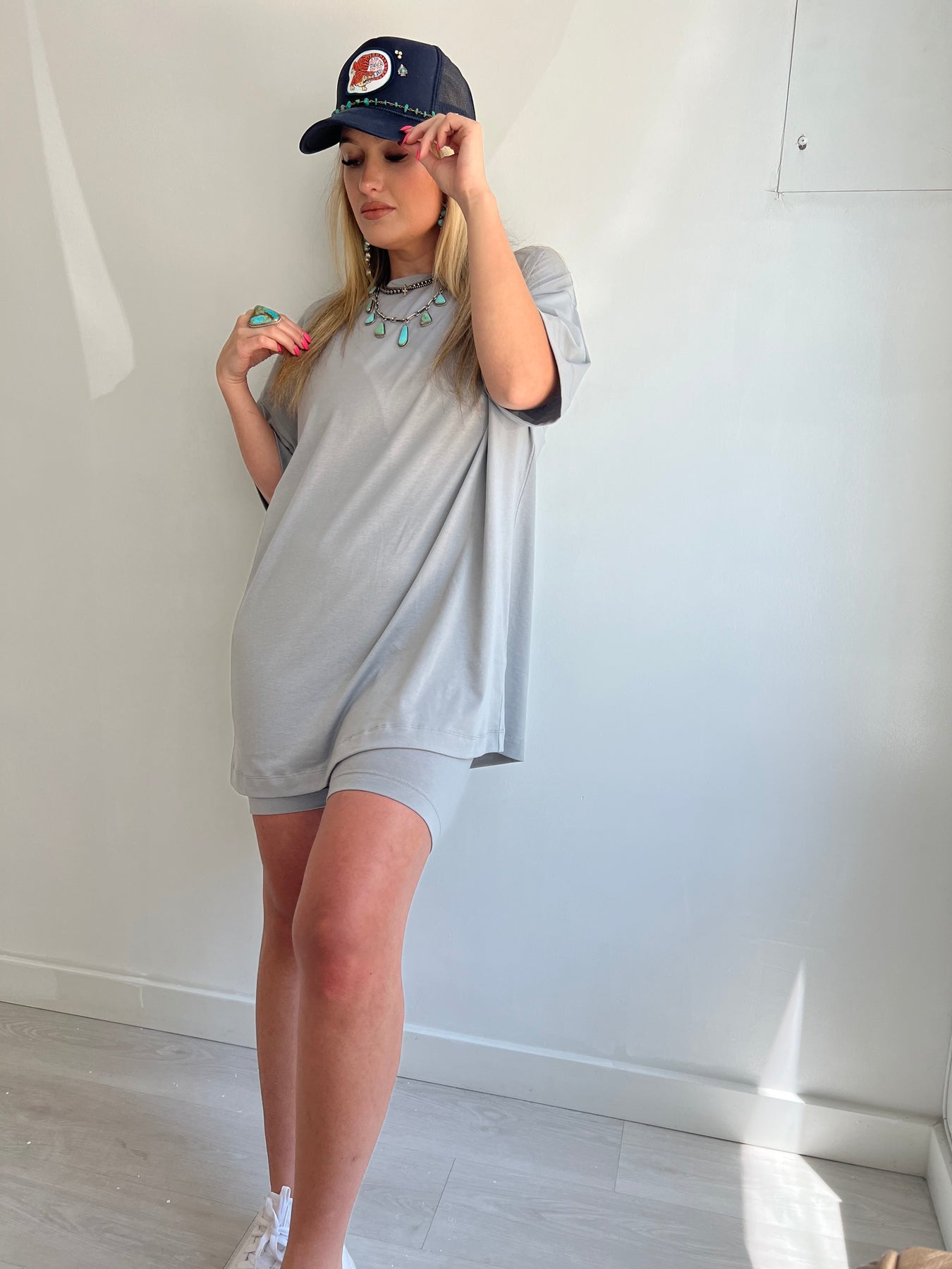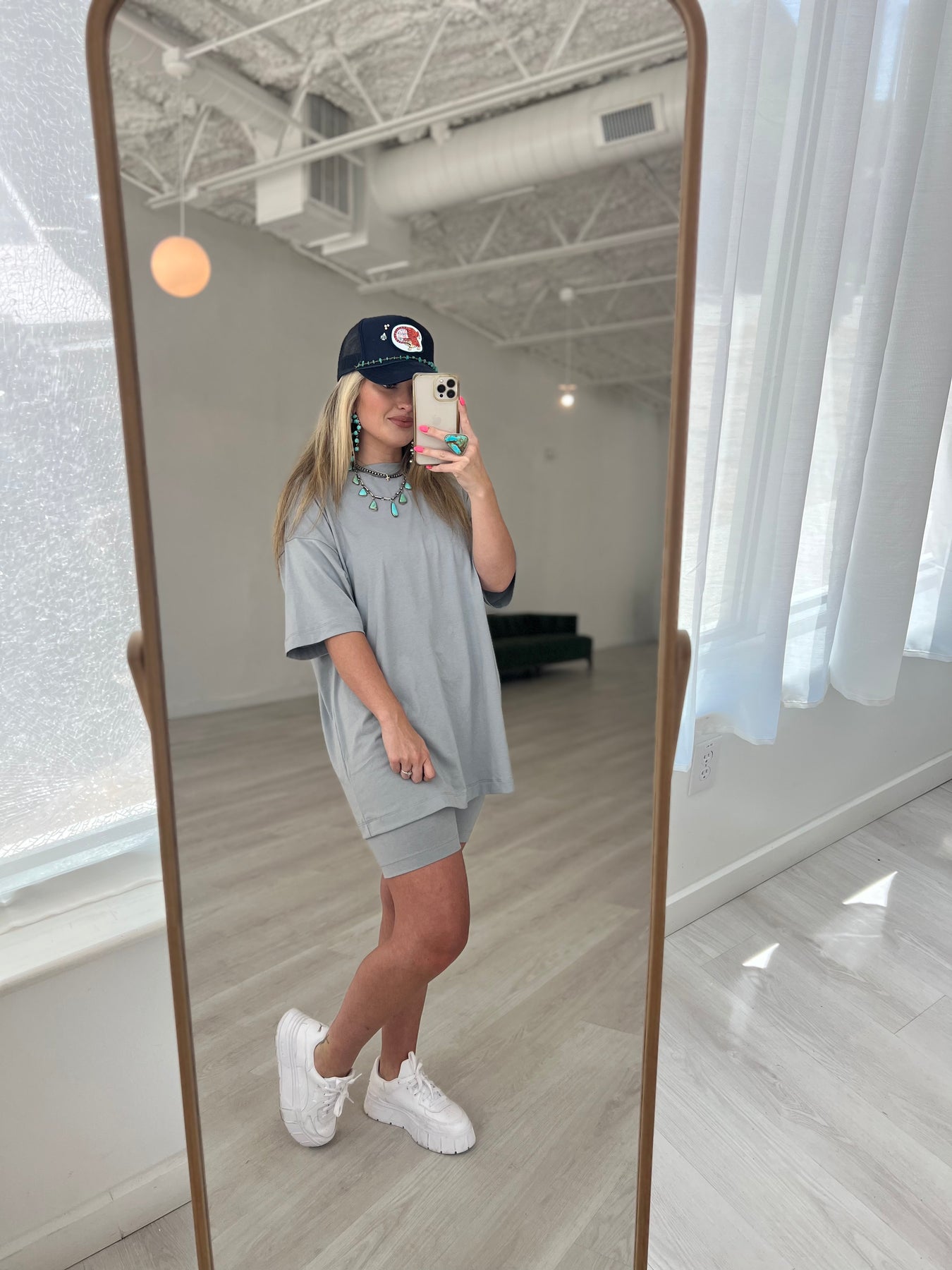 Off-duty cowgirl approved. These heather grey fleece shorts feature an elastic waistband, side pockets, and white “Cowgirl Club” embroidery. Comfy enough for the couch, cute enough for the feed.
