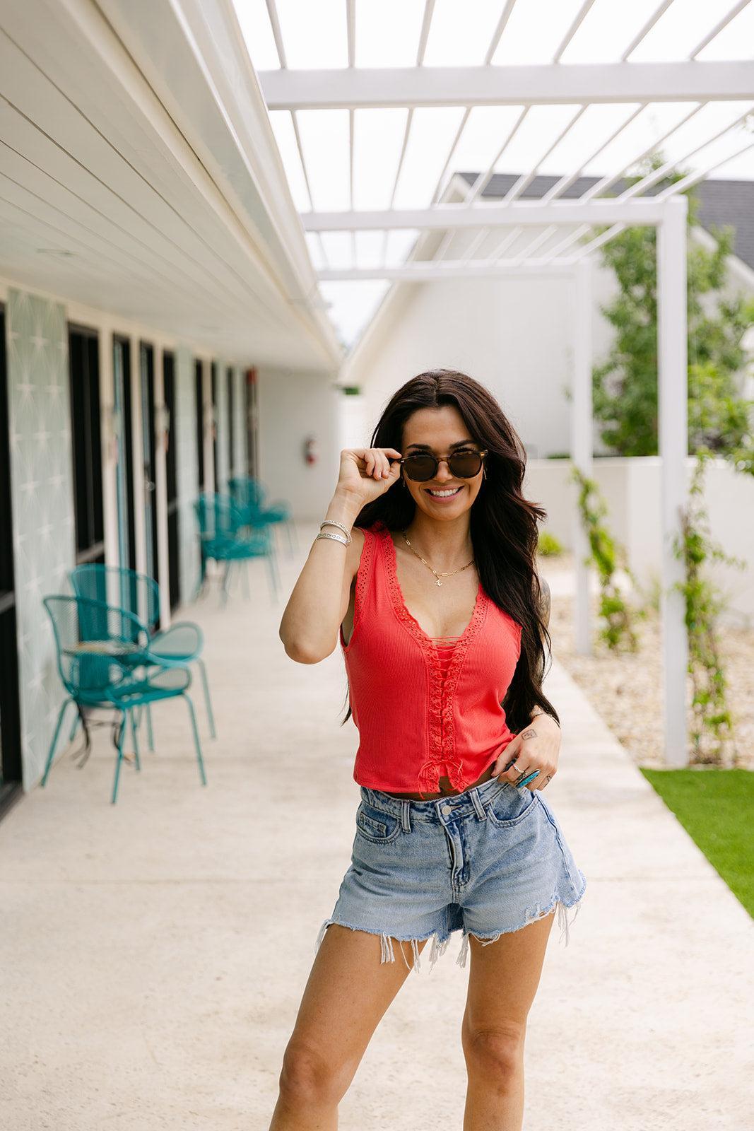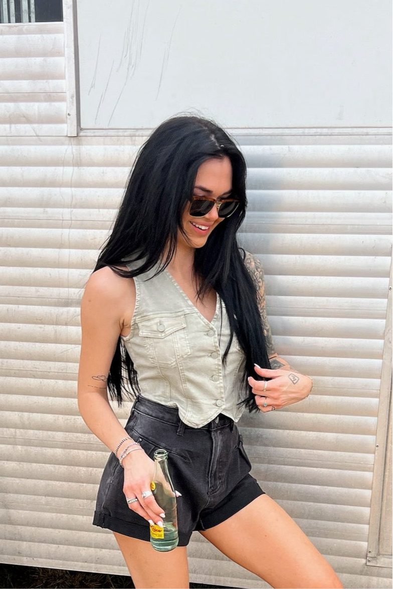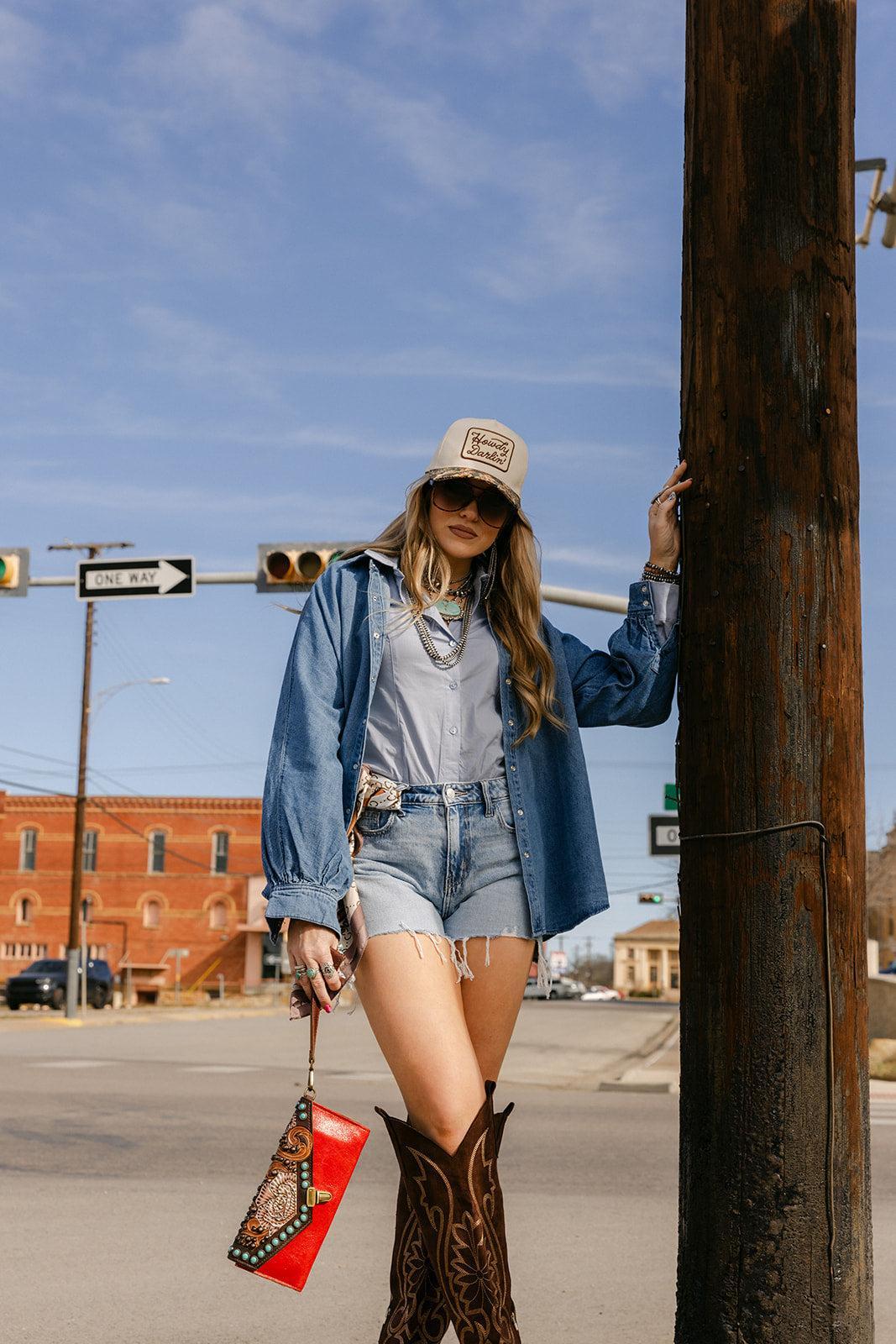 Bringing just a touch of “yee-haw” to your summer look with these button down, frey-hemmed shorts that are perfect for any summer festival or just lounging around.